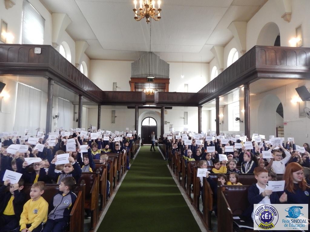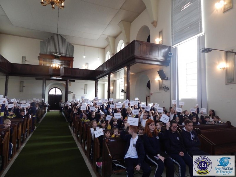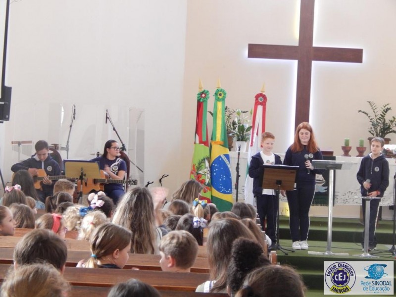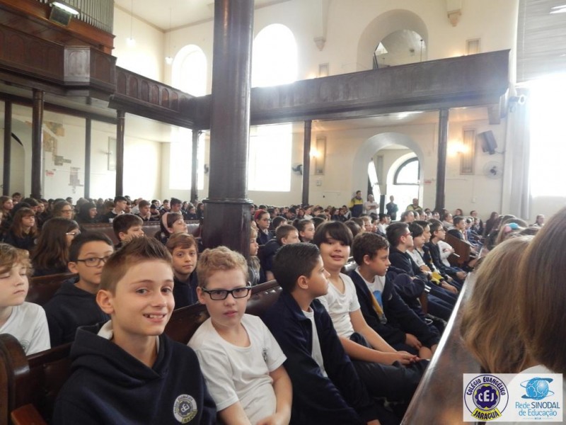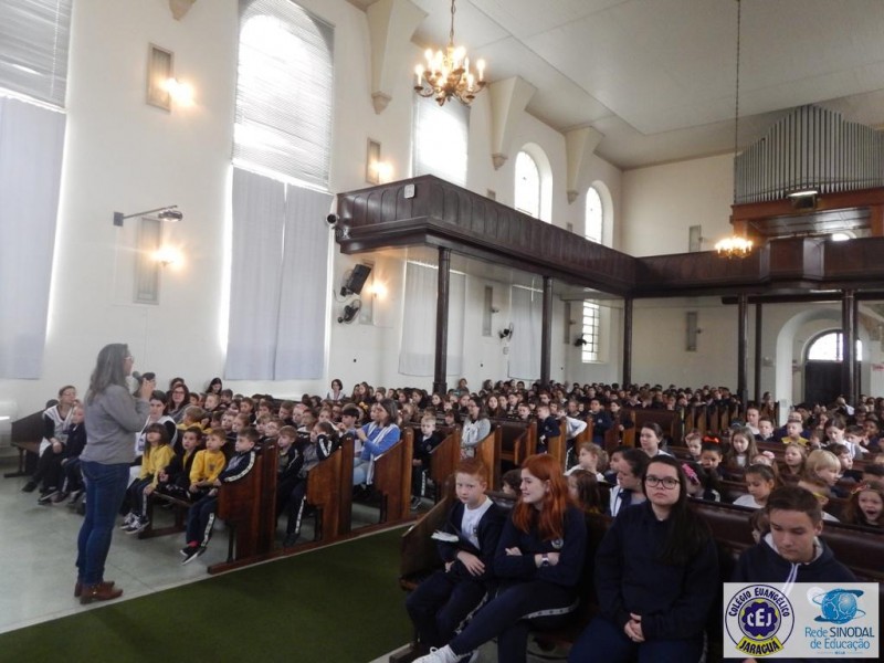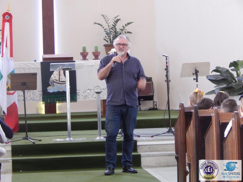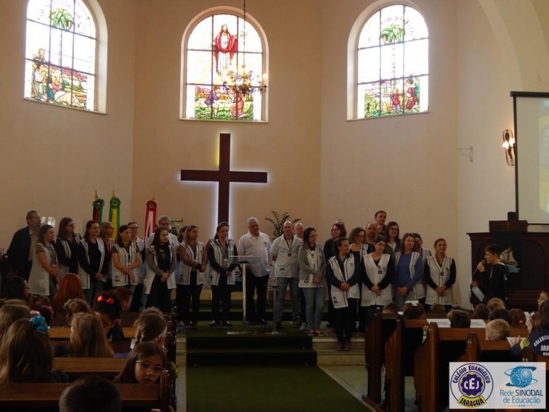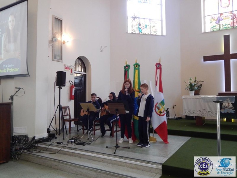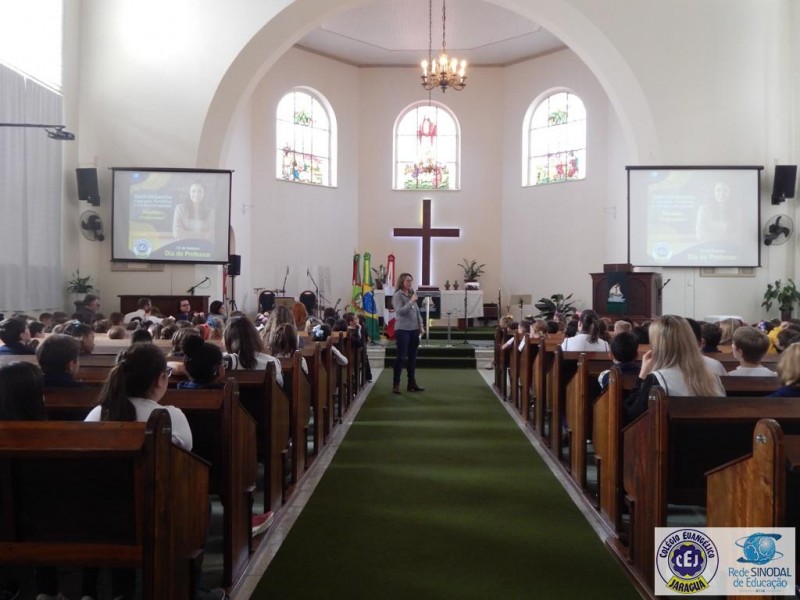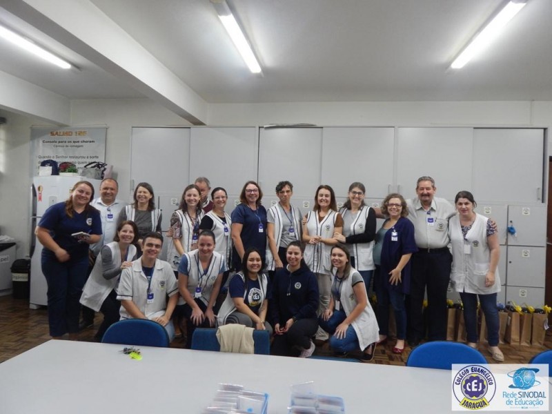 Mais notíciasNa semana do Dia do Professor aconteceram diversas homenagens no Colégio Evangélico Jaraguá. Os professores foram presenteados com um delicioso café na hora do intervalo. Além disso, participaram da homenagem na Igreja, que teve um momento de reflexão com o P. William Bretzke. O tema da homenagem foi “Professor, a profissão que forma todos os professores”, e teve a participação de alunos do canto e do Grêmio Estudantil. Parabéns, professores, pelo seu dia e nossa gratidão pelo empenho e dedicação!