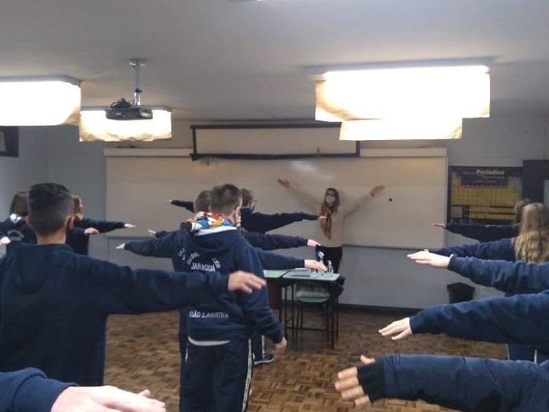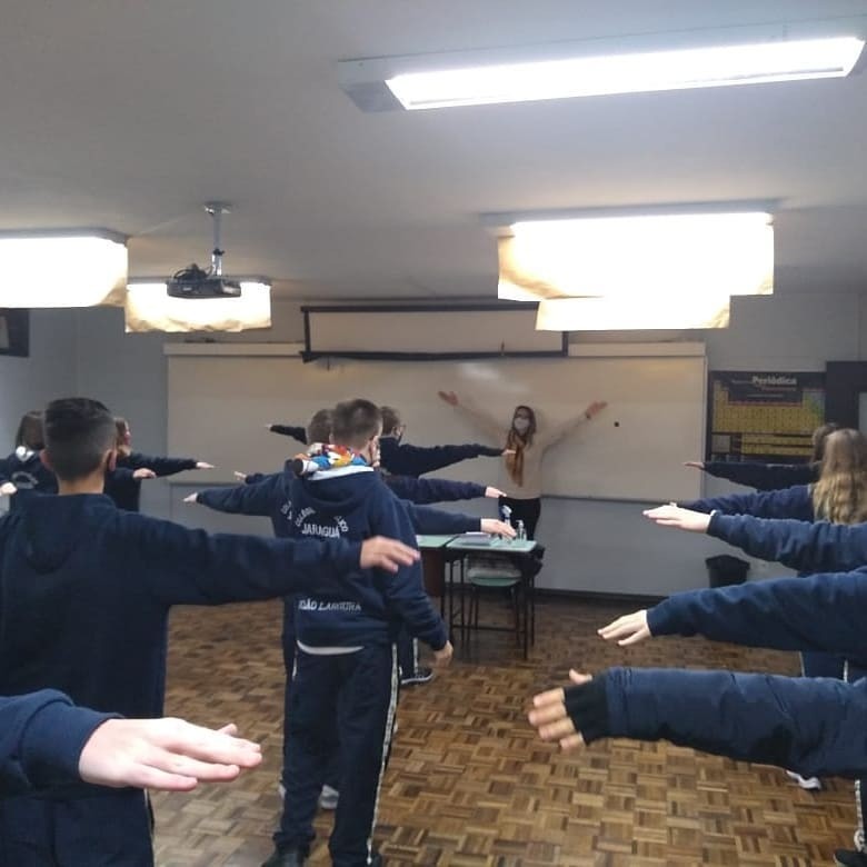 Sim!!! Estudando os ângulos com o corpo! Além de esquentar ajuda a solucionar problemas práticos do cotidiano. E a relacionar a disciplina com outras áreas do conhecimento. São aqueles minutos que fazem a diferença.