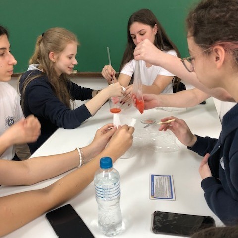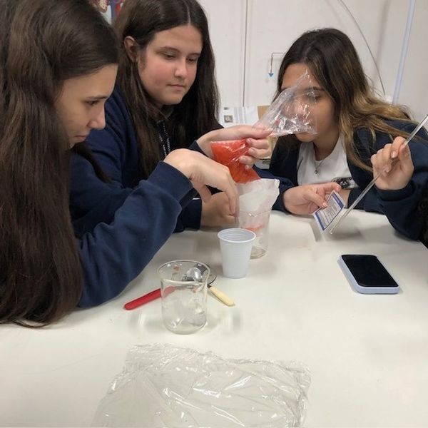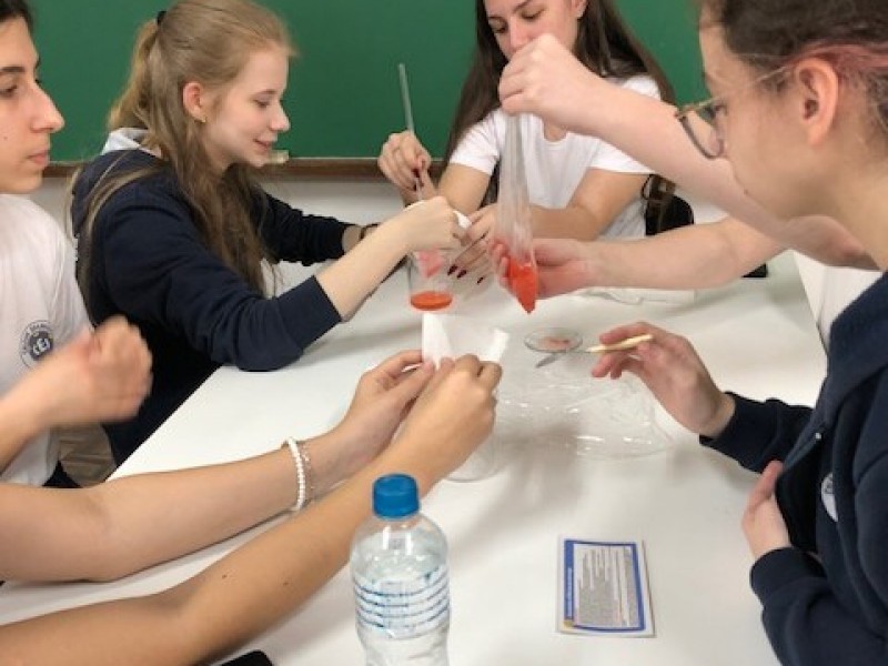 No Itinerário Formativo de Aprofundamento em Biologia, os alunos do 1º e 2º ano do Ensino Médio realizaram uma prática de laboratório para extração de DNA do morango.