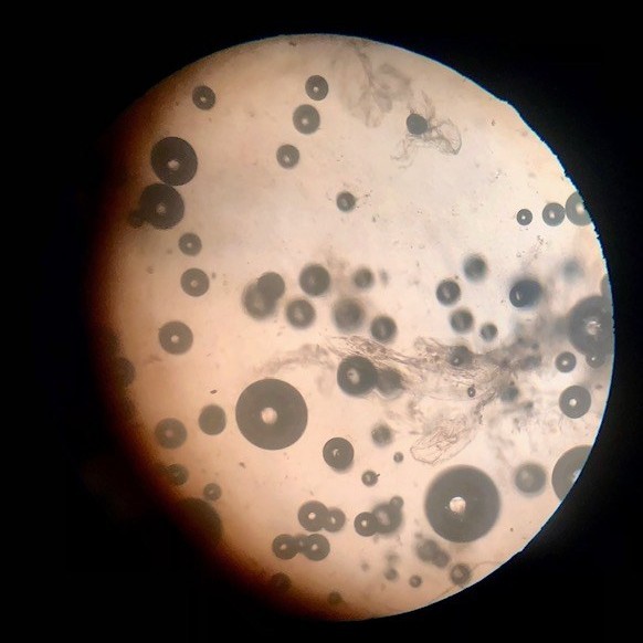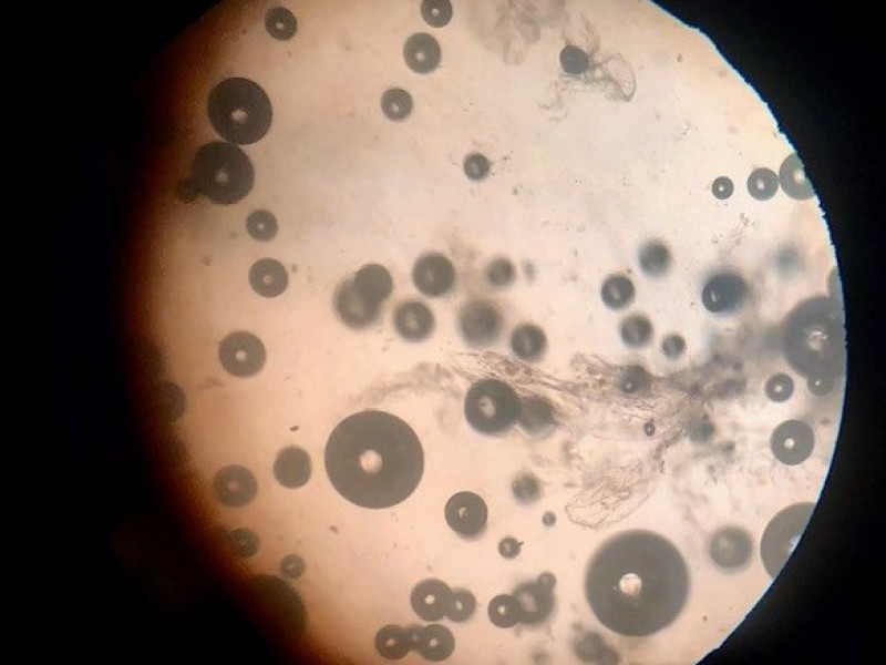 Na imagem vemos uma substância branca similar a fios de algodão, trata-se do DNA, que em seguida foi observado no microscópio.