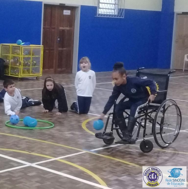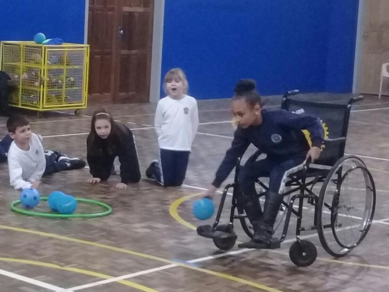 A proposta foi vivenciar os esportes com a mobilidade reduzida e sensibilizar os alunos sobre a deficiência física e o direito a inclusão