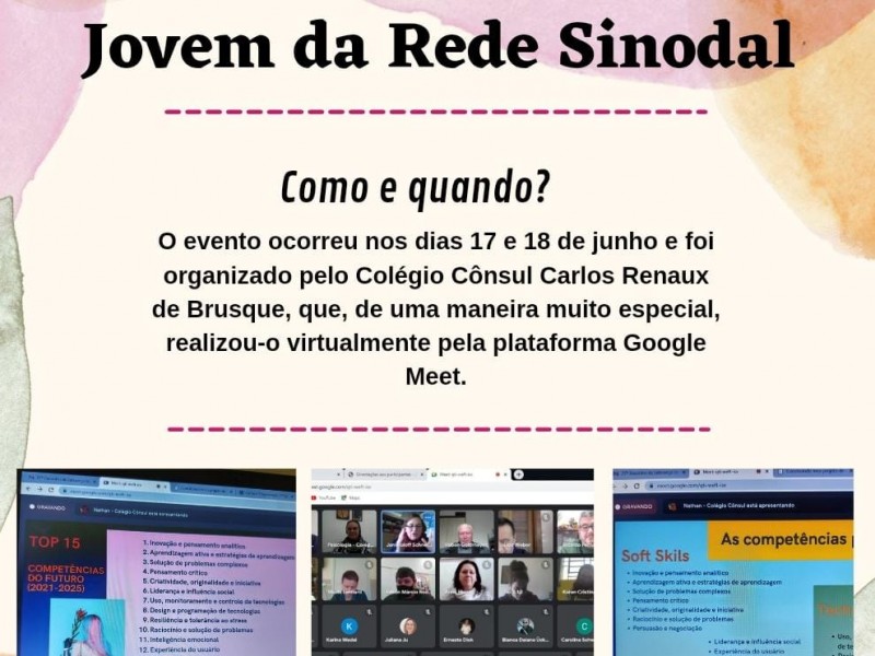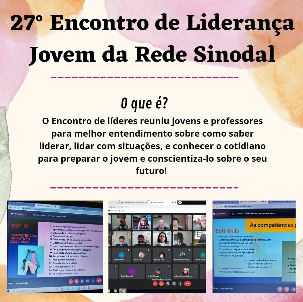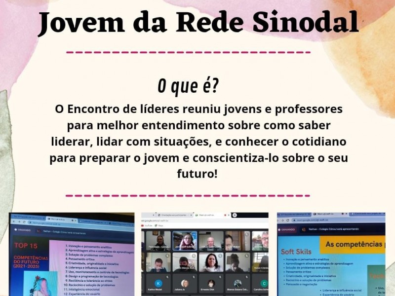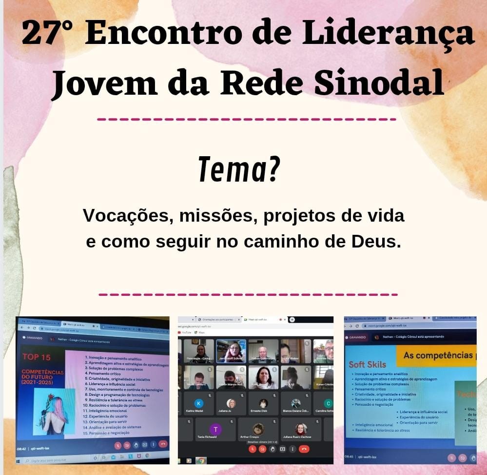 Participaram do Encontro os(as) alunos(as) Mário Volpato 1* EM A, Romy Werner 1* EM B, Isabelle Schroeder 2* EM A e a professora Luciane Affonso.