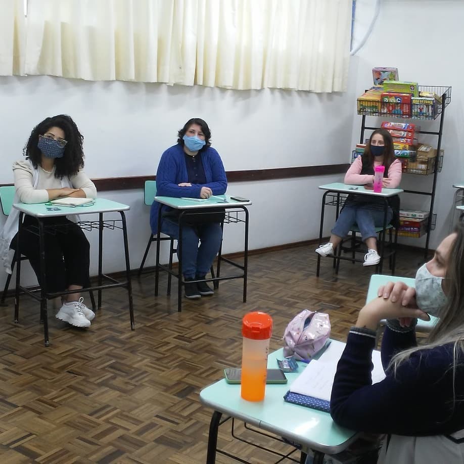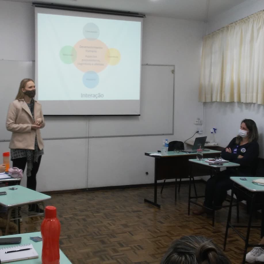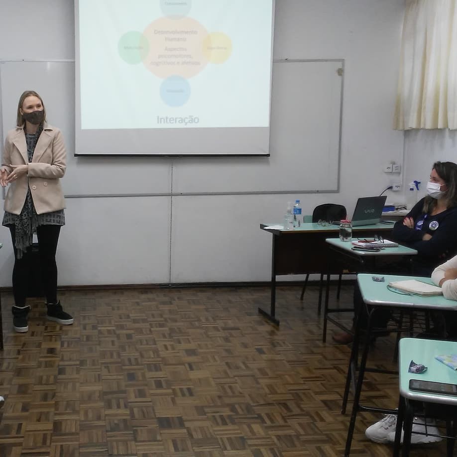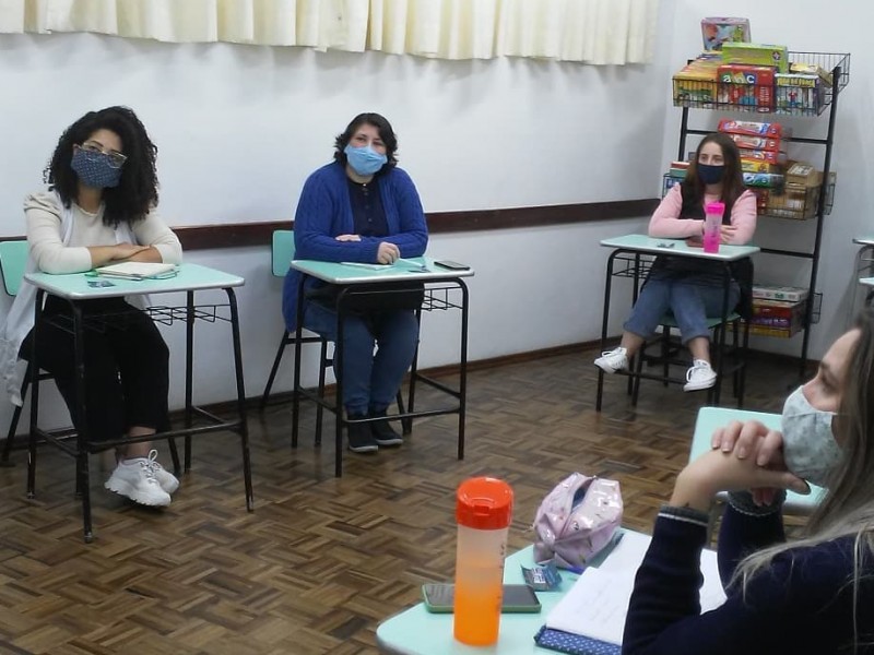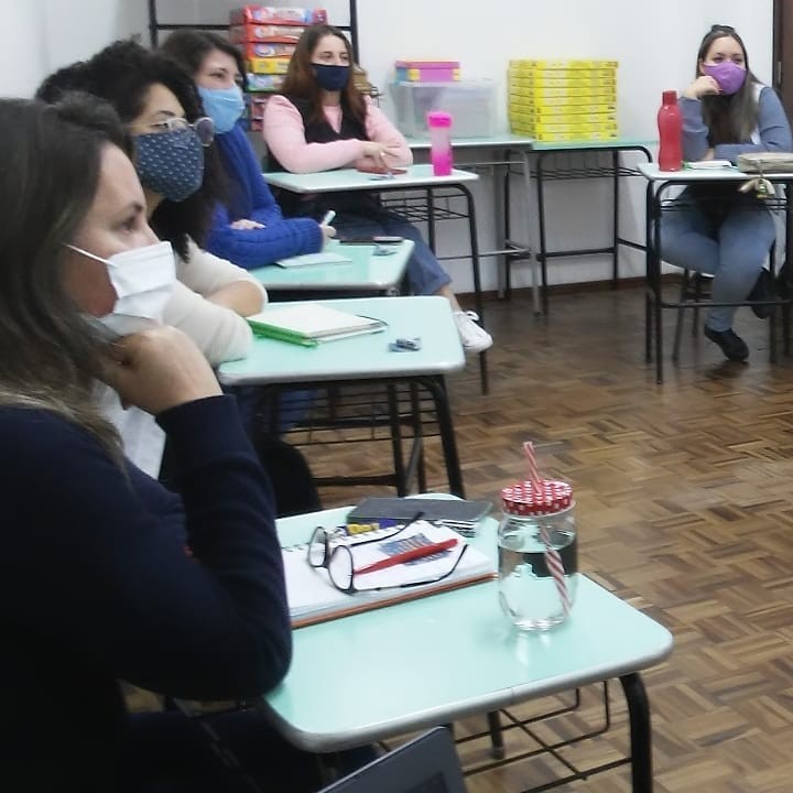 Assim, as professoras do Colégio Evangélico Jaraguá, que trabalham com o Turno Integral juntamente com alguns professores que trabalham na Educação Infantil e Ensino Fundamental tiveram no dia 5 de julho o primeiro encontro de formação com a psicóloga Camile Halsinger.