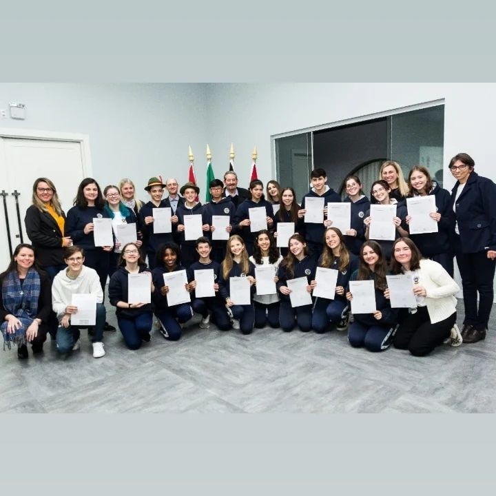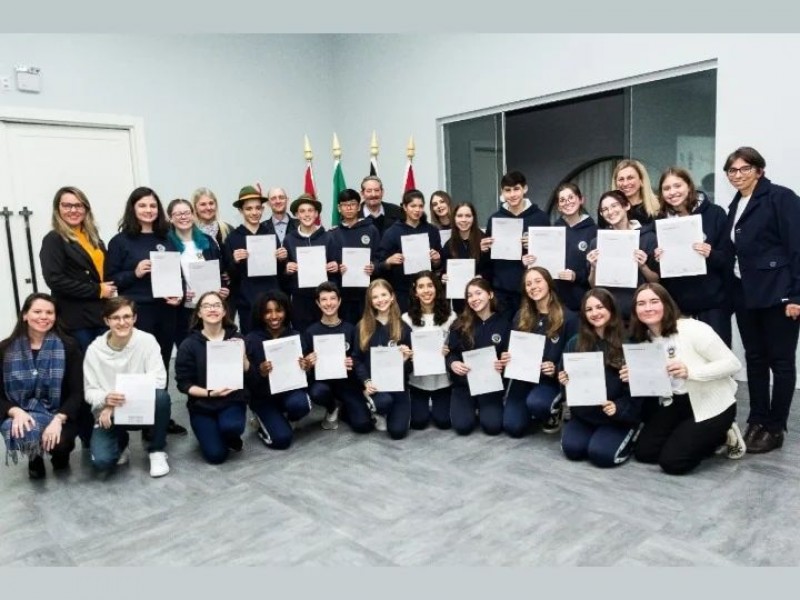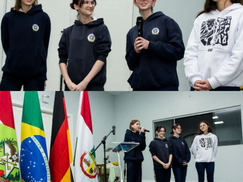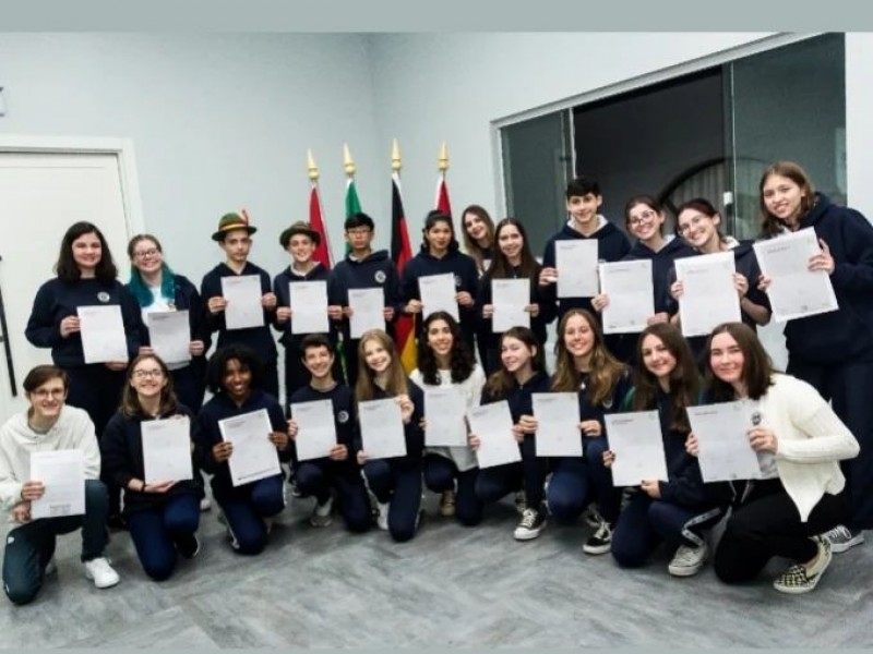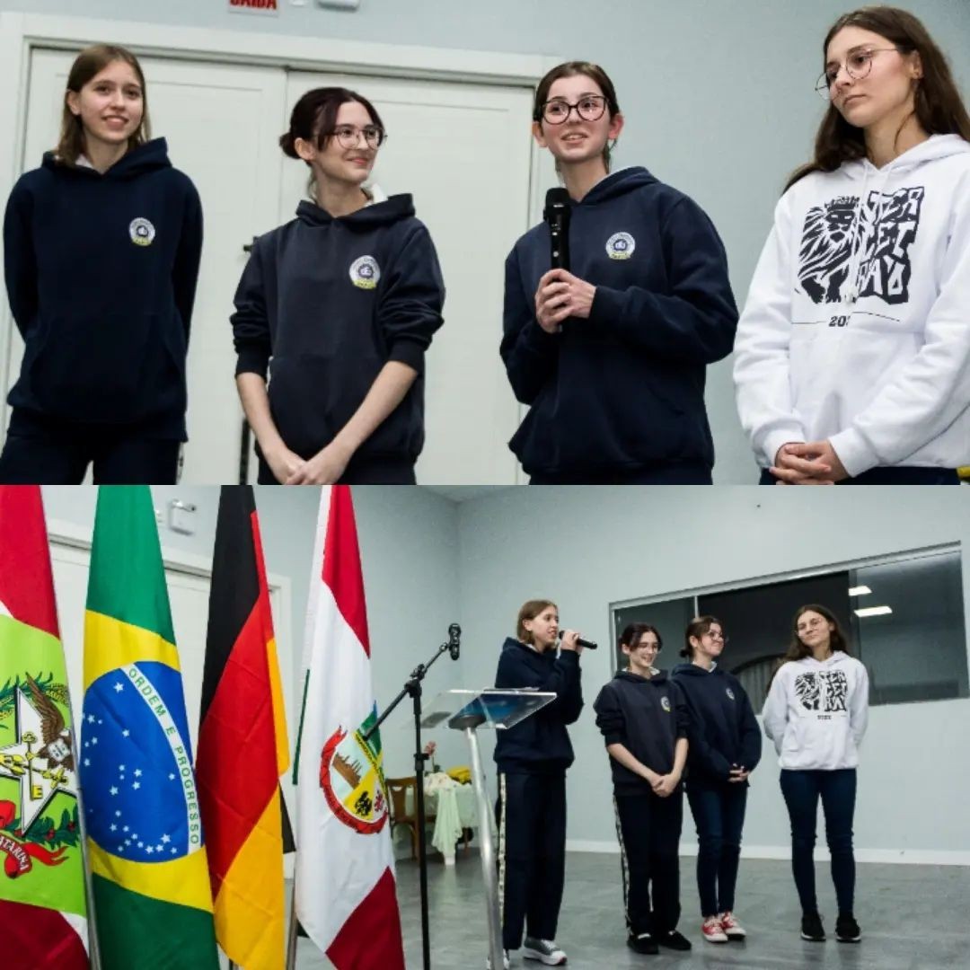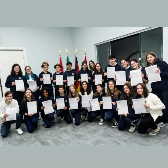 A entrega das certificações aconteceu acompanhada de relatos sobre o Jugendkurs - Curso para Jovens – realizado no ano de 2021, que envolveu alunos dos 2º anos do Ensino Médio. A importância e o prazer de saber o idioma e perder a insegurança para usá-lo foram as premissas que permearam as falas das alunas Caroline Ritter, Caroline Sprung, Isabella Lennert e Raíssa Uller ao socializarem essa marcante experiência.