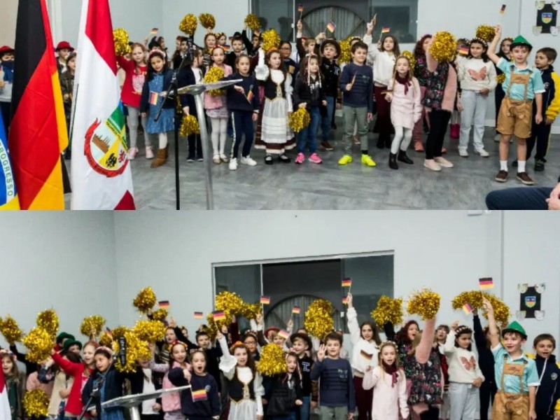 Durante o evento tivemos a participação de alunos dos 3ºs anos do Ensino Fundamental I cantando músicas em alemão. E um grupo de alunos do Ensino Médio apresentou um engraçado esquete em alemão intitulado “kalter Kaffee”.