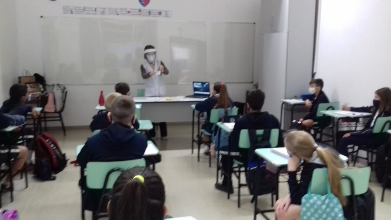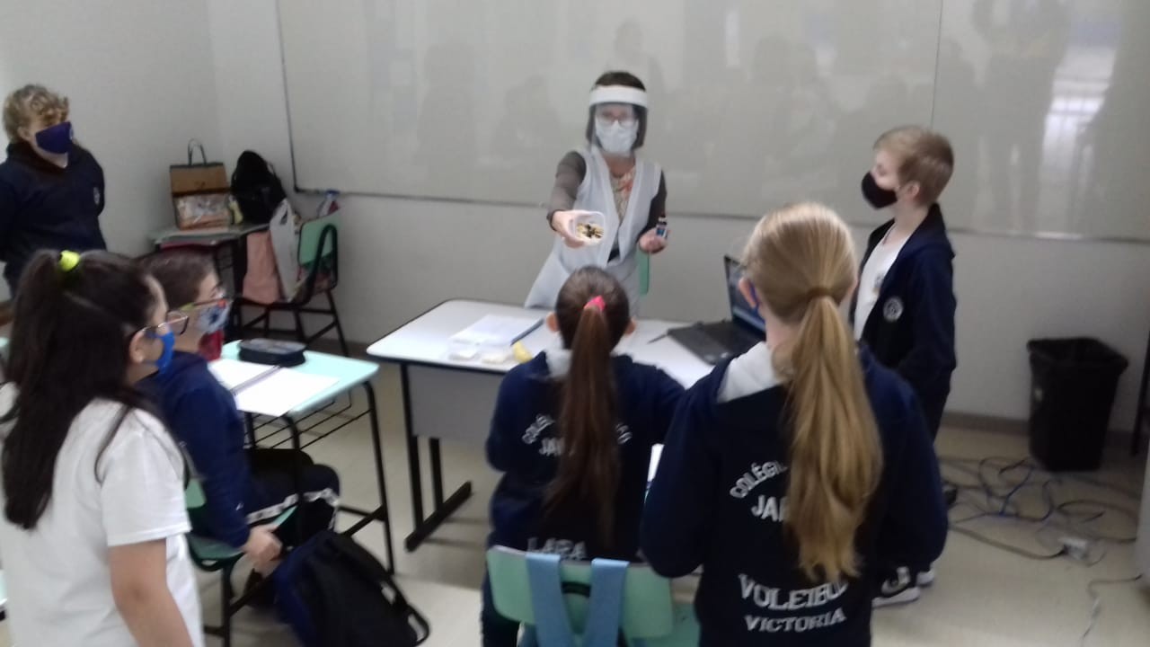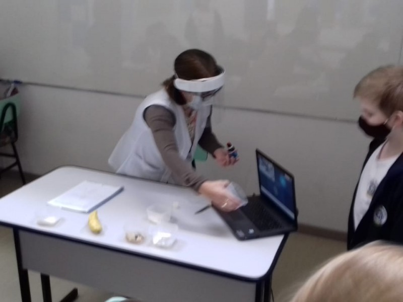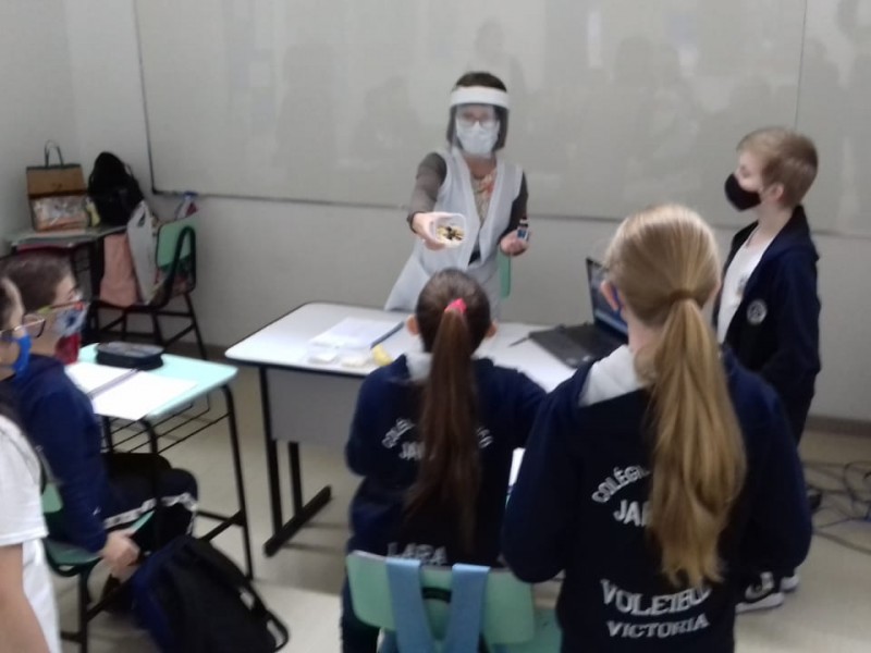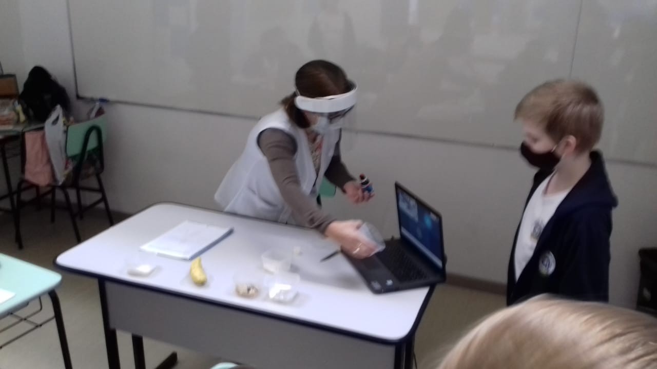 Mais notíciasAo iniciar os estudos sobre o Sistema Digestório, realizamos em sala uma experiência para verificar alguns alimentos que possuem carboidratos. No Caderno Anglo havia uma sugestão de atividade na qual deveríamos colocar algumas gotas de tintura de Iodo no amido de milho, farinha de trigo, arroz cozido, bolacha de água e sal e banana. Os alunos observaram a reação desses alimentos com o Iodo e puderam então registrar suas conclusões.