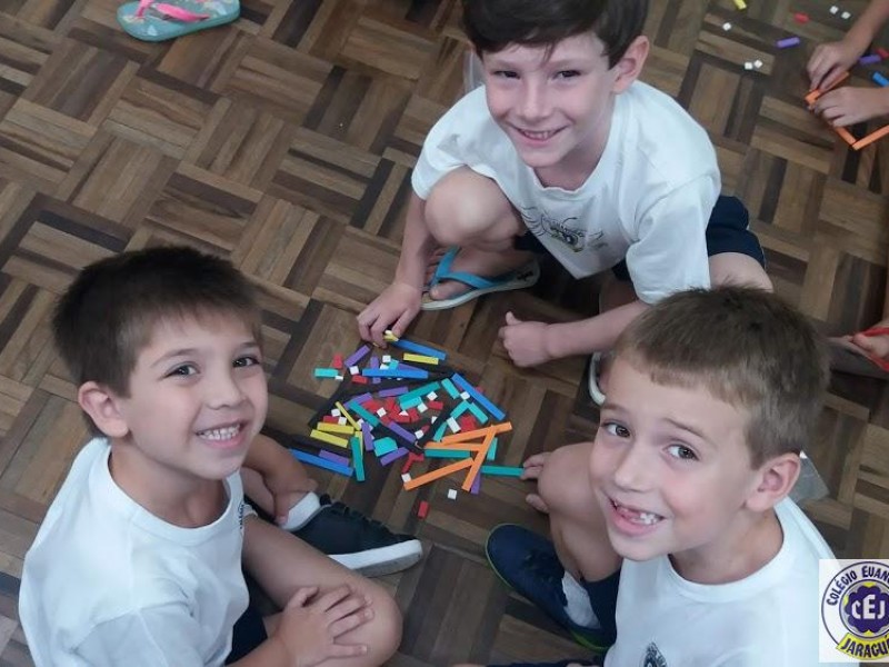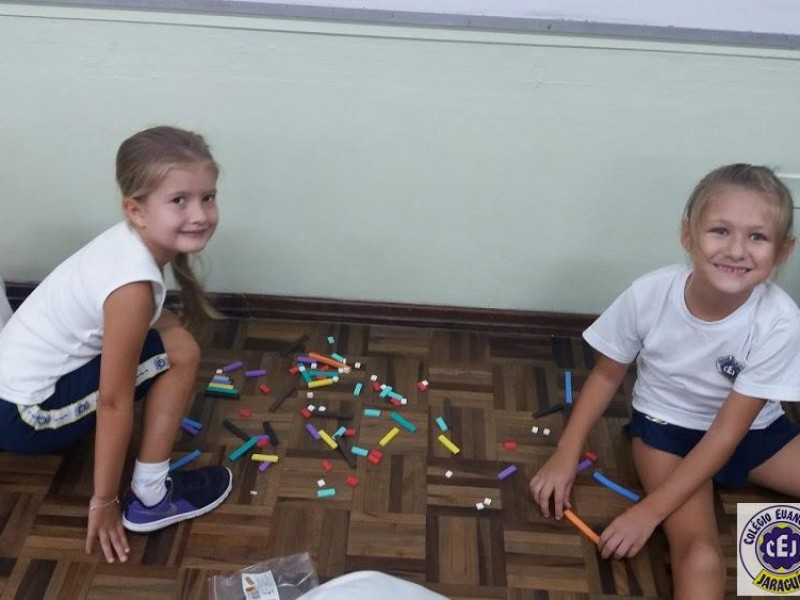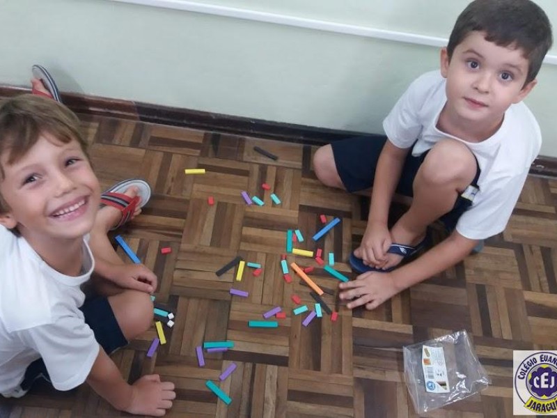 Mais notíciasCom o objetivo de trabalhar com os alunos a coordenação viso-motor, a percepção de forma e tamanho, as cores, a noção de unidade de medida, a comparação de tamanhos, a comparação entre números, as noções de adição e subtração, o 1º ano D explorou as barrinhas cuisenarire. As barras Cuisenaire são um material pedagógico, também chamado de “números coloridos”. O material Cuisenaire é constituído por uma série de barras COLORIDAS, sem divisão em unidades e com tamanhos variando de uma até dez unidades. Cada tamanho corresponde a uma cor específica.