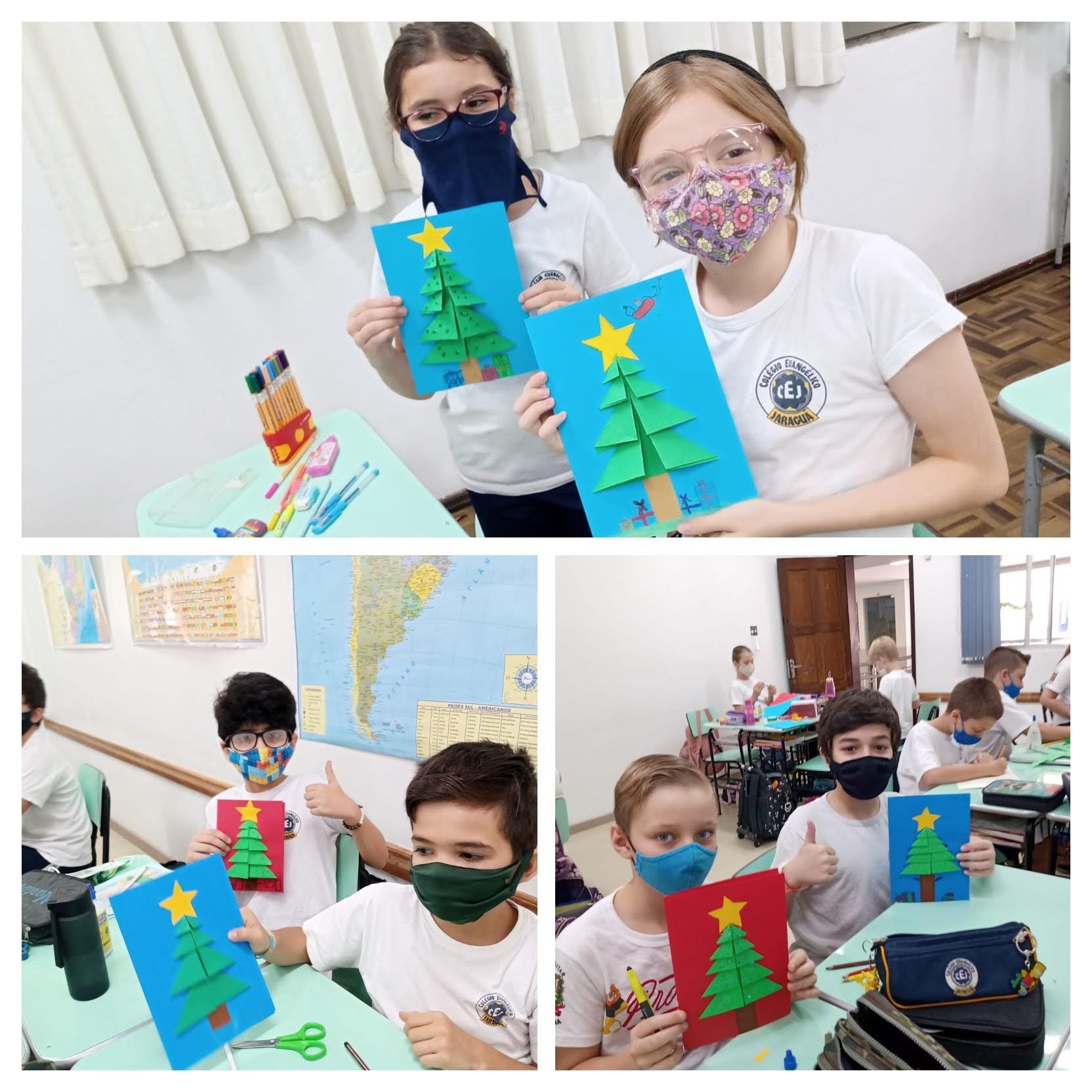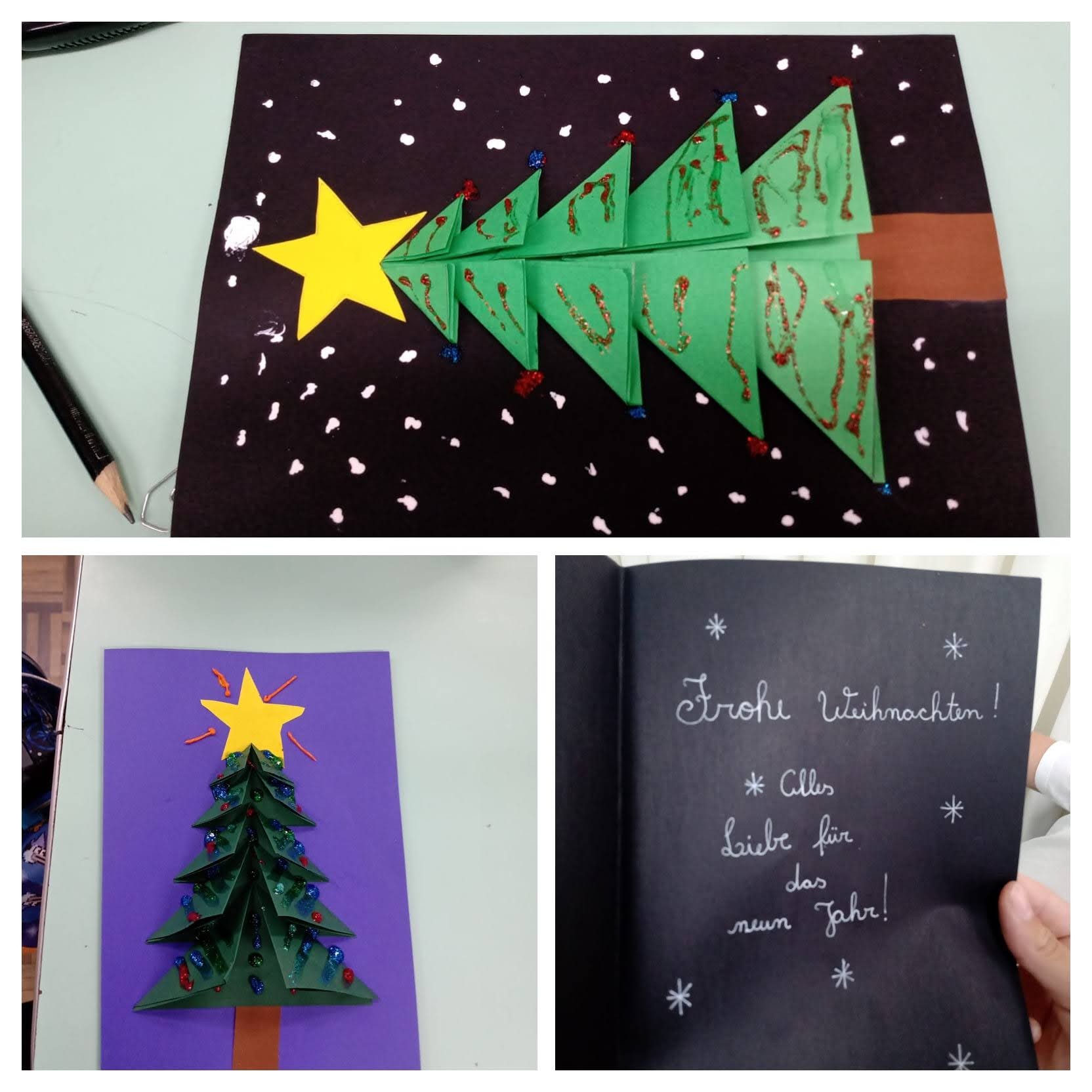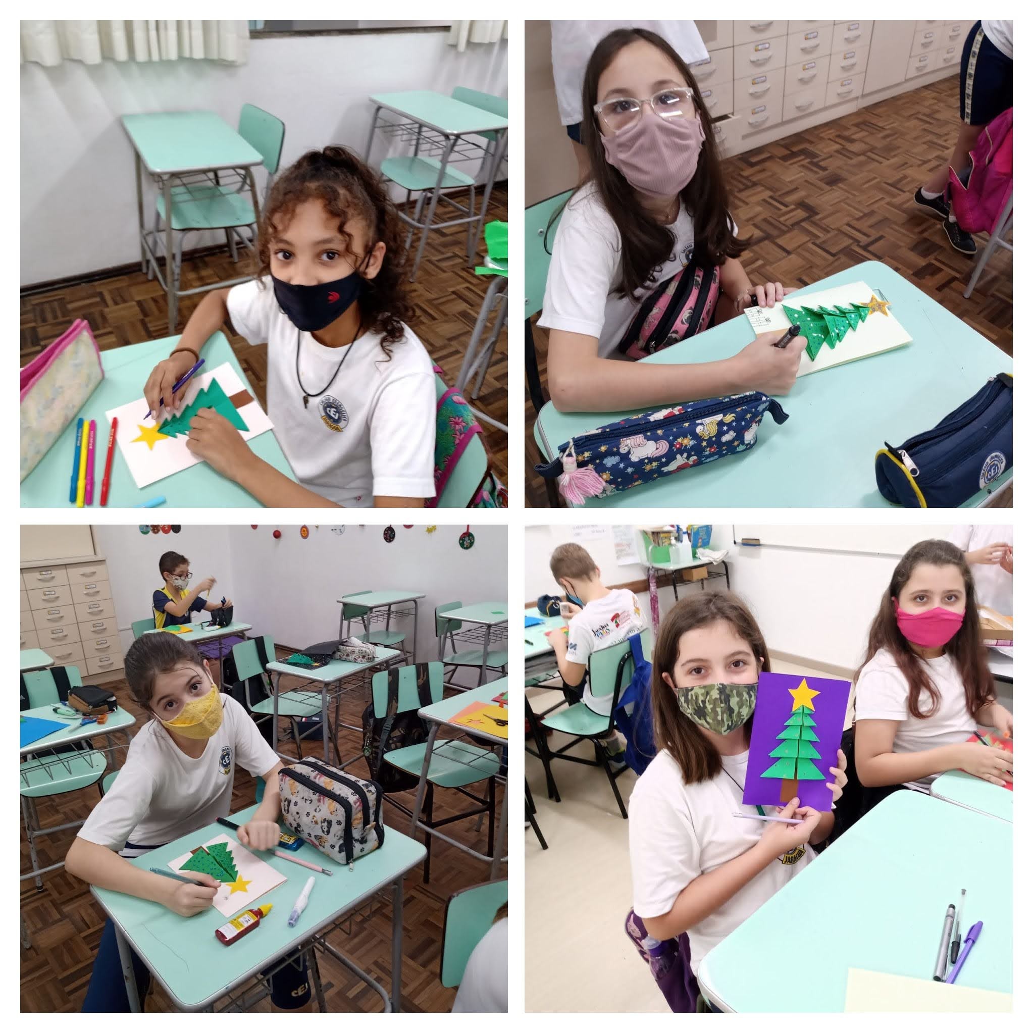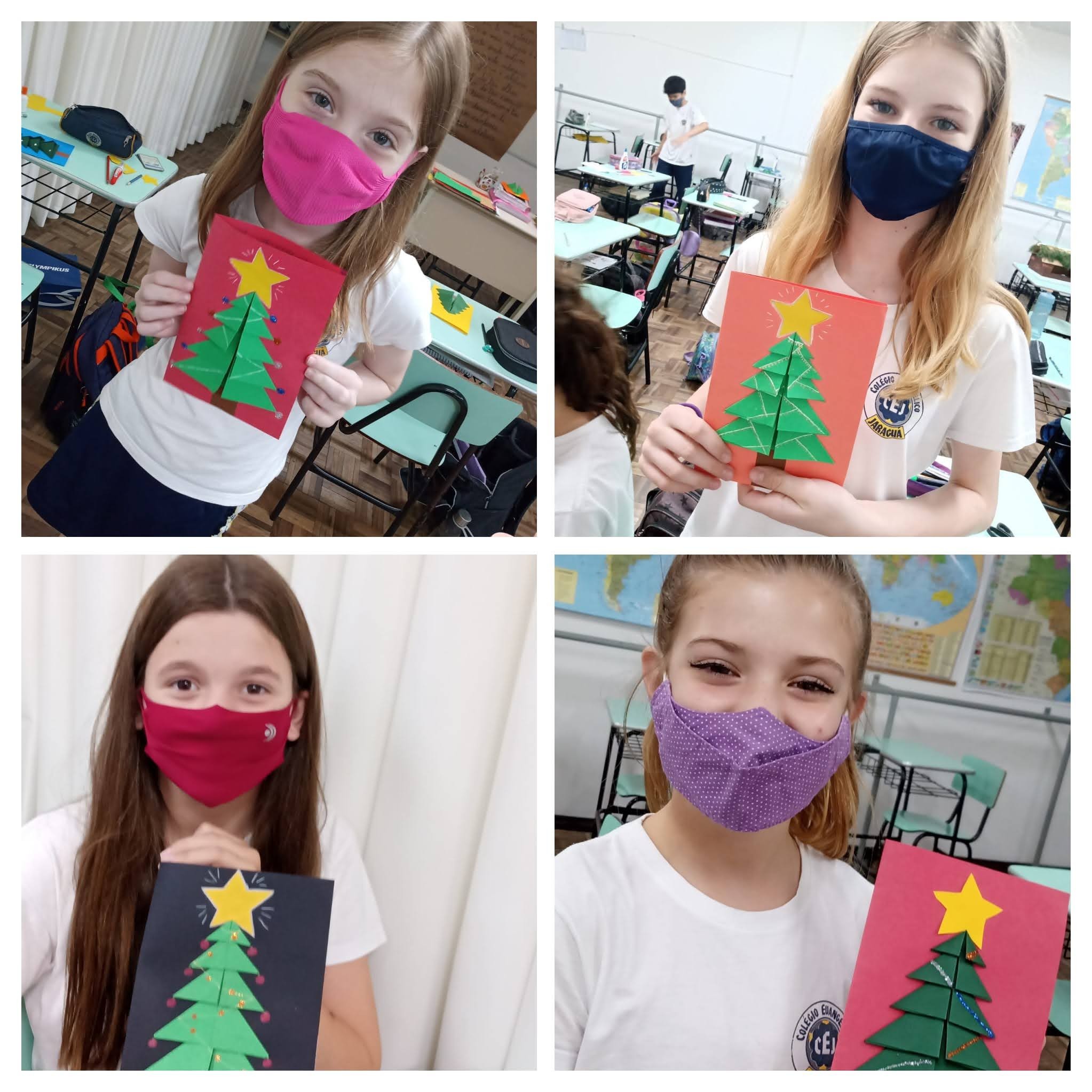 Mais notíciasNas aulas de Alemão dos 4ºs e 5ºs anos elaboramos cartões de Natal trabalhando com dobraduras. Cada aluno decorou seu cartão usando a imaginação e criatividade. Para desejar um feliz e abençoado Natal, utilizaram palavras no idioma alemão.