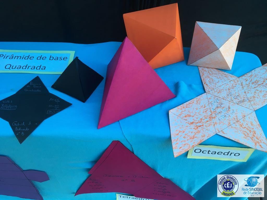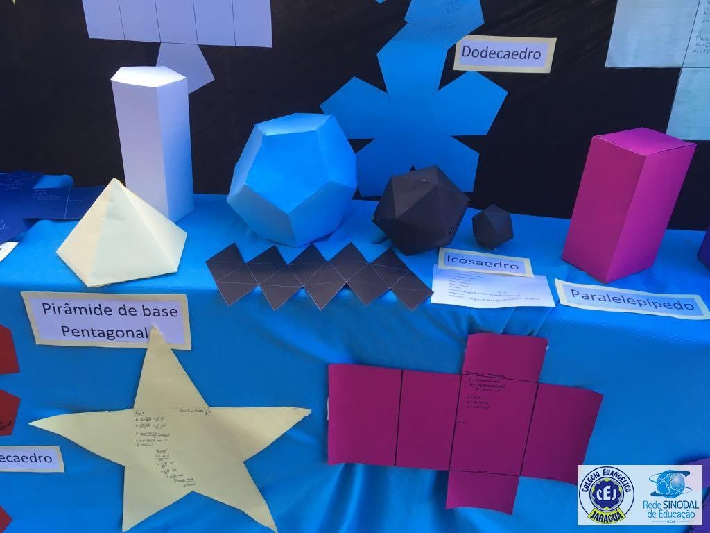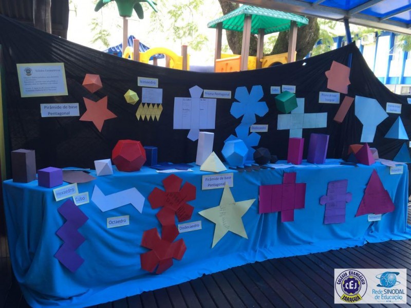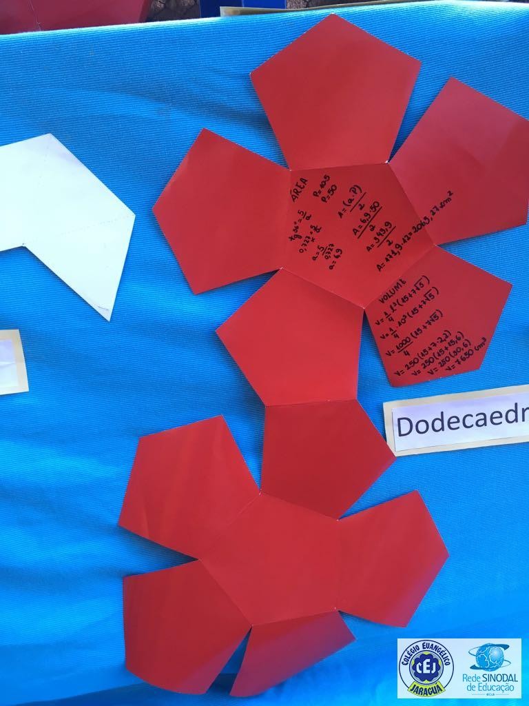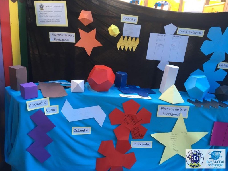 Mais notíciasNo mês de outubro os alunos do 2ºs Anos do Ensino Médio, estudaram a geometria do espaço. Confeccionaram diversos poliedros regulares com suas respectivas planificações. São eles : tetraedro, hexaedro, octaedro, dodecaedro, icosaedro e pirâmides. Também calcularam a área e volume desses poliedros.