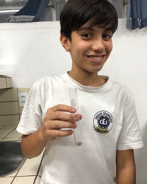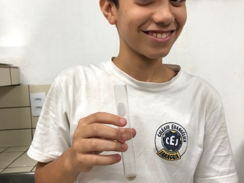 Dessa forma, nas aulas de Química os alunos do 9º ano realizaram alguns experimentos, orientados pelo professor Marcelo.