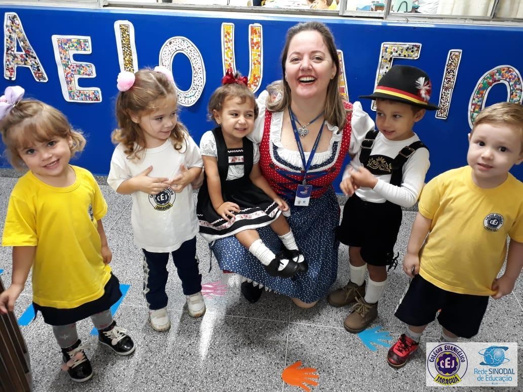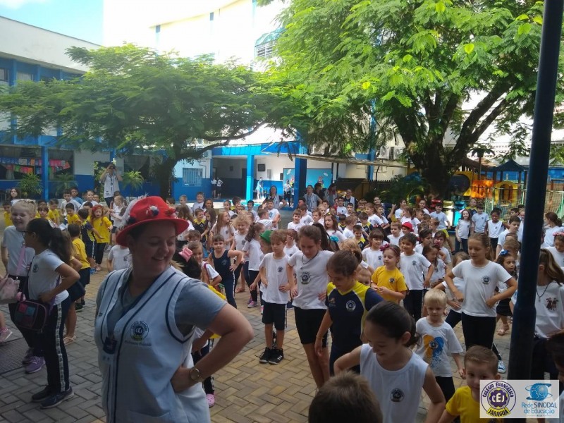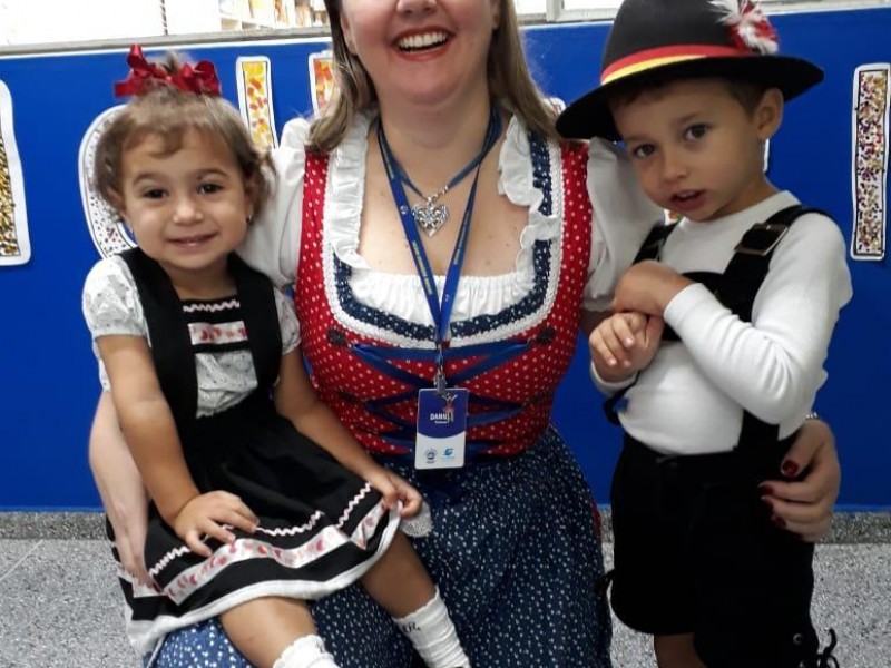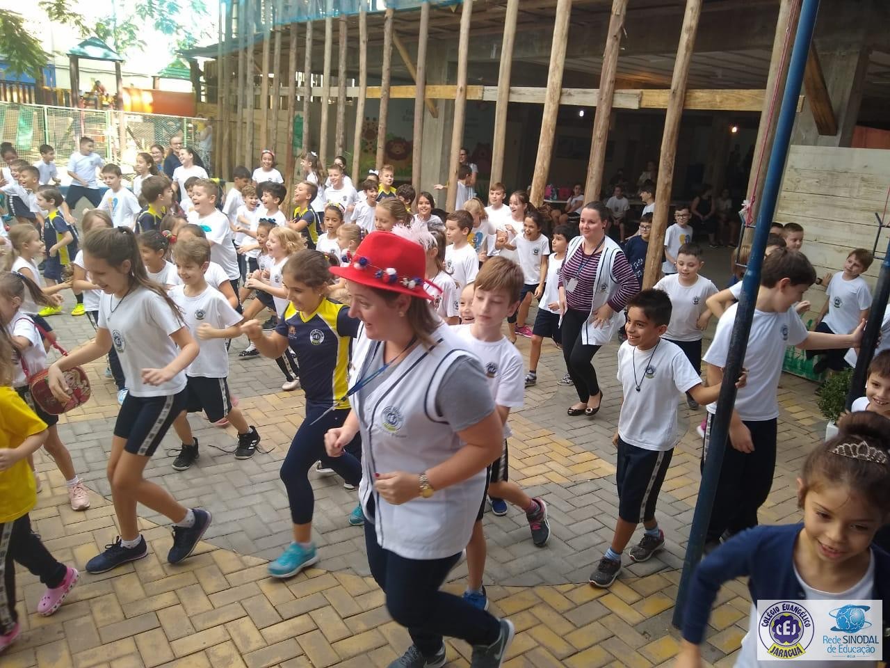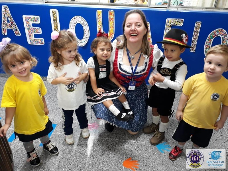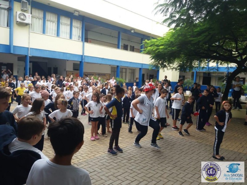 Dentre as várias atividades que seguem na semana da língua alemã no Cej, ontem foi o dia de movimentar o corpo. As professoras Daniele e Paula envolveram os alunos com dança folclórica na hora do intervalo. Um momento de muita diversão!