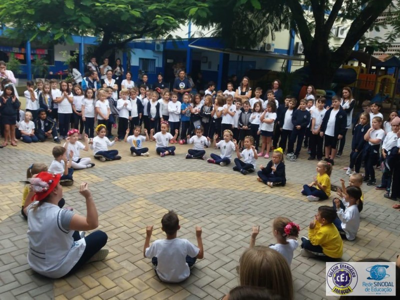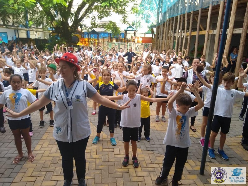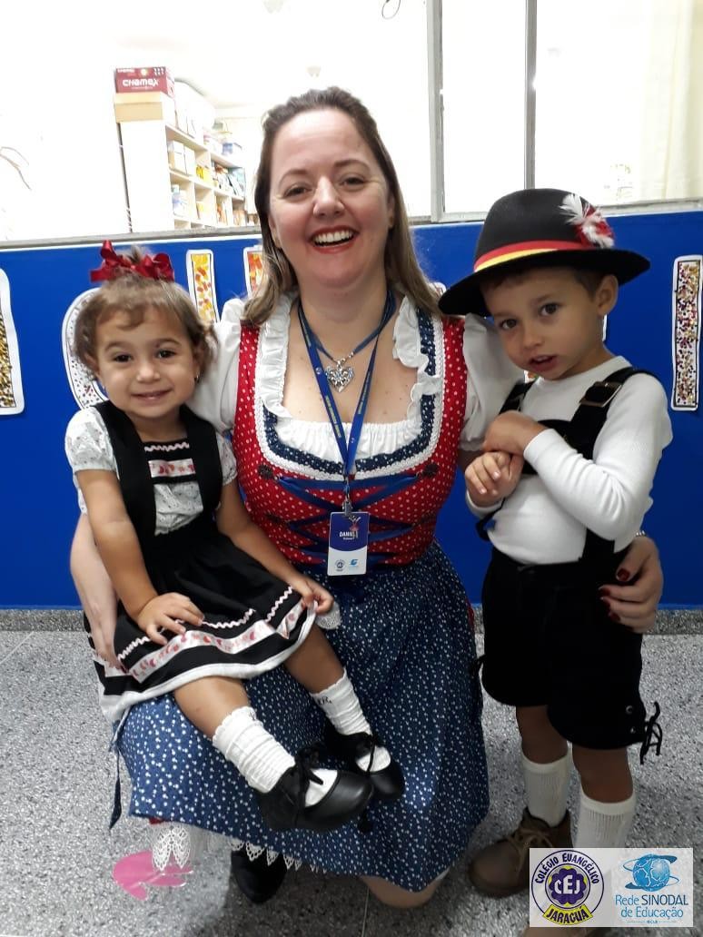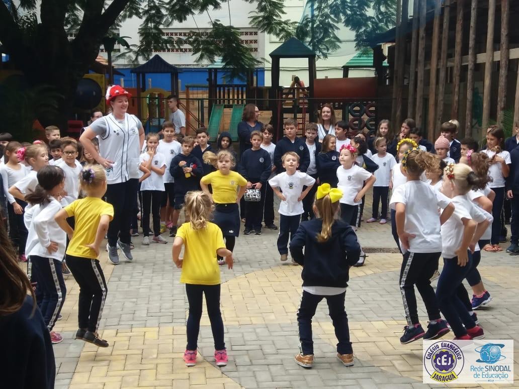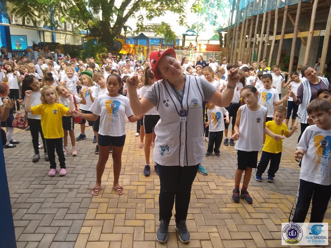 Dentre as várias atividades que seguem na semana da língua alemã no Cej, ontem foi o dia de movimentar o corpo. As professoras Daniele e Paula envolveram os alunos com dança folclórica na hora do intervalo. Um momento de muita diversão!