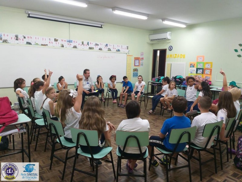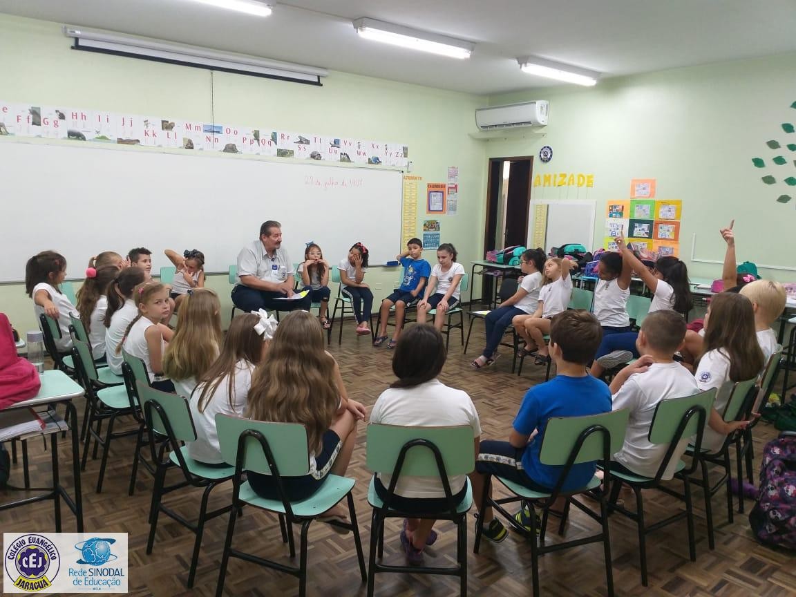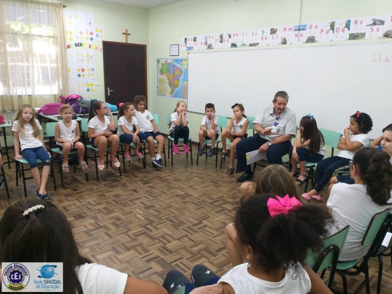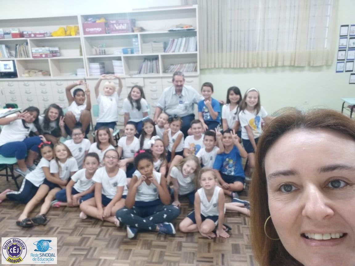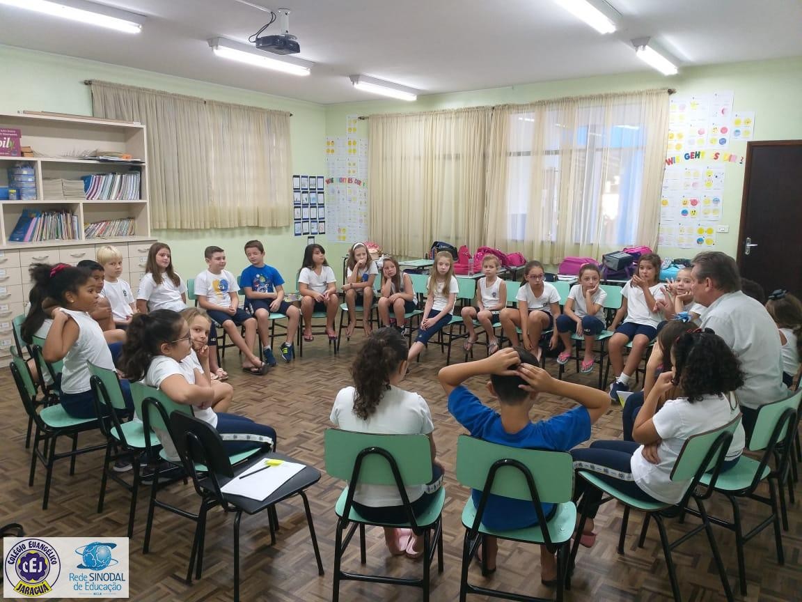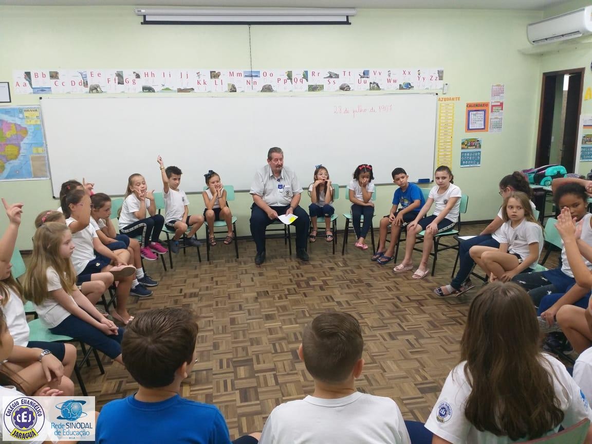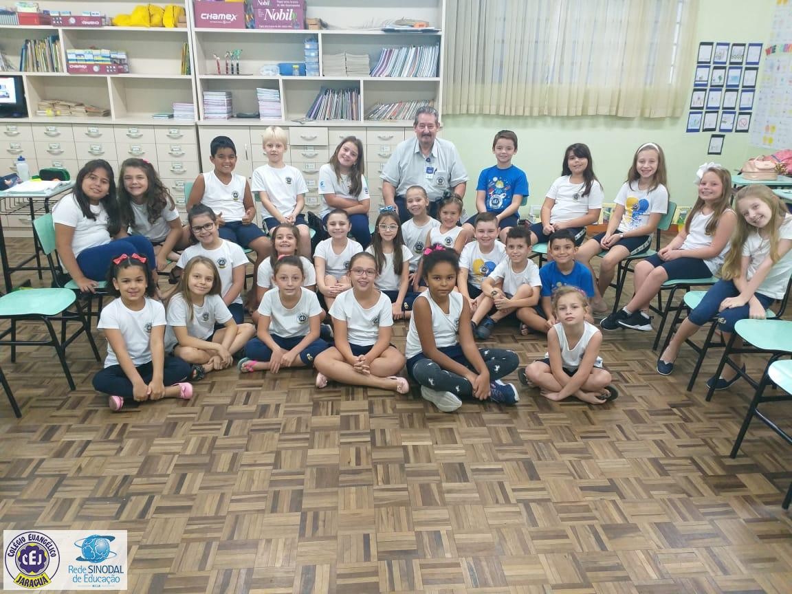 Para contar a história do Colégio, tiveram a visita do diretor Leopoldo Fenner.