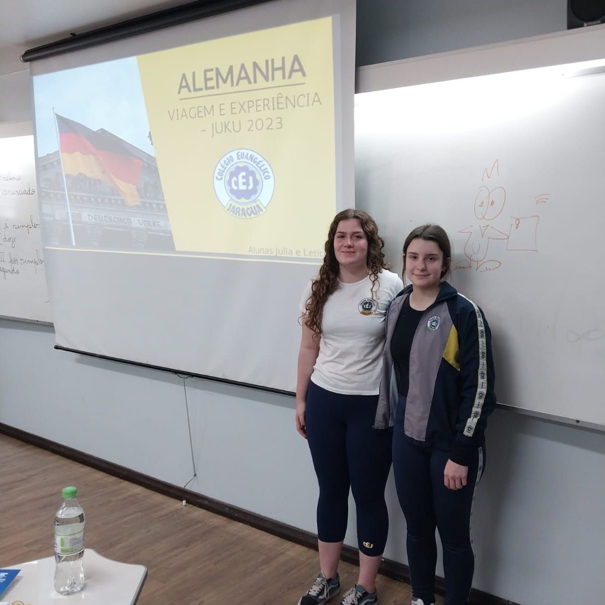 🇩🇪 Letícia Bartel e Júlia Pavanello Decker ambas da turma do 2 ano A, contando suas experiências do intercâmbio na Alemanha – PASCH – Jungendkurse - três semanas realizado em julho. Vivências de muito aprendizado da Língua Alemã e momentos inesquecíveis com diferentes colegas de várias partes do mundo. Trouxeram na bagagem o Goethe-Zertifikat B1.