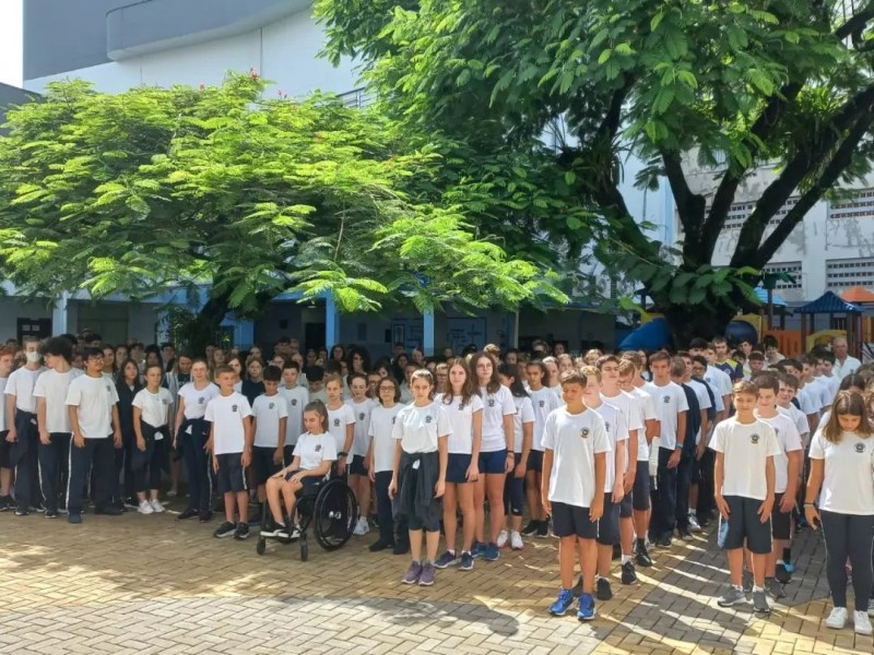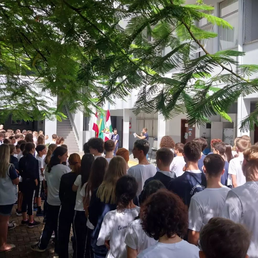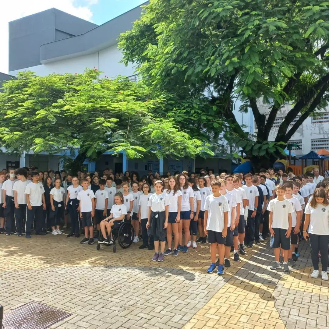 Hoje os alunos do Colégio Evangélico Jaraguá participaram do primeiro momento cívico do ano