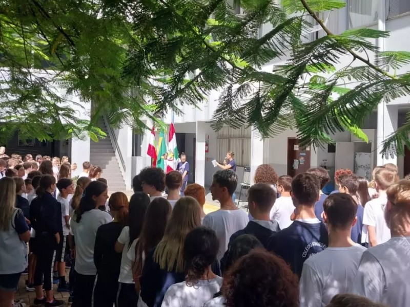 Mais notíciasHoje os alunos do Colégio Evangélico Jaraguá participaram do primeiro momento cívico do ano. A proposta se repetirá todos os meses, com o objetivo de trabalhar a cidadania, o amor ao próximo e a nossa pátria. São momentos específicos para refletir sobre vários assuntos e cantar o Hino Nacional e o Hino da Cidade na escola.