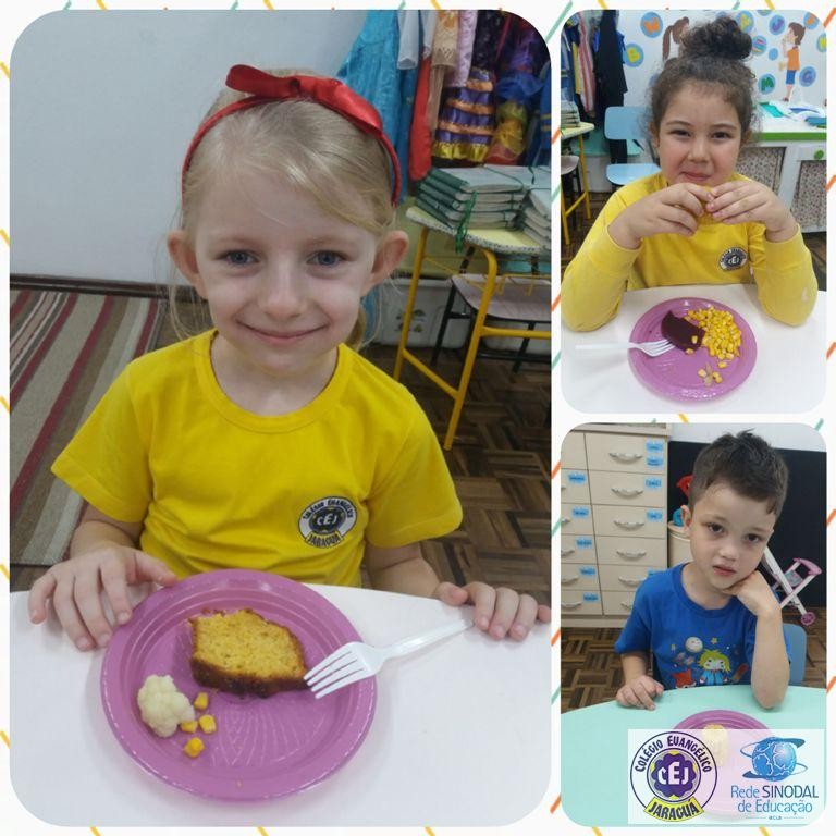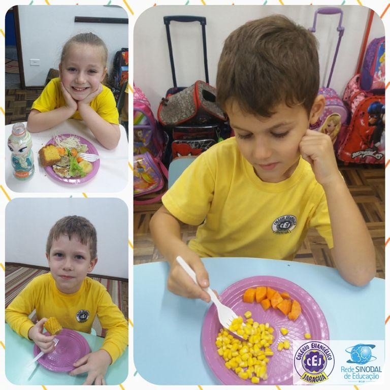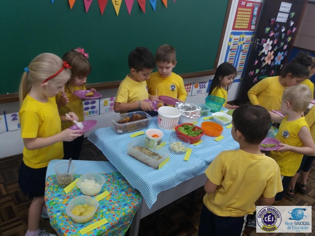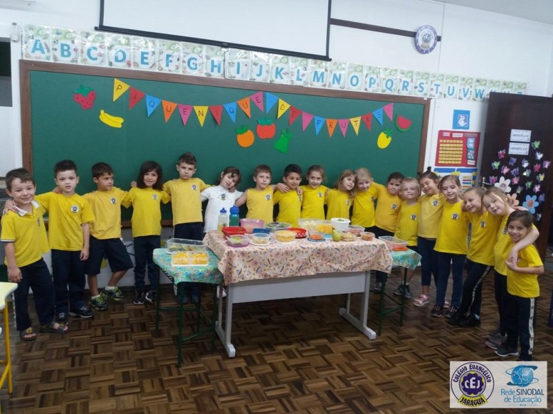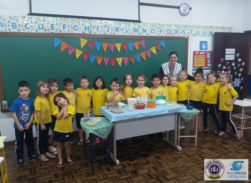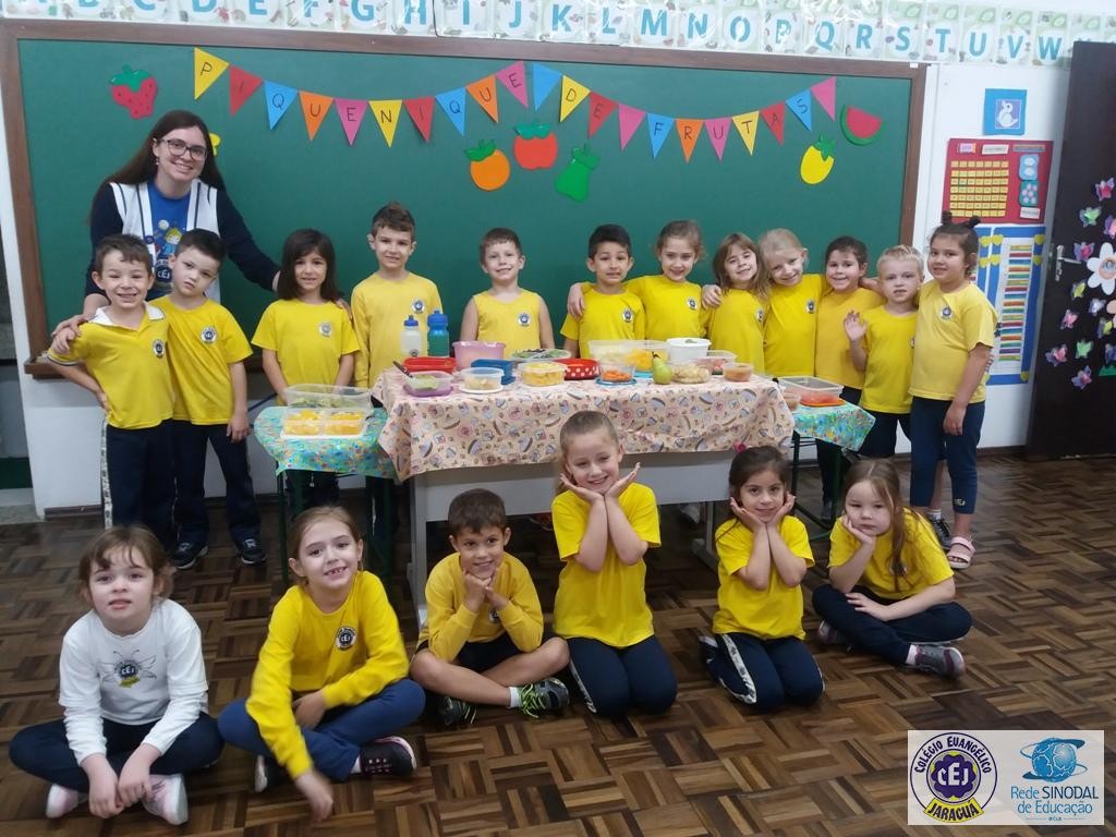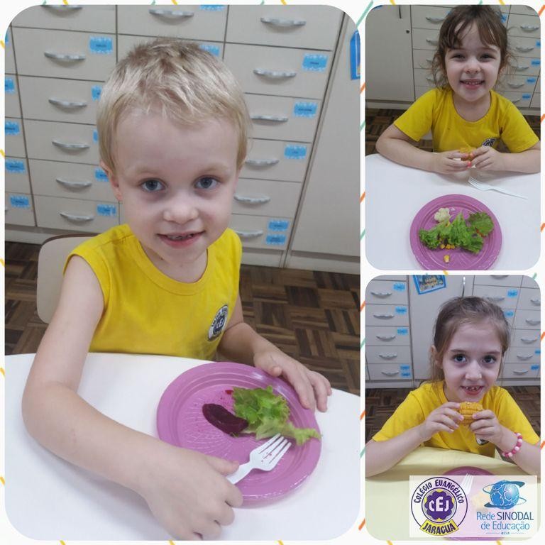 Mais notíciasSabendo da importância de incentivar a alimentação saudável, desde o início do ano letivo no lanche diário a turma do Infantil V A da professora Anne, teve a oportunidade de montar seu prato e provar vários sabores de verduras e de frutas em momentos de piquenique. Além disso, conheceram histórias, músicas e atividades relacionadas ao tema, realizados no final do mês de outubro e início do mês de novembro.