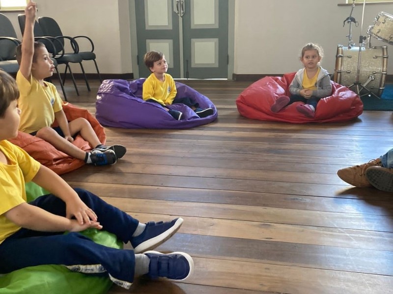 Observar a pureza e o entendimento que as crianças têm de Deus é uma sensação única. A turma do Integral Infantil Matutino participou de um momento de roda de conversa com o P. Lucas Grade.