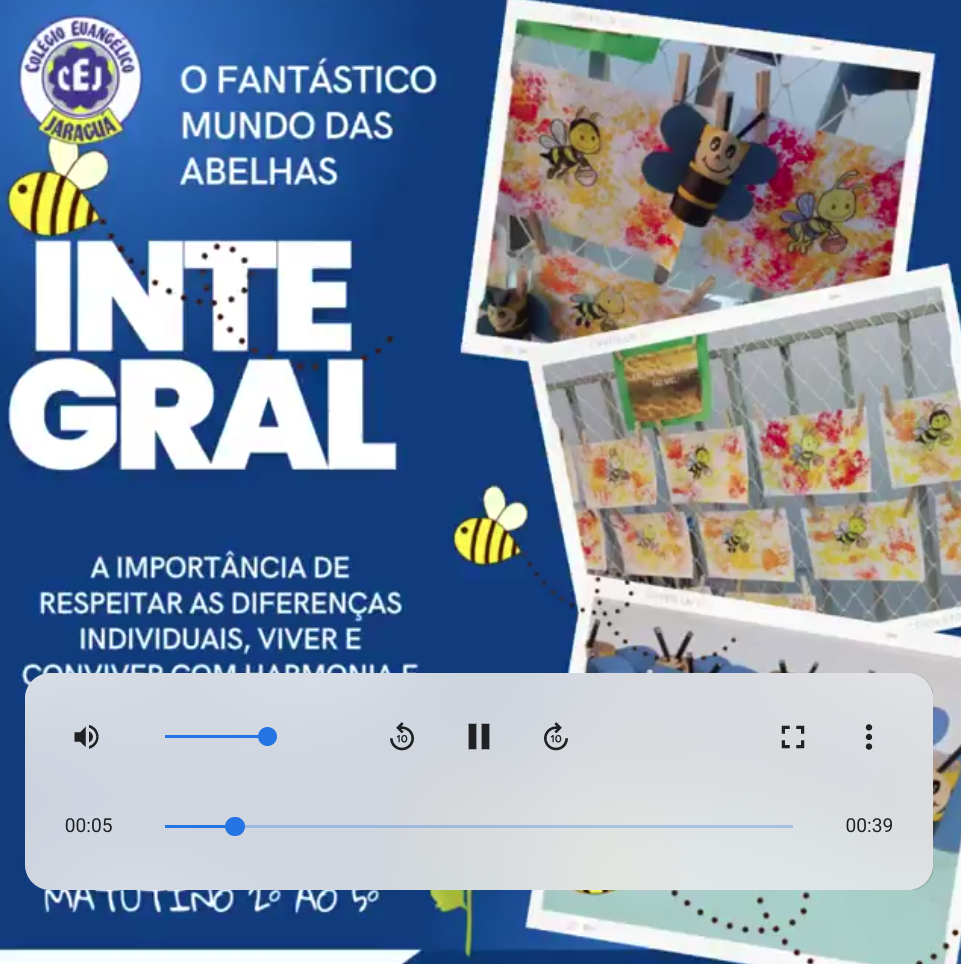 Mais notíciasDurante o mês de abril, alunos do Turno Integral aprenderam a identificar de diversas maneiras, a importância das abelhas para nossa vida. Tudo começou com a curiosidade sobre o mel, de onde vem e quais seus benefícios. Dessa forma, pesquisamos com os alunos o tema "O fantástico mundo das abelhas", desenvolvemos diversas atividades lúdicas, para assim transformar, uma simples aula, em muito conhecimento e diversão!