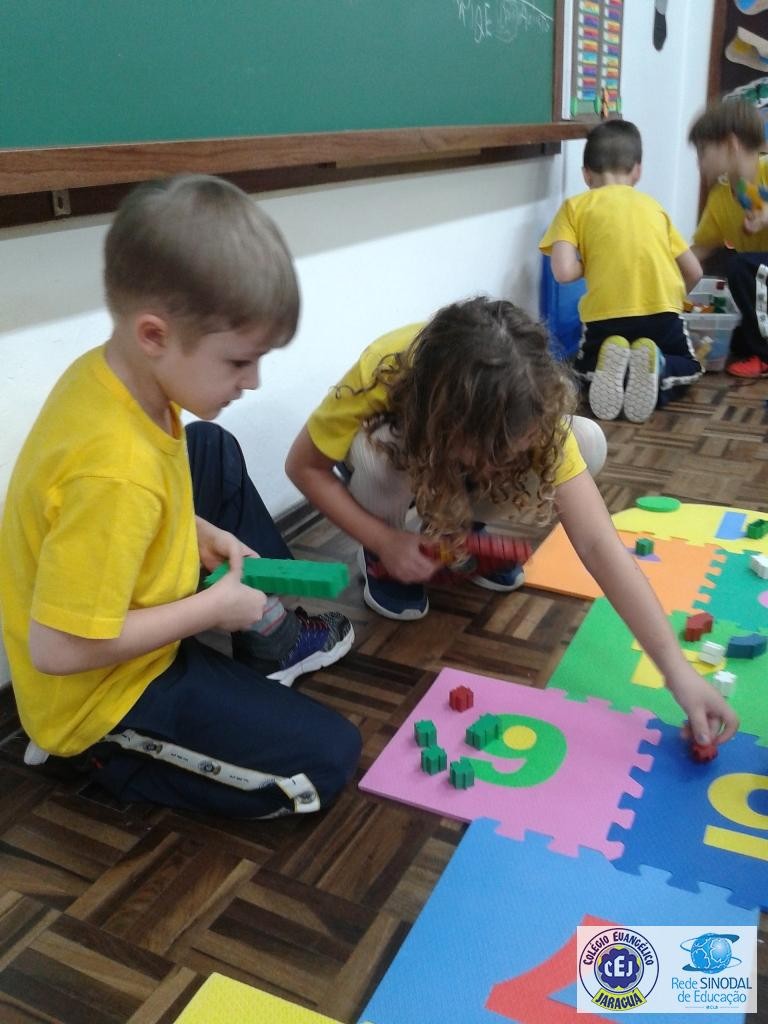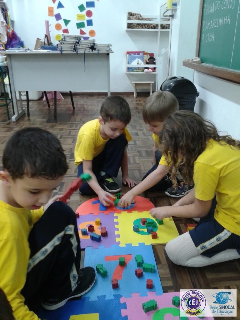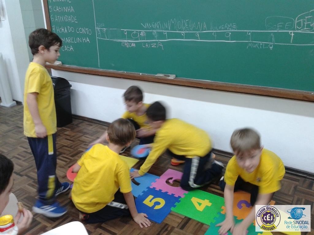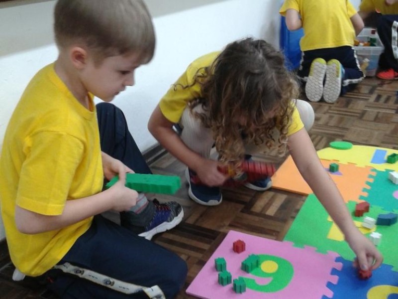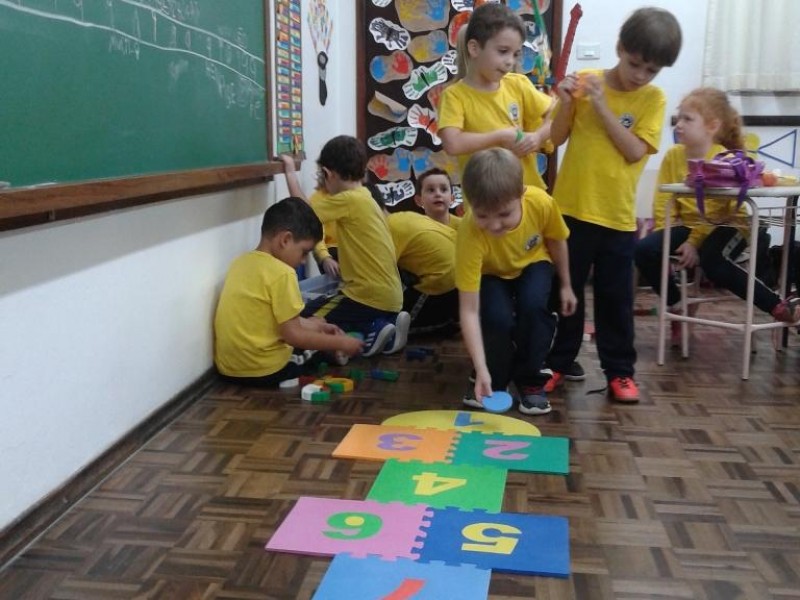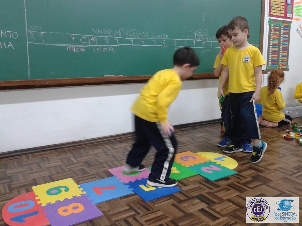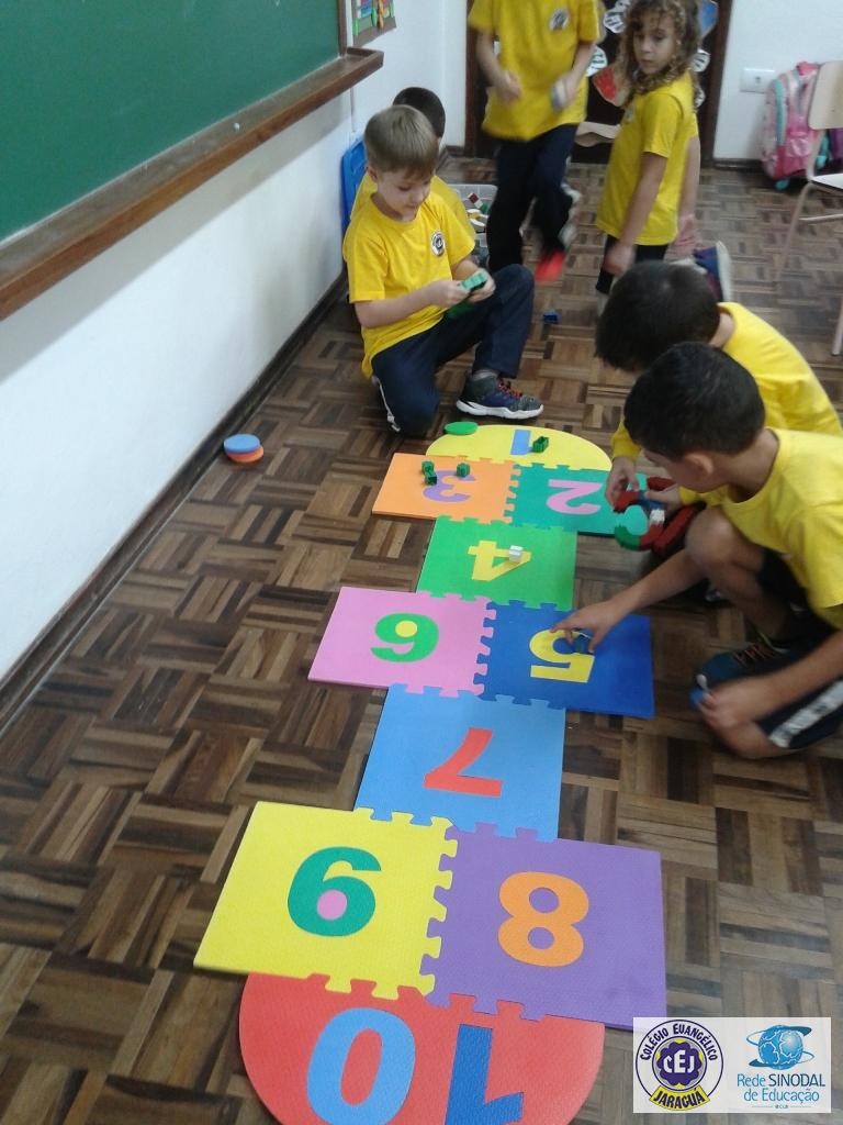Mais notíciasBrincando, as crianças constroem sentido para o mundo, desenvolvem ideias e habilidades e ainda compreendem conceitos relacionados a cada vivência. Pensando nisso, os alunos do Infantil V B, durante os meses de abril e maio, estão explorando o jogo da Amarelinha com o objetivo de apropriar-se da sequência numérica, da grafia dos números, da quantidade correspondente de cada número. Além disso diversas habilidades são desenvolvidas: o controle corporal ao não pisar na linha, a força muscular ao dar saltos, a orientação espacial ao respeitar os limites da casinha, a coordenação óculo-manual ao lançar a pedrinha, coordenação motora fina ao pegar a pedrinha, o equilíbrio ao ficar em um pé só. As atividades também fortalecem o vínculo de amizade sem deixar de ser uma grande brincadeira.