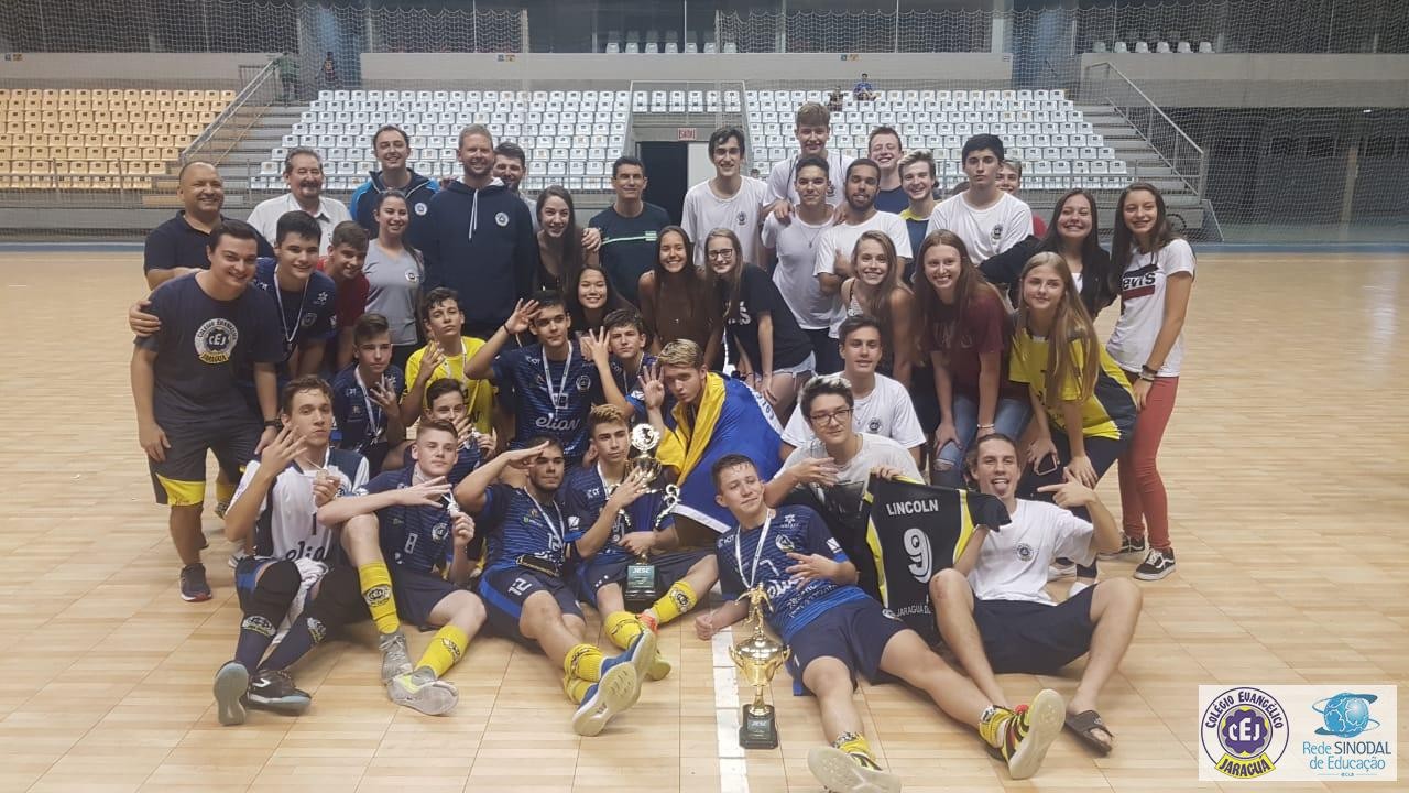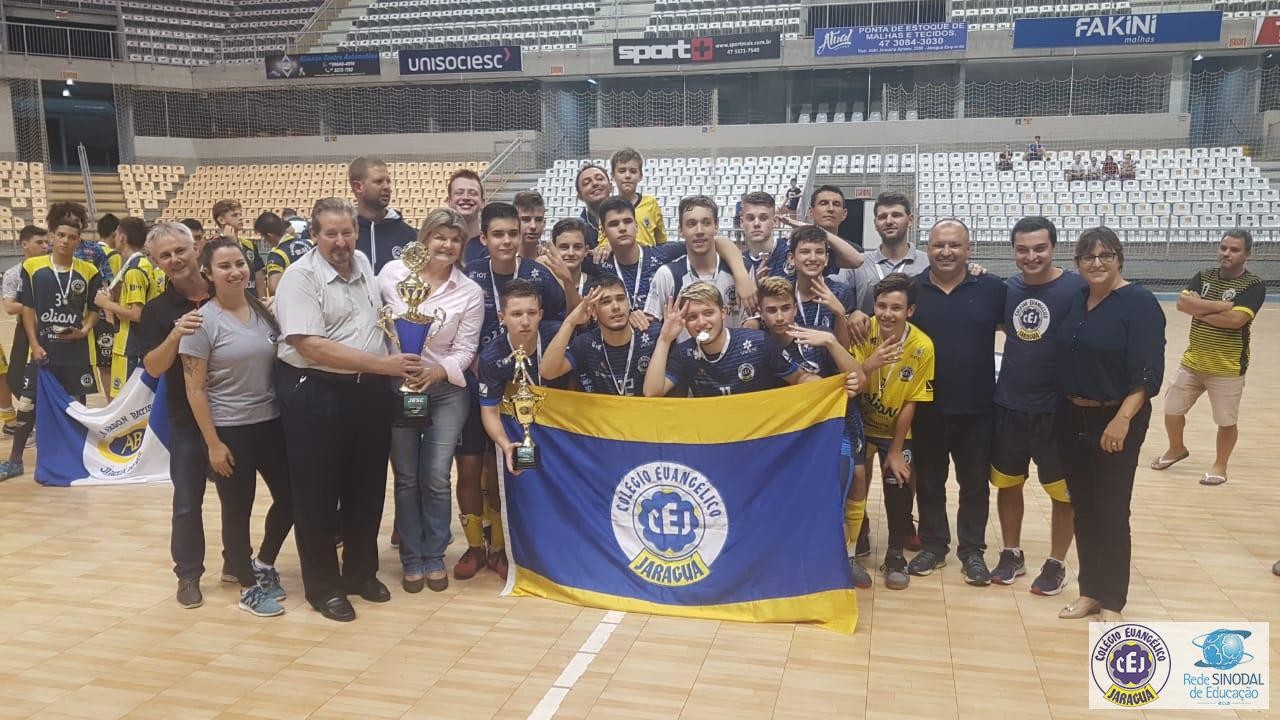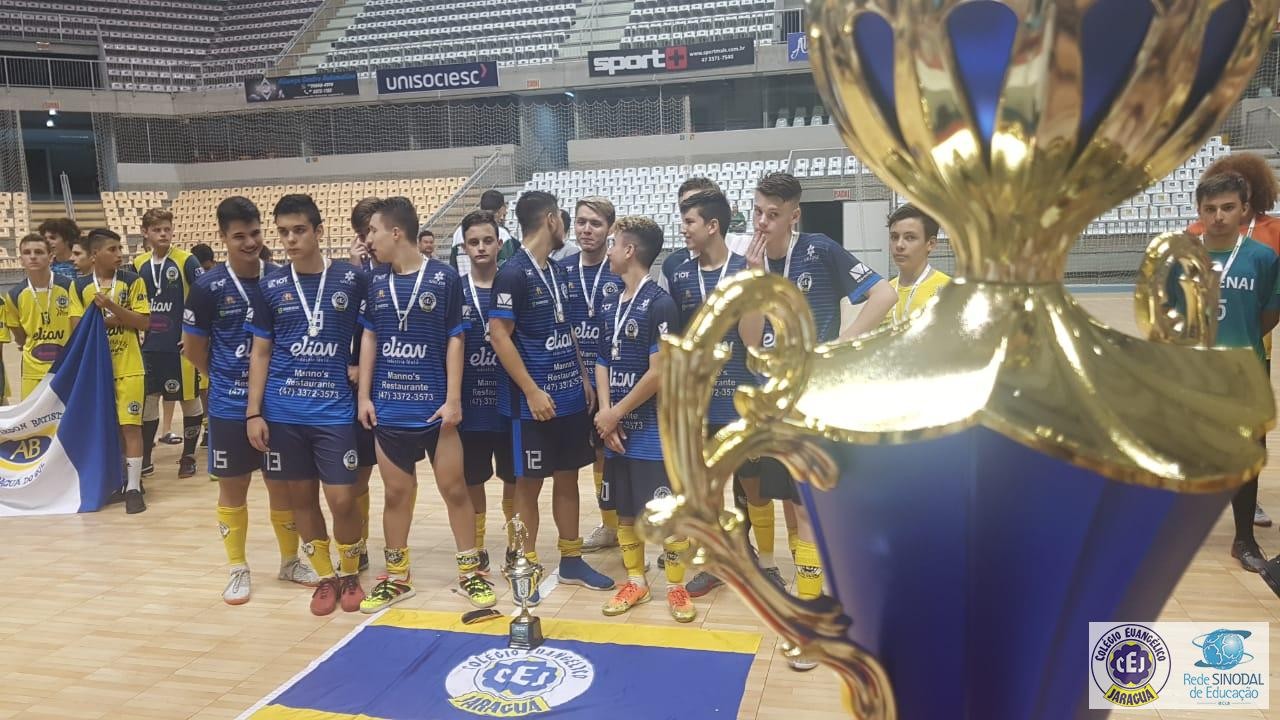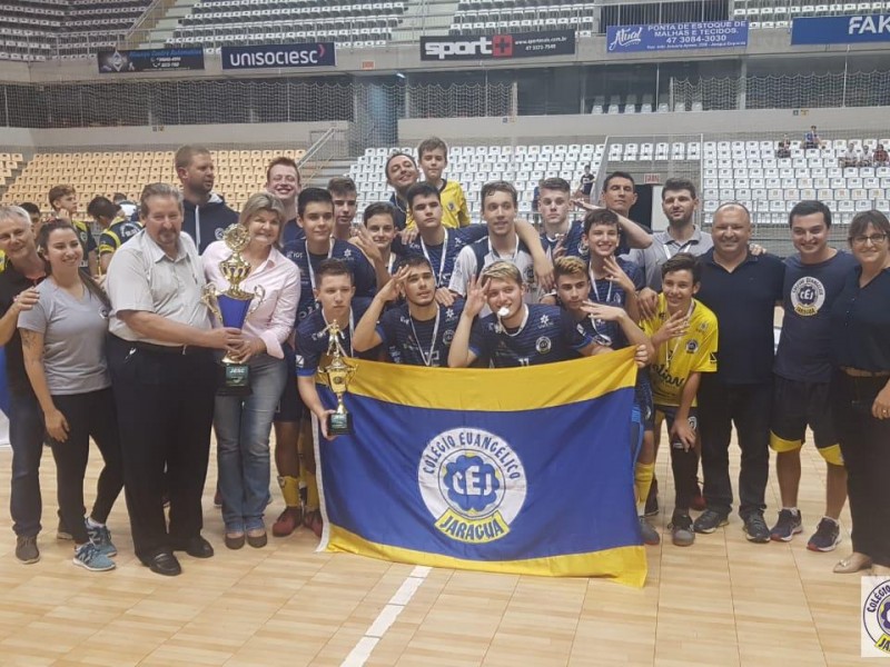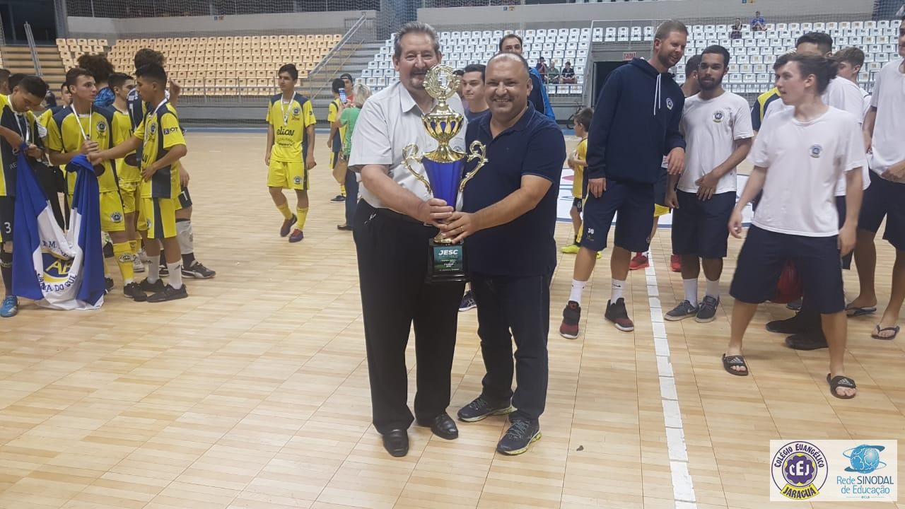 Mais notíciasApós 11 edições dos Jogos Escolares de 15 a 17 anos, realizadas na última década no nosso município e todas as edições apenas com a premiação das equipes vencedoras por modalidade, o ano de 2019 trouxe uma inovação. 2019 foi o ano da primeira edição que teve também a premiação com troféu de Campeão Geral, para o Colégio com o melhor desempenho geral. Com 105 pontos somados, o Colégio Evangélico Jaraguá conquistou esse título inédito no nosso município.