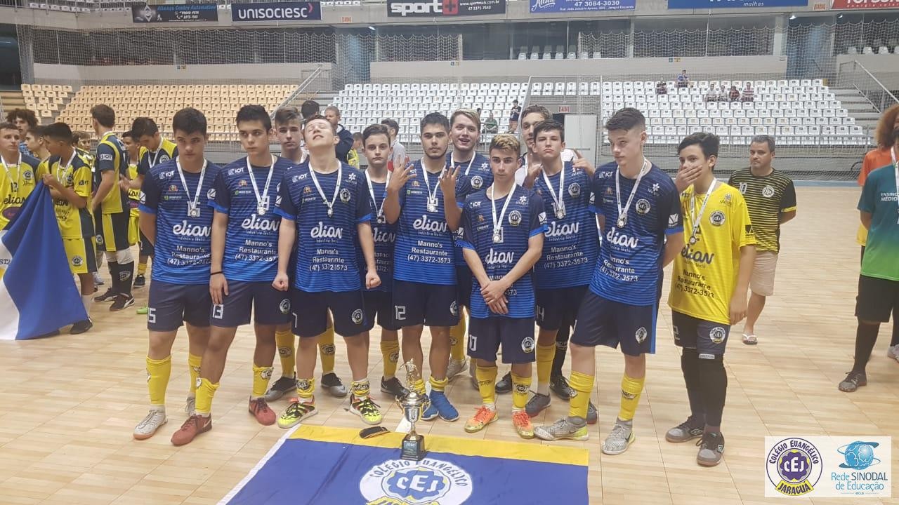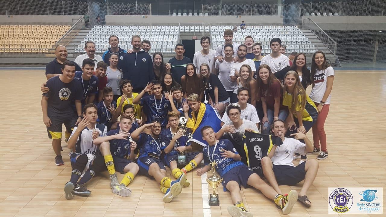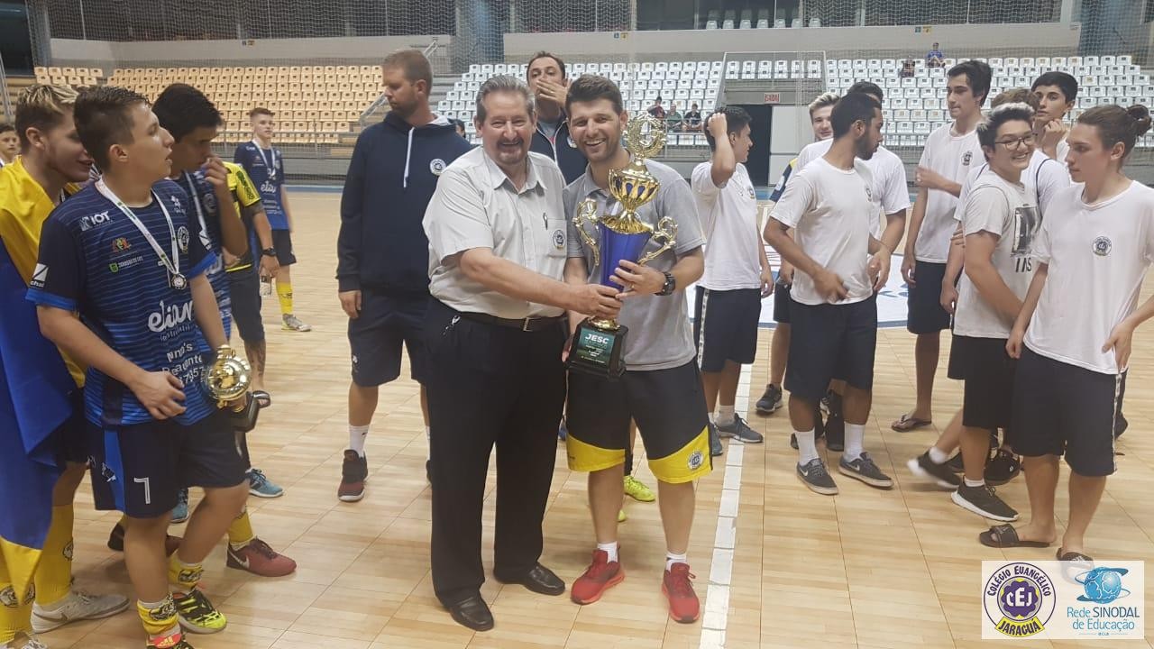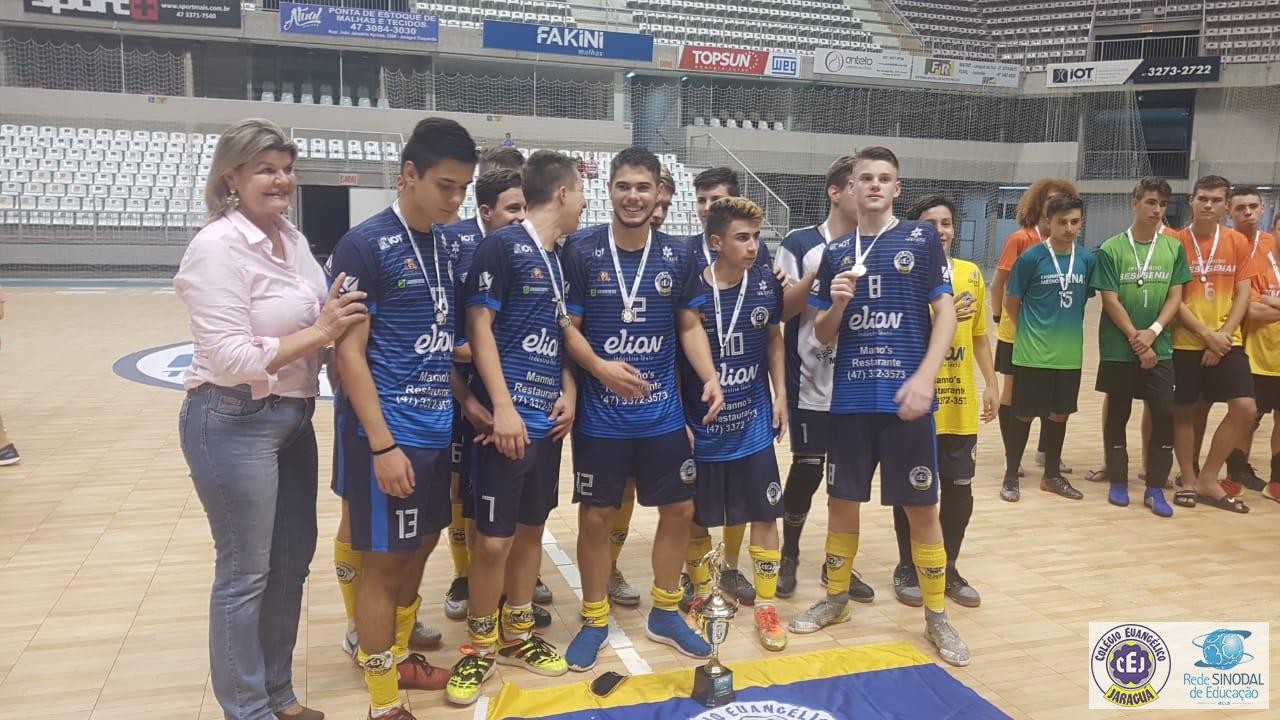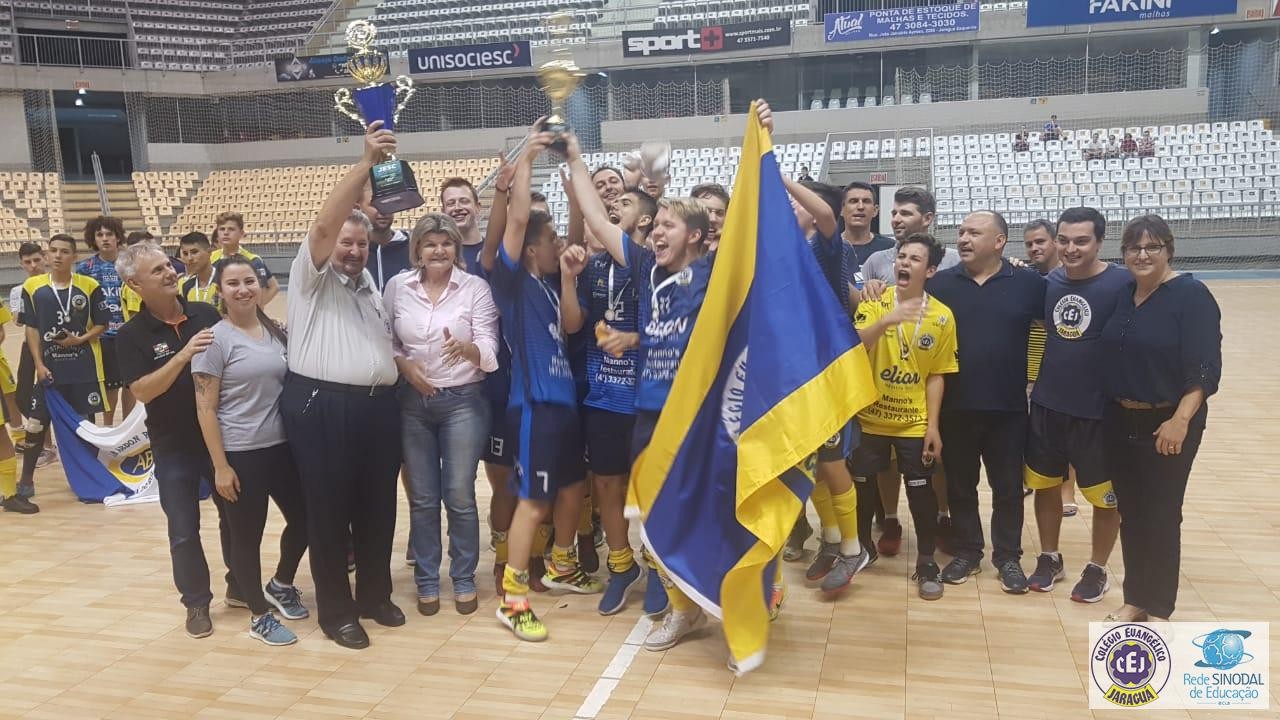 Mais notíciasApós 11 edições dos Jogos Escolares de 15 a 17 anos, realizadas na última década no nosso município e todas as edições apenas com a premiação das equipes vencedoras por modalidade, o ano de 2019 trouxe uma inovação. 2019 foi o ano da primeira edição que teve também a premiação com troféu de Campeão Geral, para o Colégio com o melhor desempenho geral. Com 105 pontos somados, o Colégio Evangélico Jaraguá conquistou esse título inédito no nosso município.