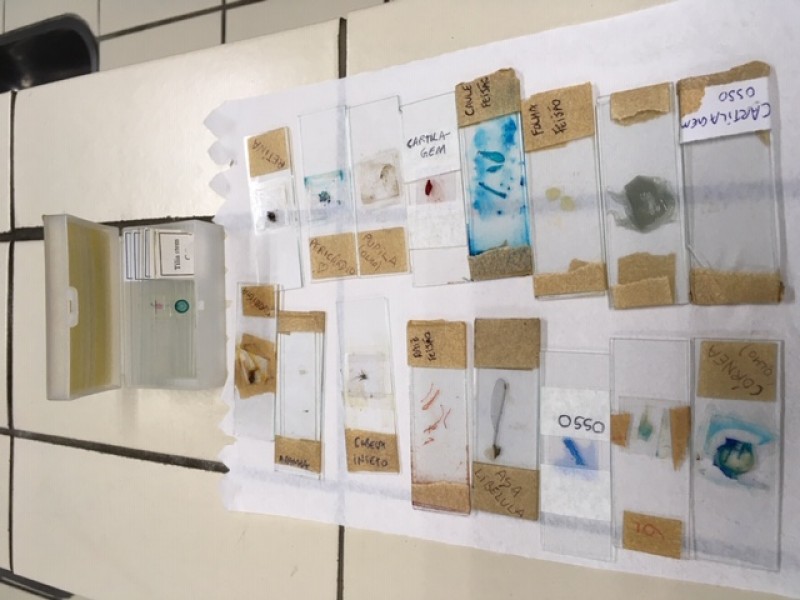 Lâminas no microscópio