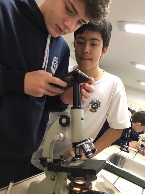 Mais notíciasAlunos dos 8º anos nas aulas de Ciências, auxiliados pelo professor Marcelo Passold, focaram e observaram várias lâminas no microscópio.