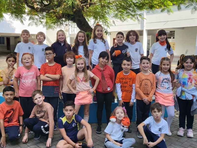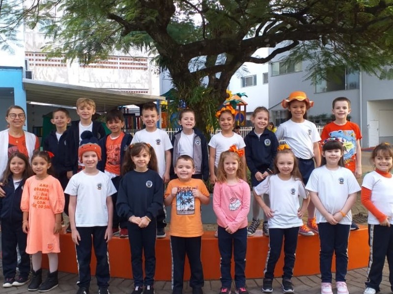 Nossa escola ficou ainda mais linda, colorida e alegre! Os alunos e suas famílias usaram a sua criatividade e tornaram esse dia muito especial. Tivemos bolos de cenoura que foram compartilhados em turma, picoca colorida, sem falar dos sucos e frutas diversas que foram consumidas e muitas delas experimentadas pela primeira vez com o nosso desafio da comida laranja. Diversas foram as vestimentas os acessórios e elementos na cor laranja que se destacaram!