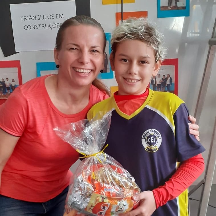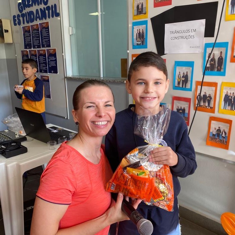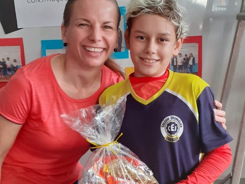 Tivemos o sorteio dos kits de guloseimas cujos vencedores foram no período matutino o aluno Davi o 3ºA e no período vespertino o aluno Gabriel do 7º C.