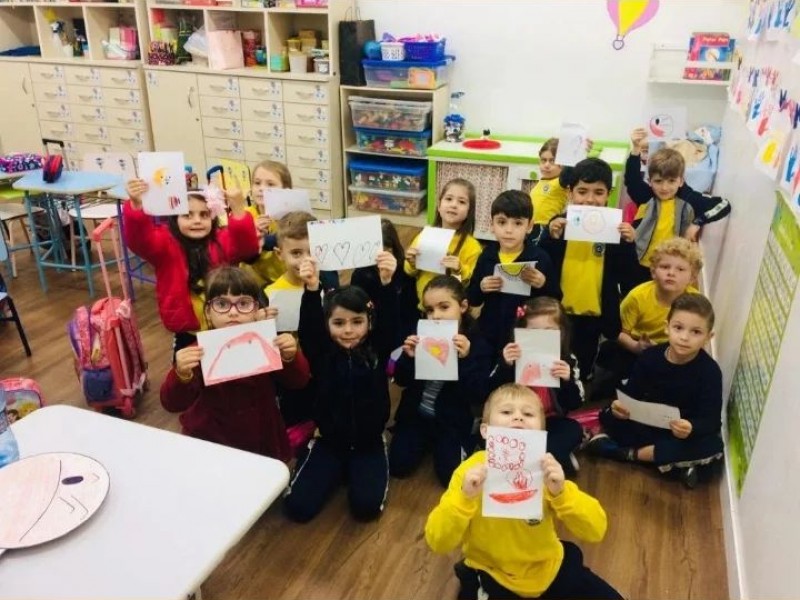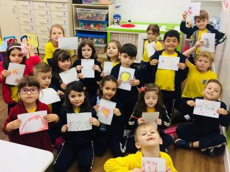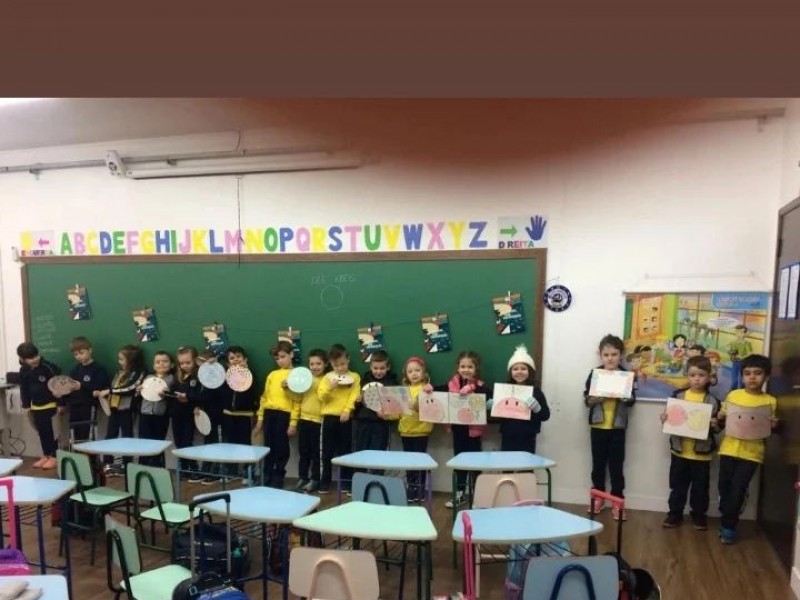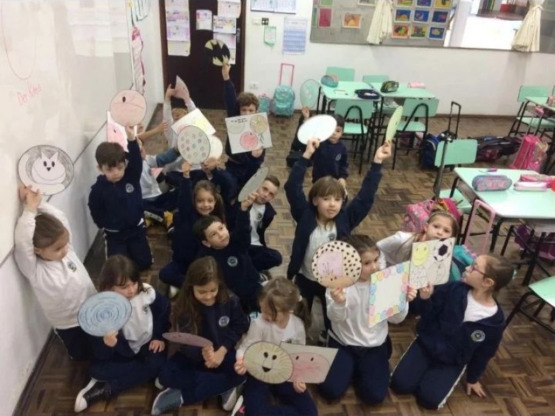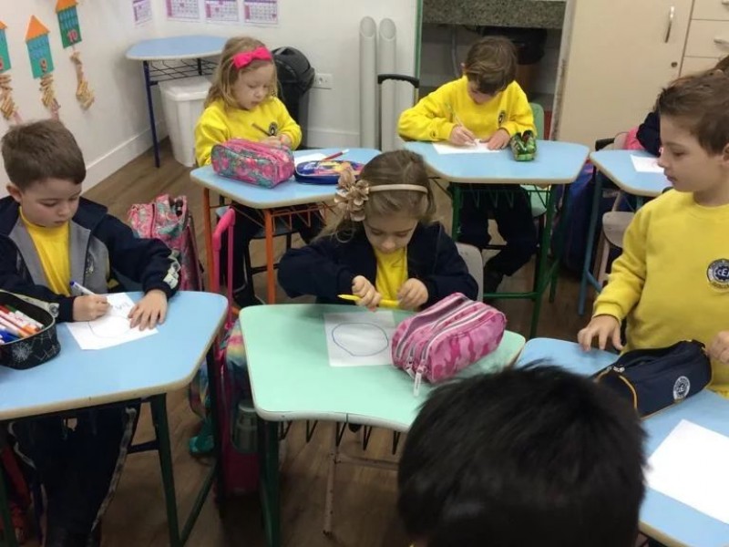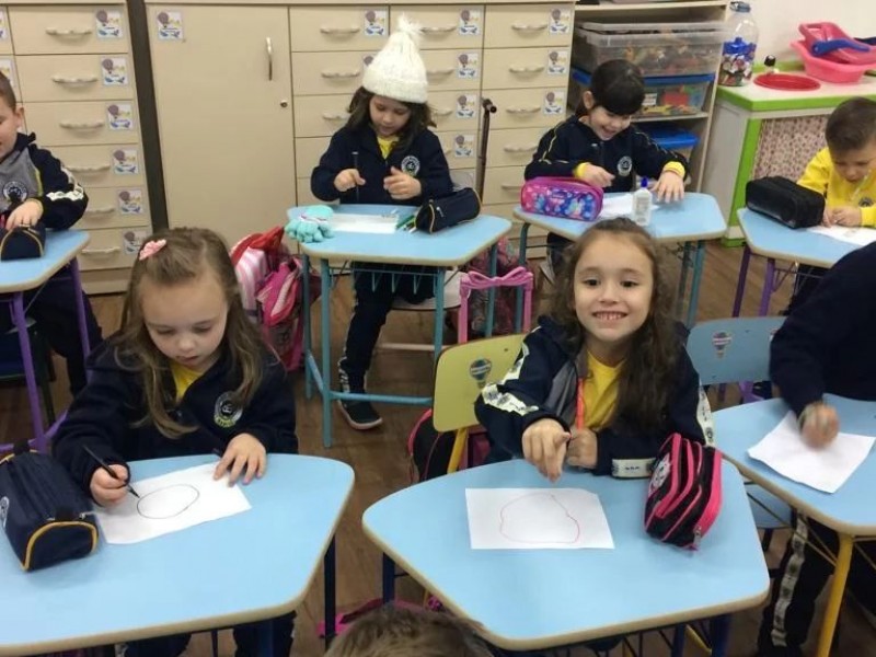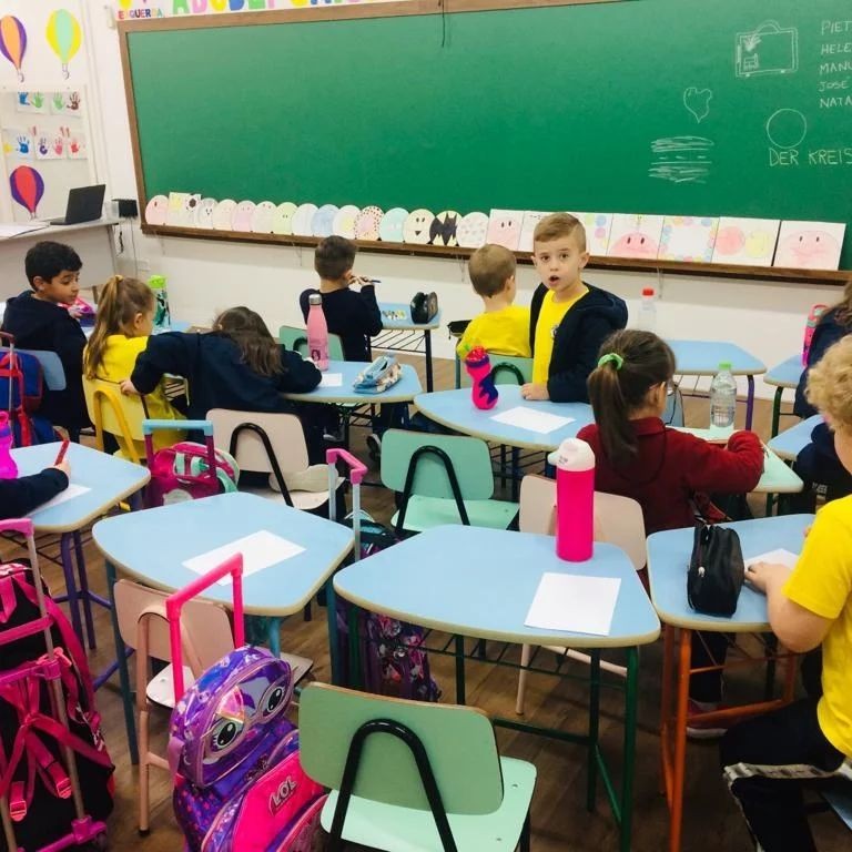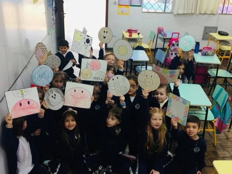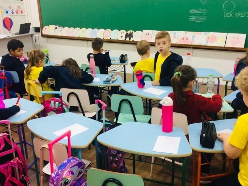 Mais notíciasA professora Fernanda Pellim realizou nas aulas de Alemão da Educação Infantil uma atividade de leitura do livro “Um redondo pode ser quadrado”, de Ziraldo. A leitura foi realizada em língua alemã e a história despertou a criatividade e curiosidade dos alunos, pois mostra as diversas possibilidades do uso do círculo e das formas geométricas estudadas. O objetivo da aula foi identificar e nomear as formas geométricas em língua alemã.