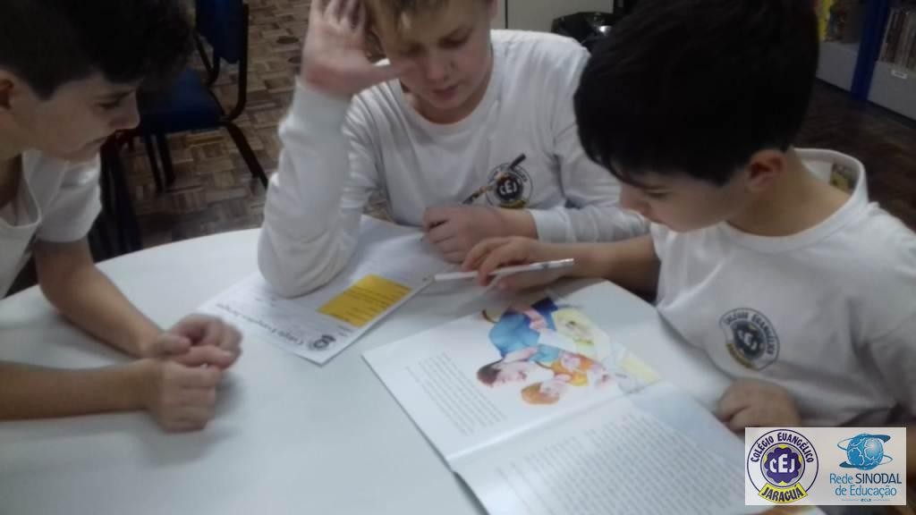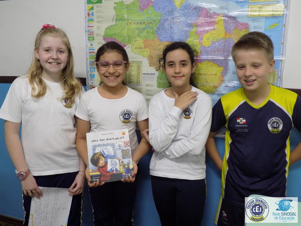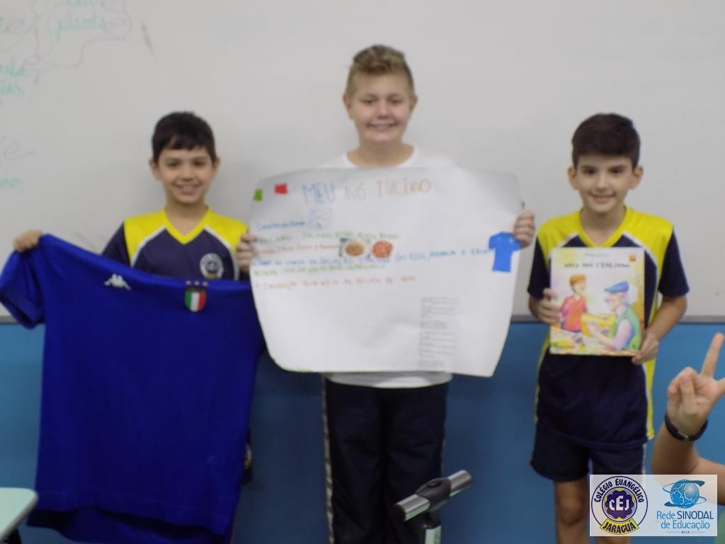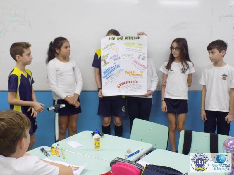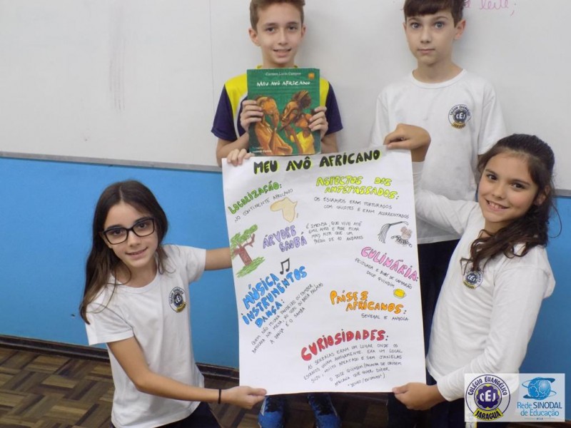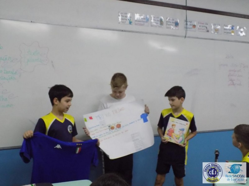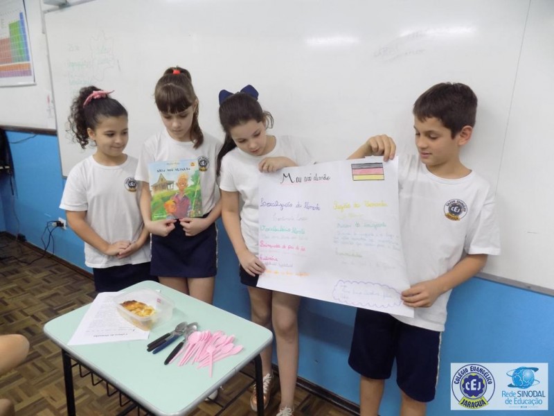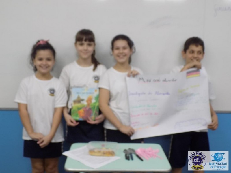 Buscando aprofundar este conteúdo os alunos foram instigados a realizar um trabalho em grupo a partir da coleção de livros infantis Imigrantes do Brasil, relacionando o trabalho realizado na disciplina de História com o enredo retratado em cada livro. Cada grupo sorteou um livro para leitura, posteriormente realizaram um roteiro com os fatos principais da história e, para finalizar, cada grupo escolheu uma forma criativa de fazer a apresentação do seu livro. Música, gastronomia, apresentação de power point, cartazes foram os recursos utilizados para trazer de uma forma diferenciada a compreensão da leitura realizada.