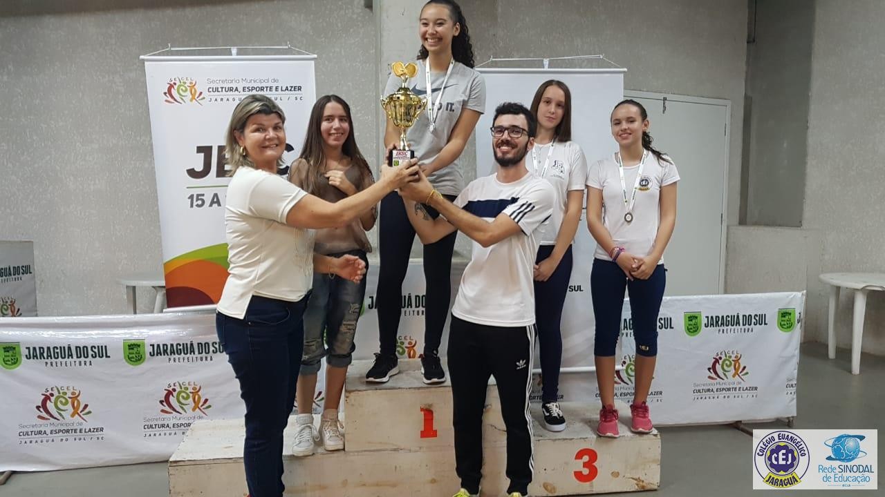 Mais notíciasA aluna Luise dos Santos Lescowicz do 9º ano C/EF conquistou título no tênis de mesa feminino, representado o Colégio Evangélico Jaraguá no JESC de 15 a 17 anos fase municipal, os jogos aconteceram no dia 24 de abril na Arena Jaraguá. Além do título da Luise o CEJ conquistou o 2º lugar no geral.