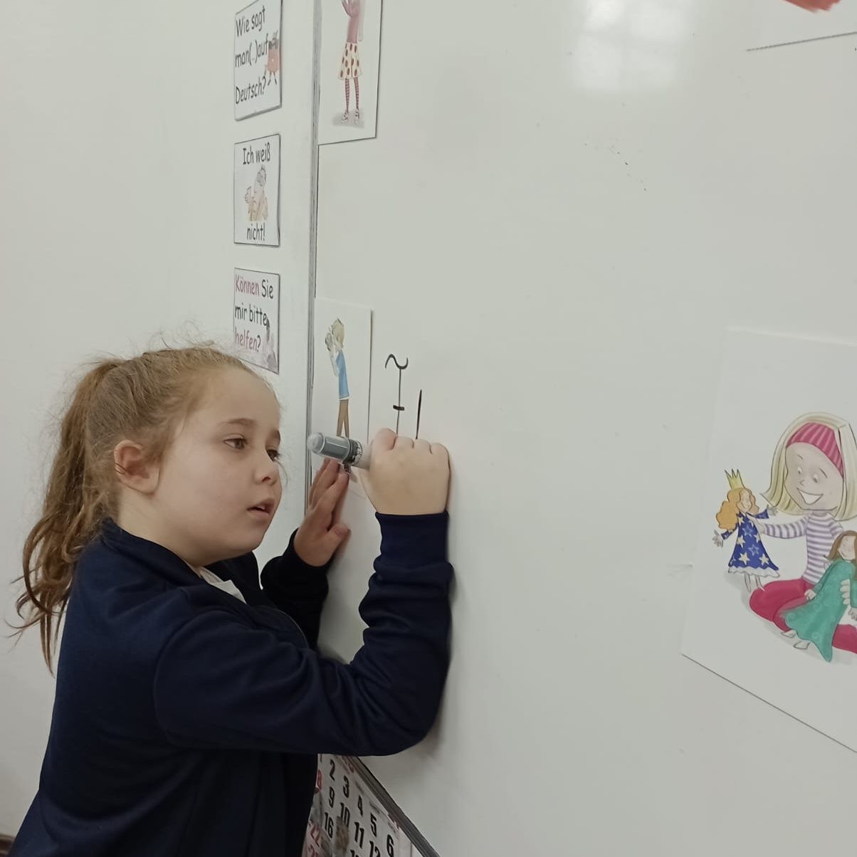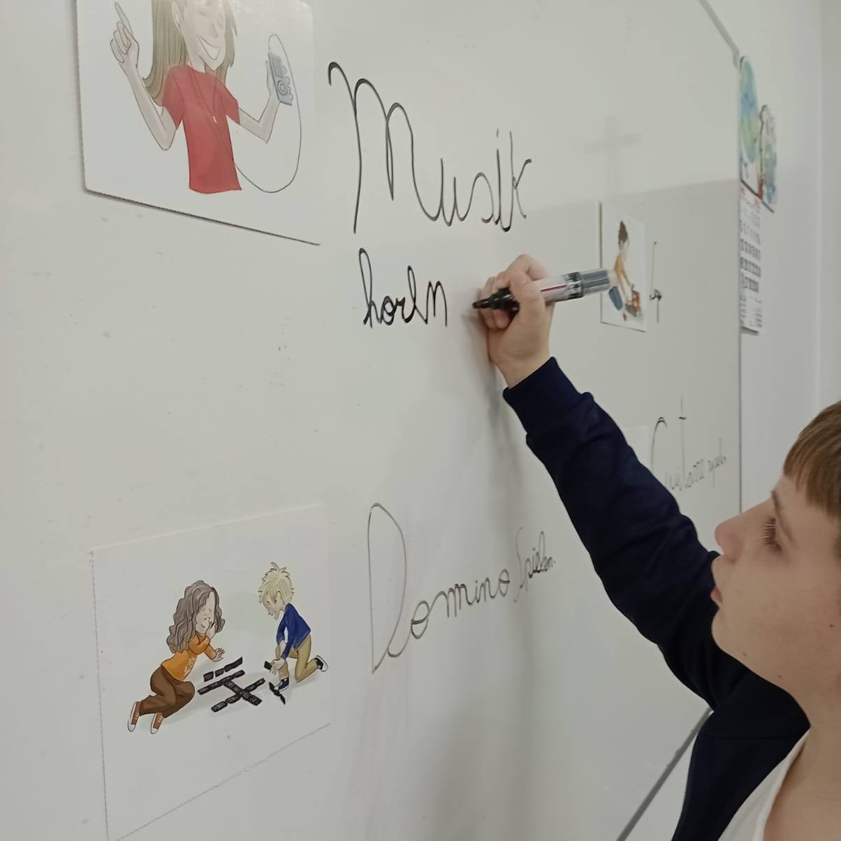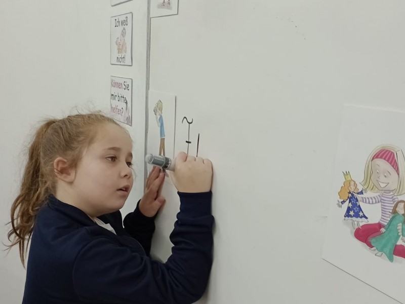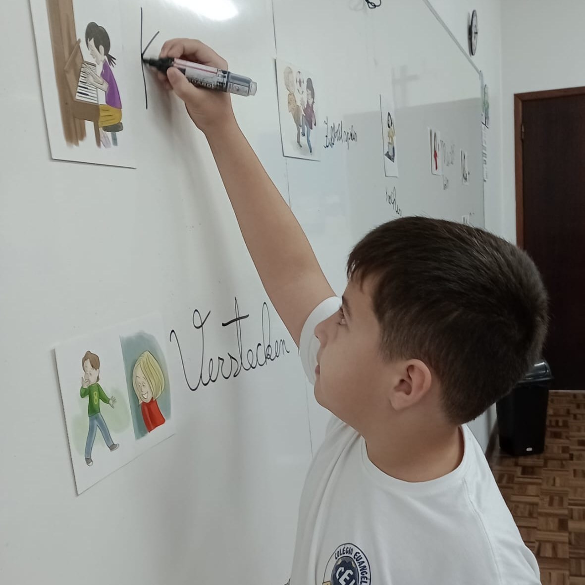 Mais notíciasOs alunos das turmas dos 3ª anos trabalharam nas aulas de Alemão, o vocabulário das palavras encontradas na lição "Meine Hobbys", praticando a escrita das mesmas no quadro juntamente com as cartelas.