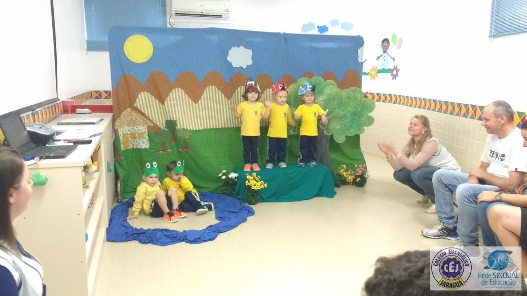 Os alunos do Infantil II A e B apresentaram um teatro musical para a Mostra de Trabalhos do segundo semestre. Os pais prestigiaram esse momento especial dos alunos e professores envolvidos.