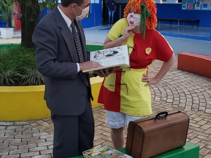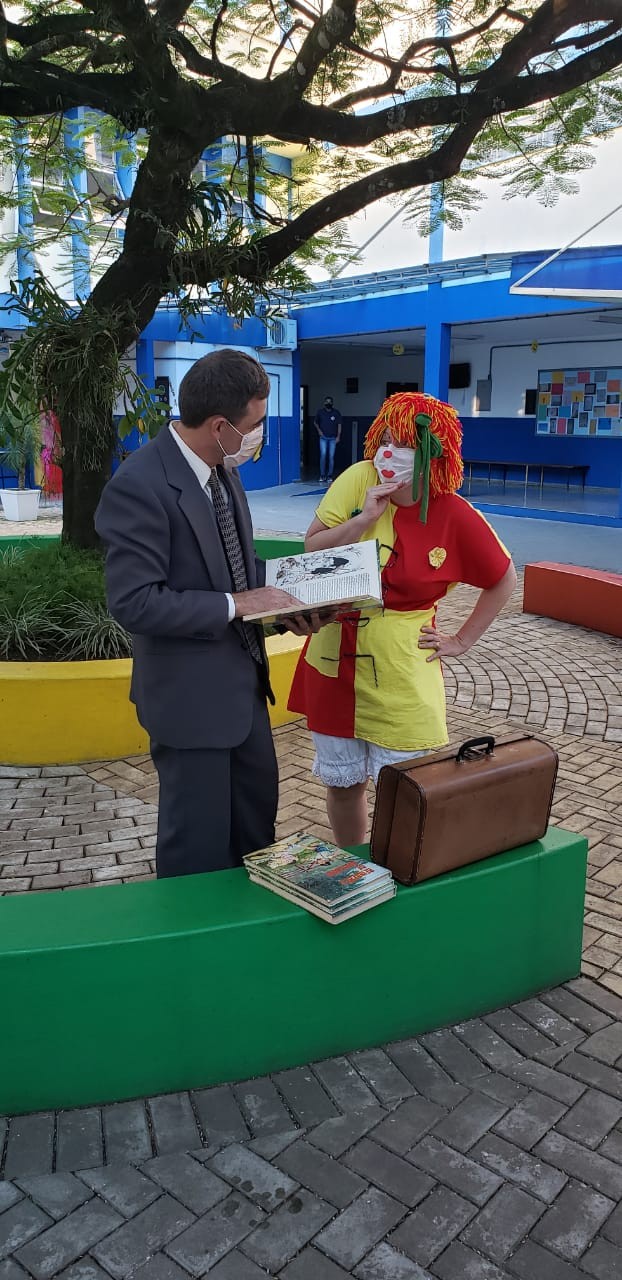 Mais notíciasOs alunos da Educação Infantil e Fundamental I, no dia 23 de abril, tiveram a visita especial da Emília e do Monteiro Lobato em comemoração ao Dia Nacional do Livro Infantil 18/04 e ao dia Mundial do Livro 23/04.