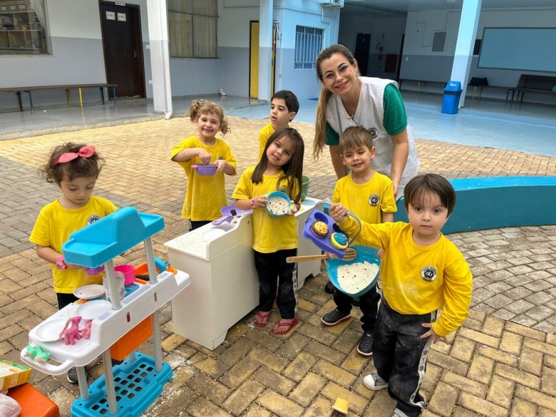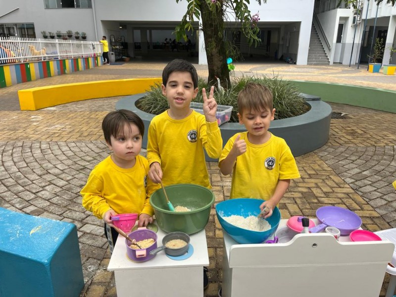 Mais notíciasCada criança teve a oportunidade de fazer seu prato favorito e oferecer aos colegas de forma imaginária. Assim despertamos a curiosidade de descobrir os nomes dos alimentos em inglês e os alunos vivenciaram um momento de diversão, curiosidade e interação entre os colegas de sala de aula, que promoveu aprendizado.