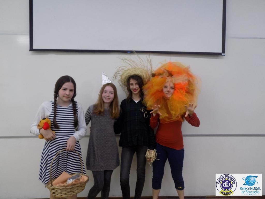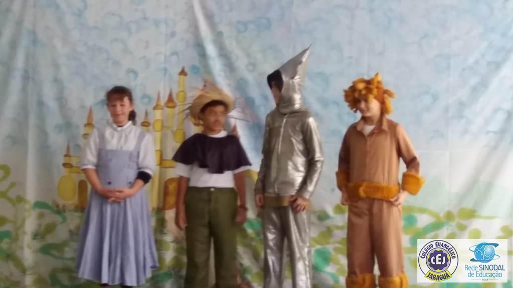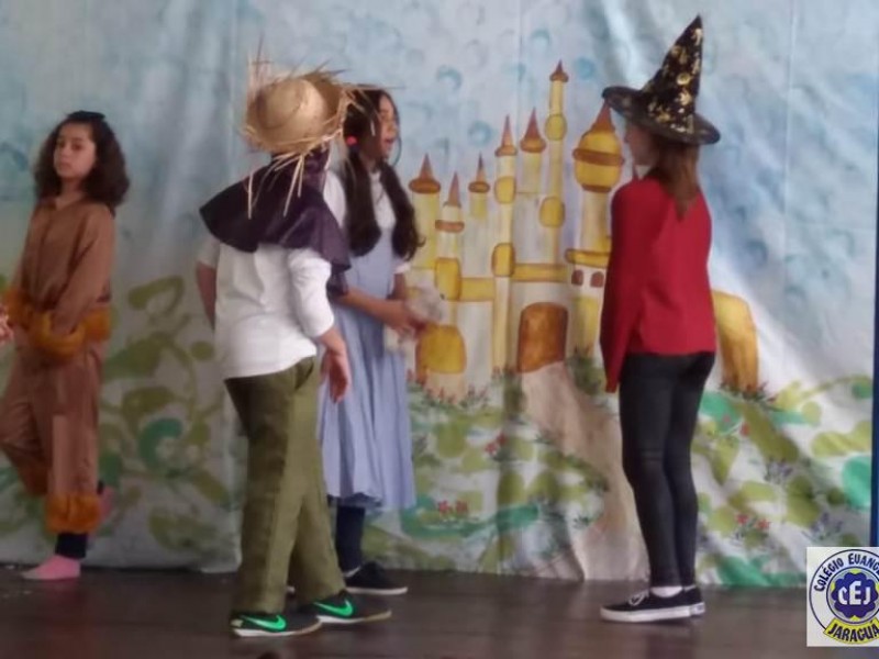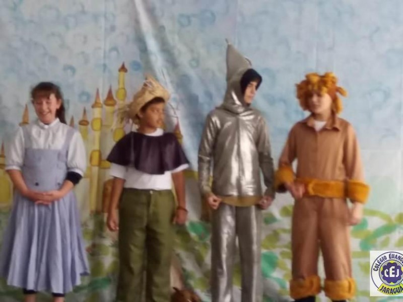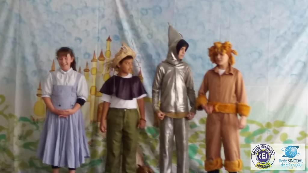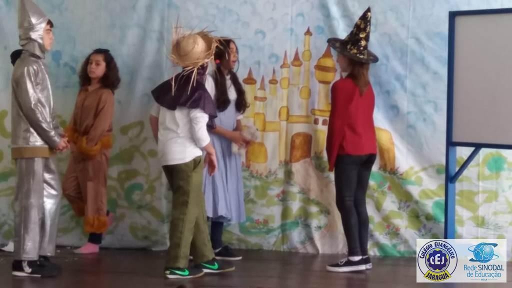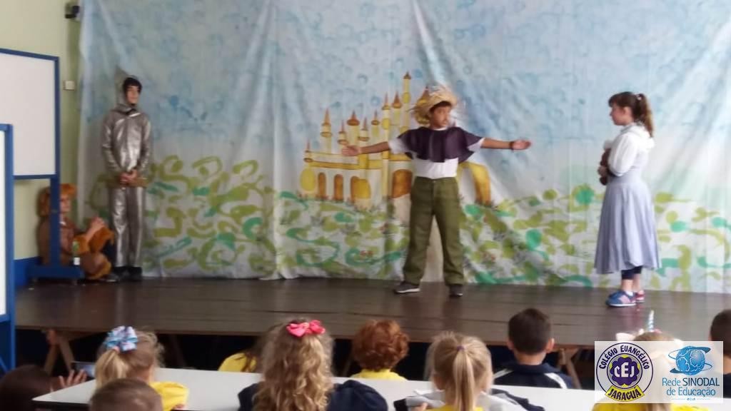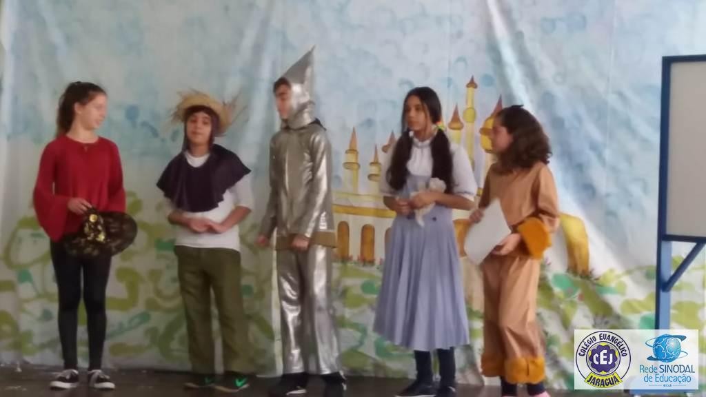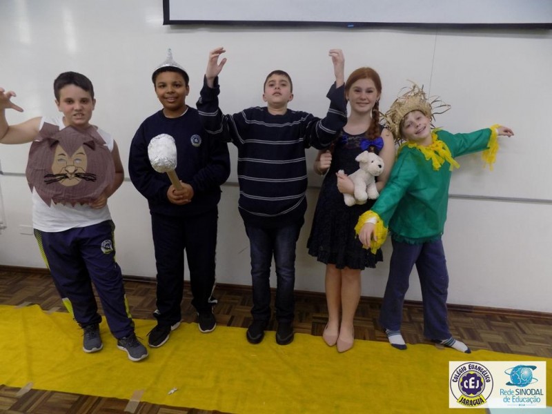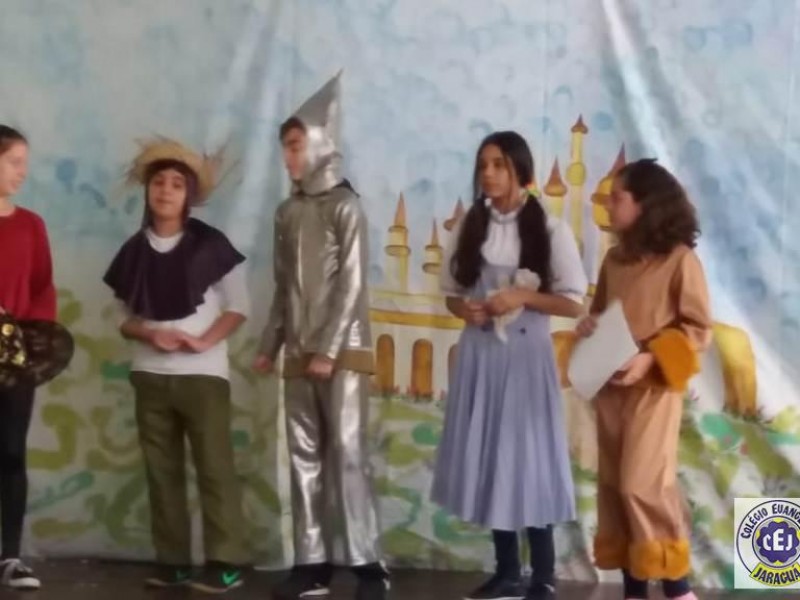 Mais notíciasAs turmas dos 6º anos, na disciplina de Língua Portuguesa apresentaram as dramatizações do livro “O mágico de Oz”, como parte do projeto de leitura. Os grupos exibiram fragmentos da obra de forma alegre e criativa. Após apresentação para a turma os grupos mostraram o seu talento para os alunos do Infantil II até o Infantil V.