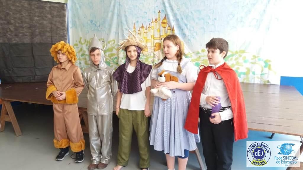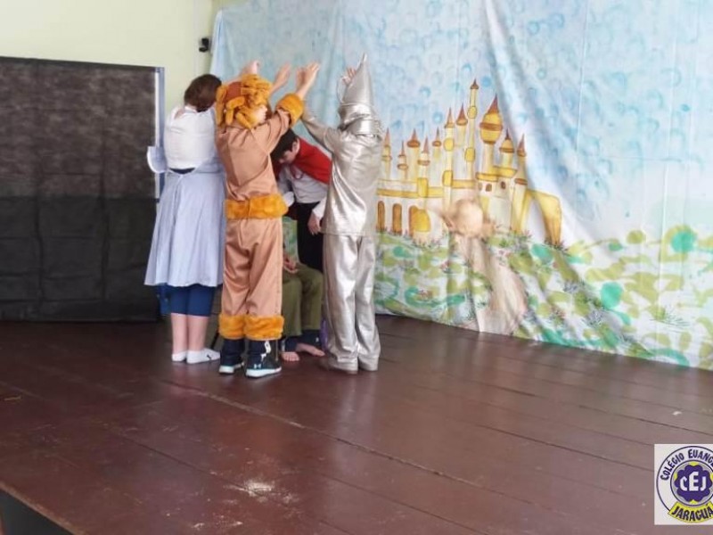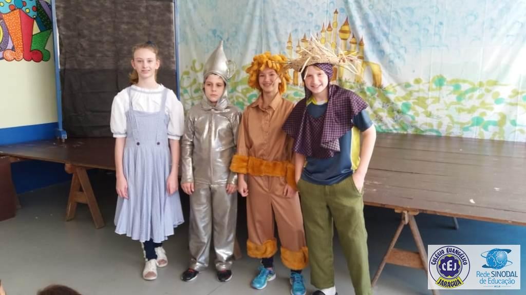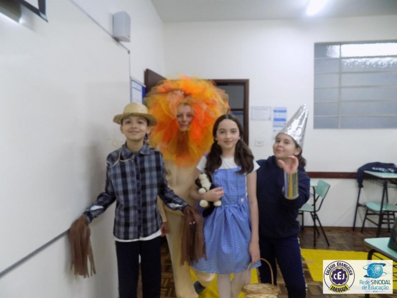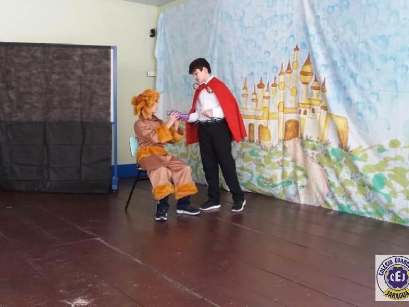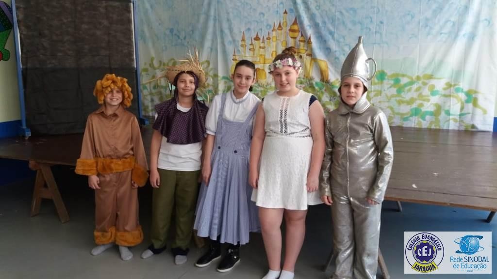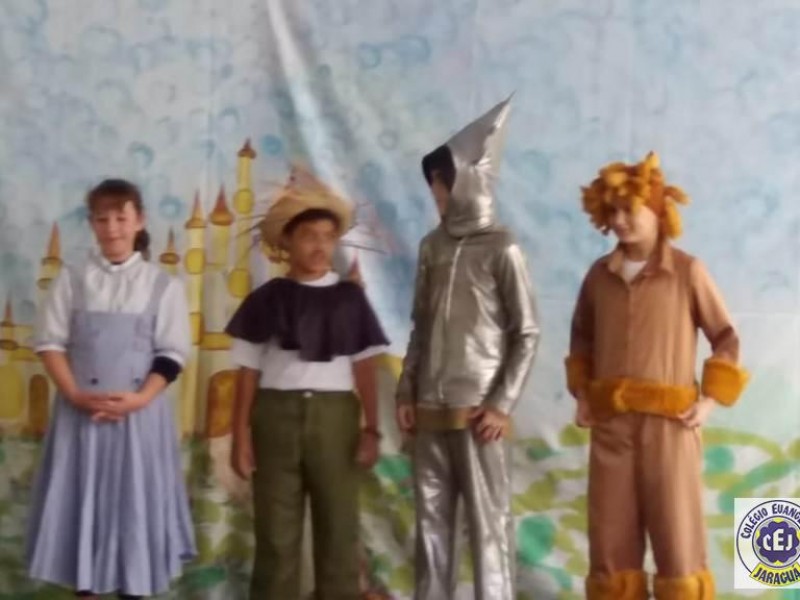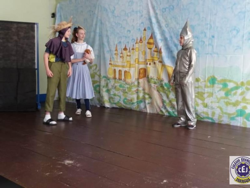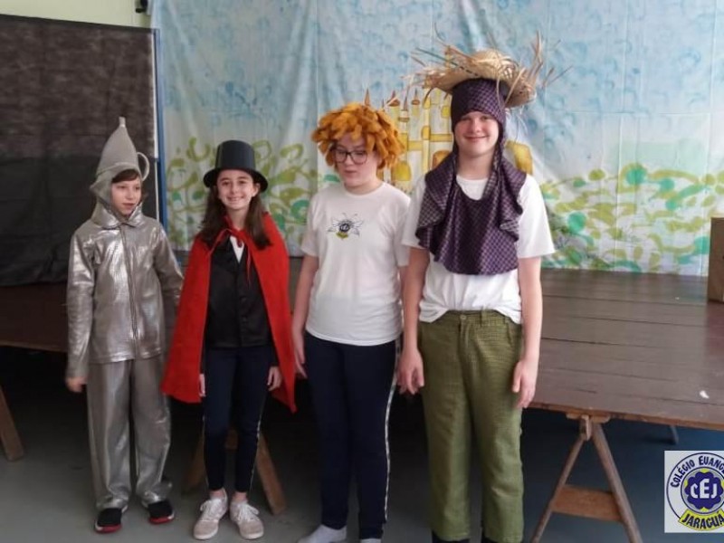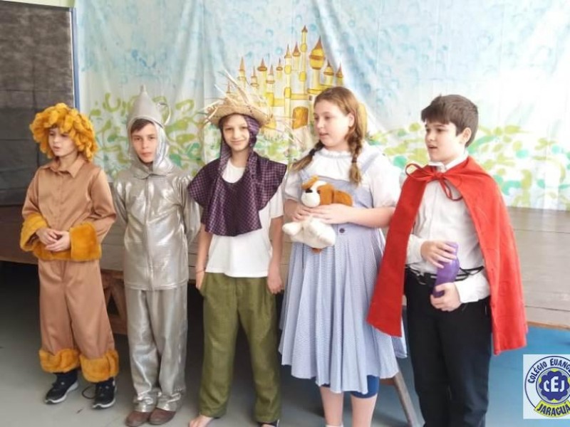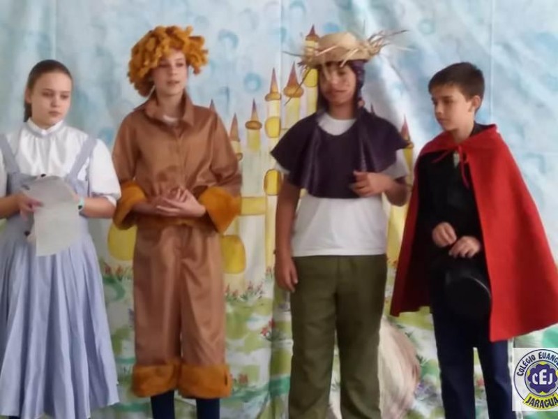Mais notíciasAs turmas dos 6º anos, na disciplina de Língua Portuguesa apresentaram as dramatizações do livro “O mágico de Oz”, como parte do projeto de leitura. Os grupos exibiram fragmentos da obra de forma alegre e criativa. Após apresentação para a turma os grupos mostraram o seu talento para os alunos do Infantil II até o Infantil V.