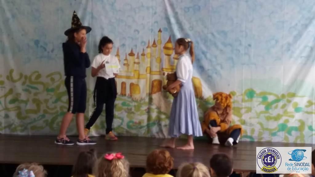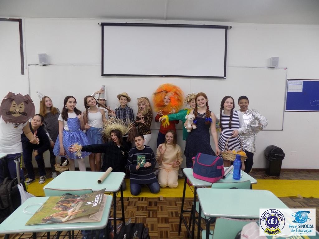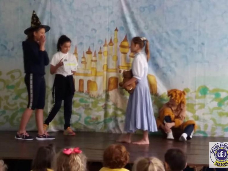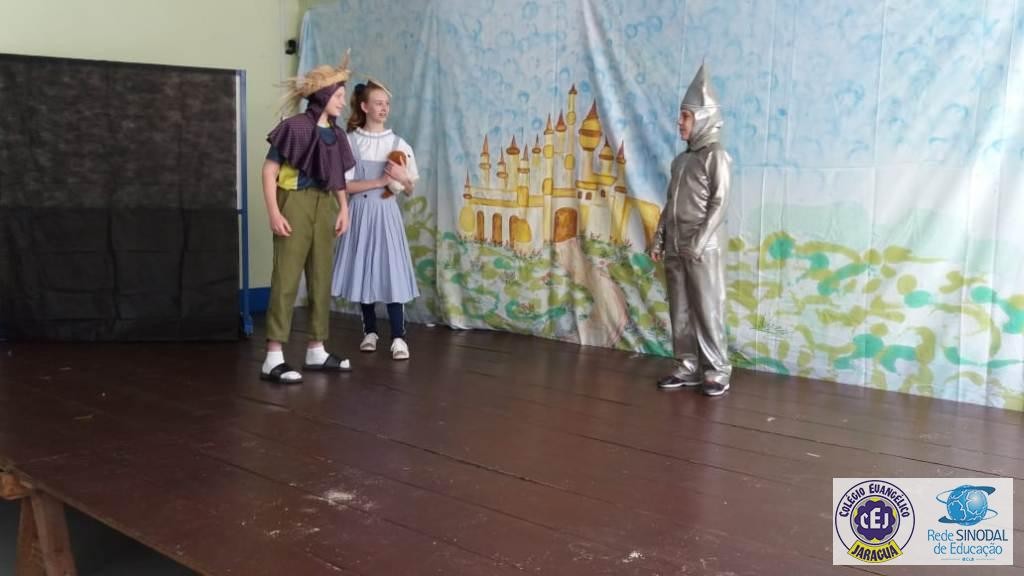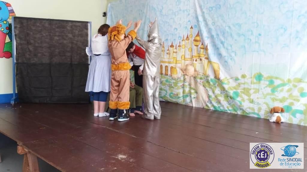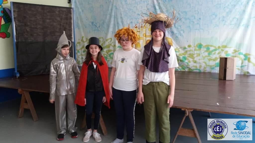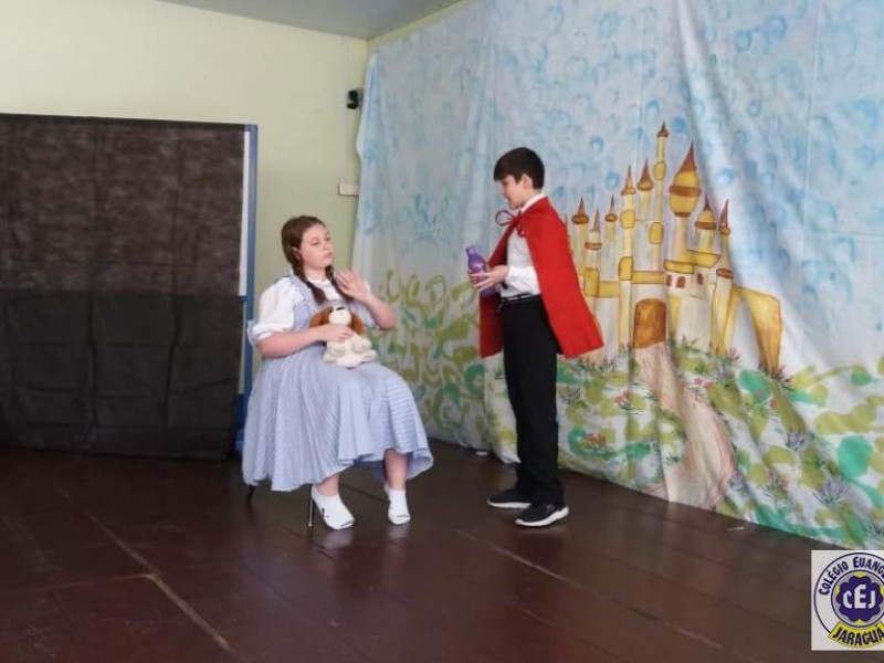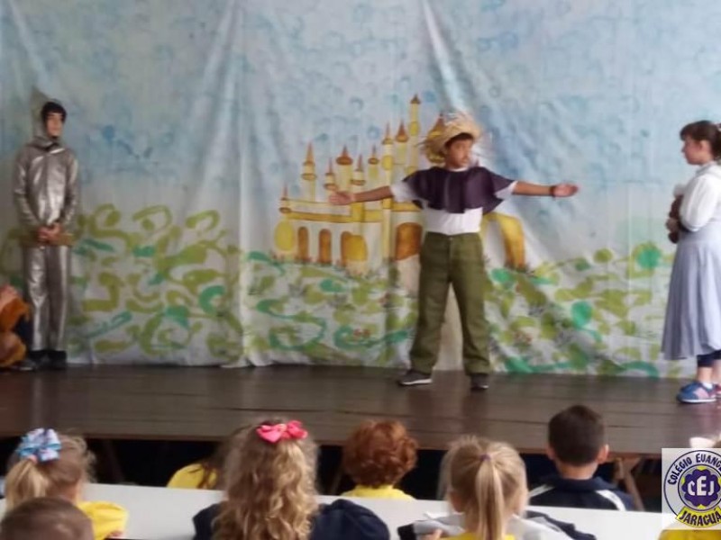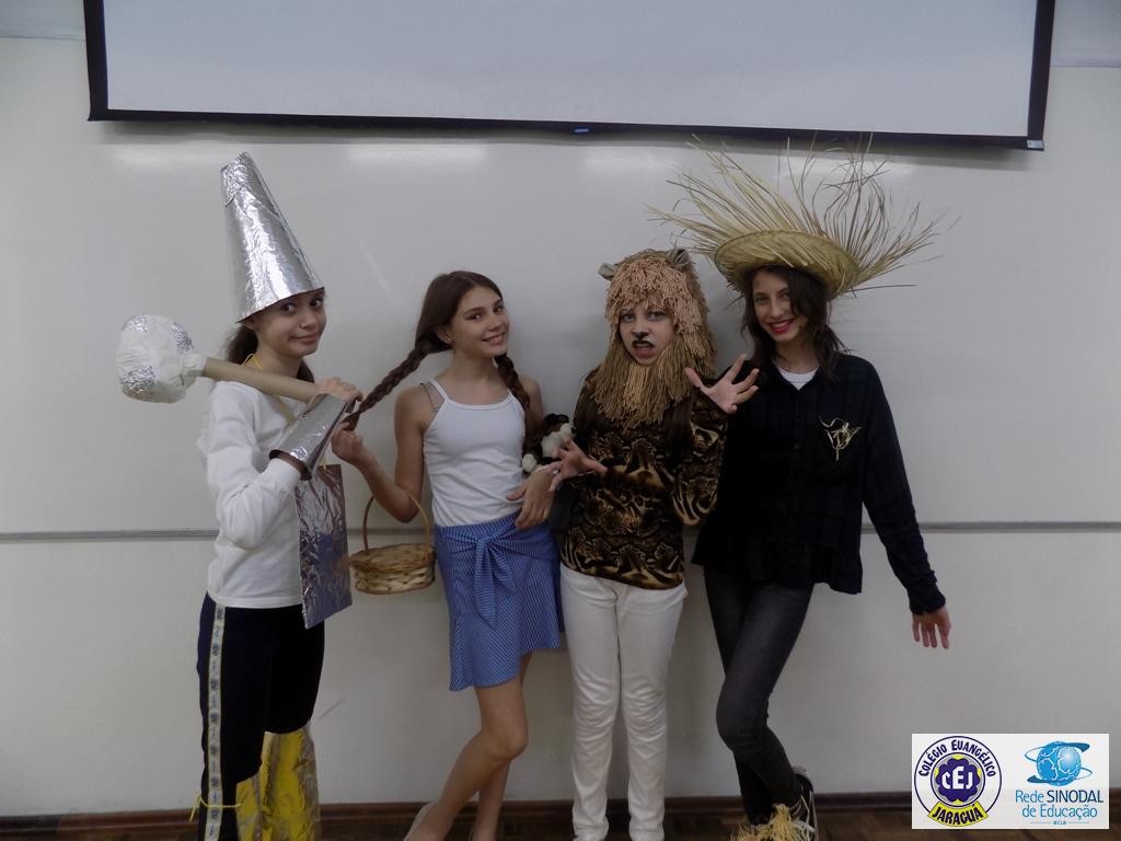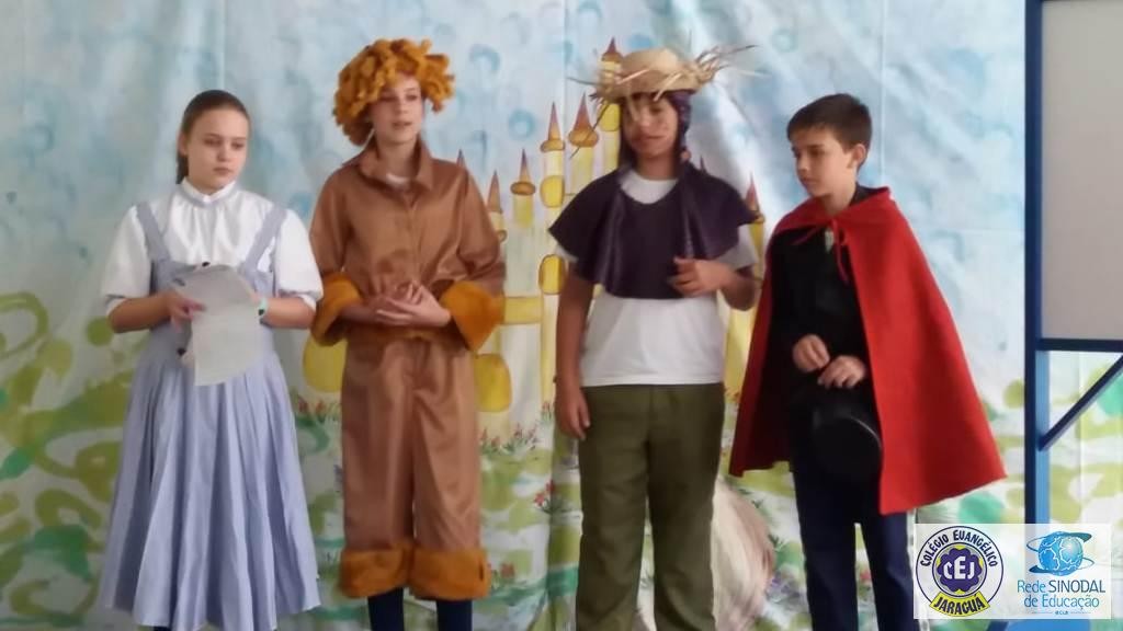 Mais notíciasAs turmas dos 6º anos, na disciplina de Língua Portuguesa apresentaram as dramatizações do livro “O mágico de Oz”, como parte do projeto de leitura. Os grupos exibiram fragmentos da obra de forma alegre e criativa. Após apresentação para a turma os grupos mostraram o seu talento para os alunos do Infantil II até o Infantil V.