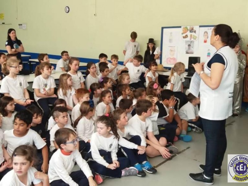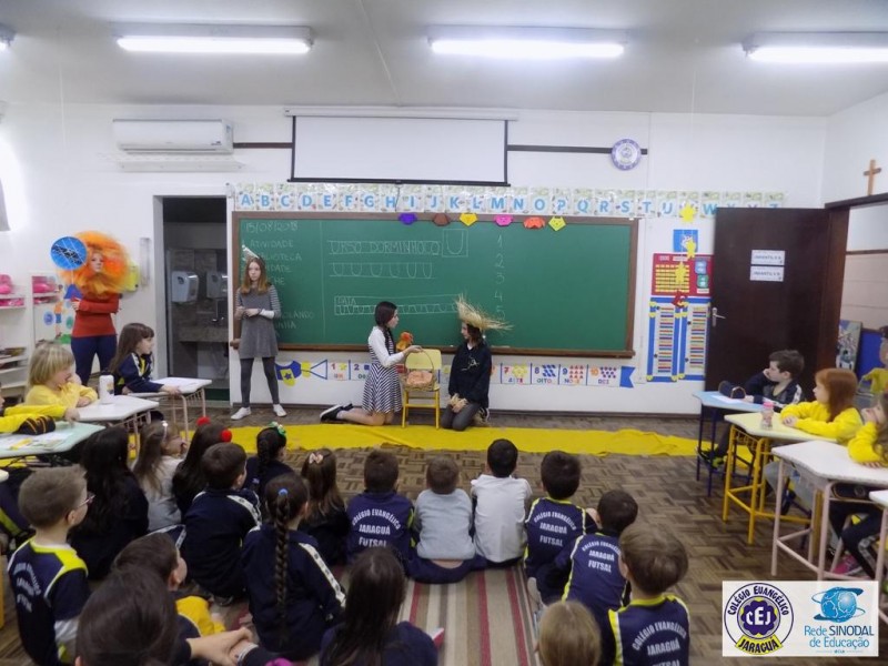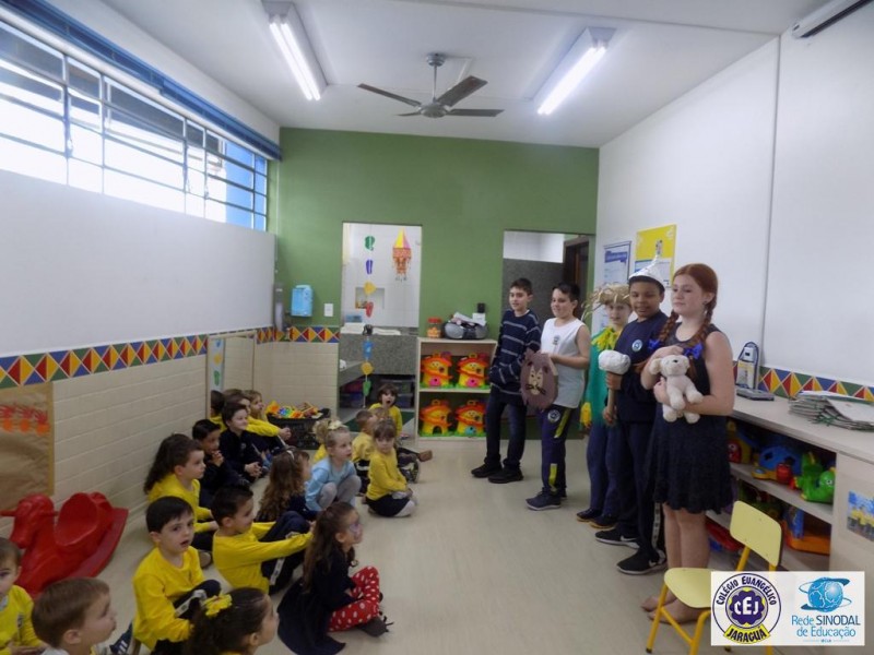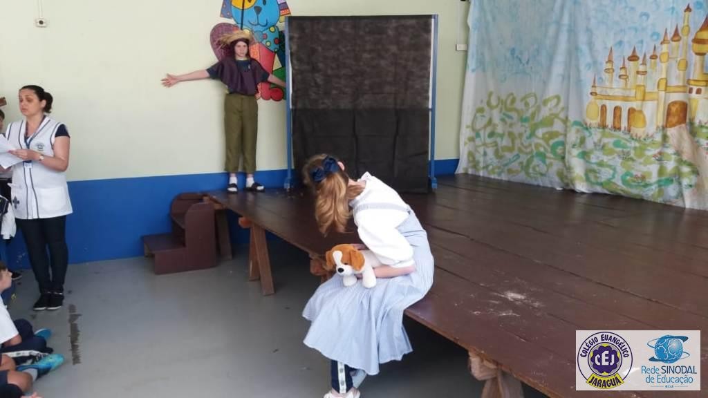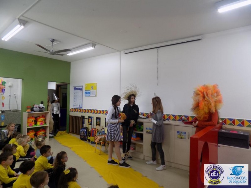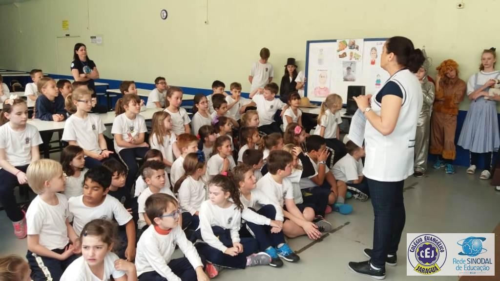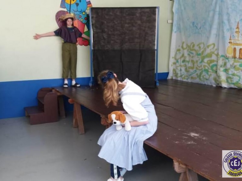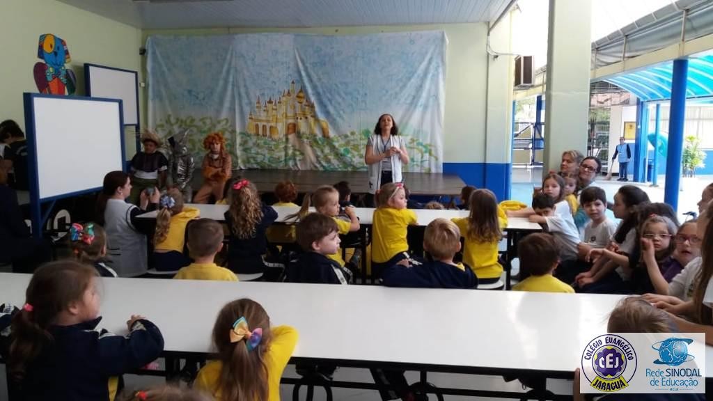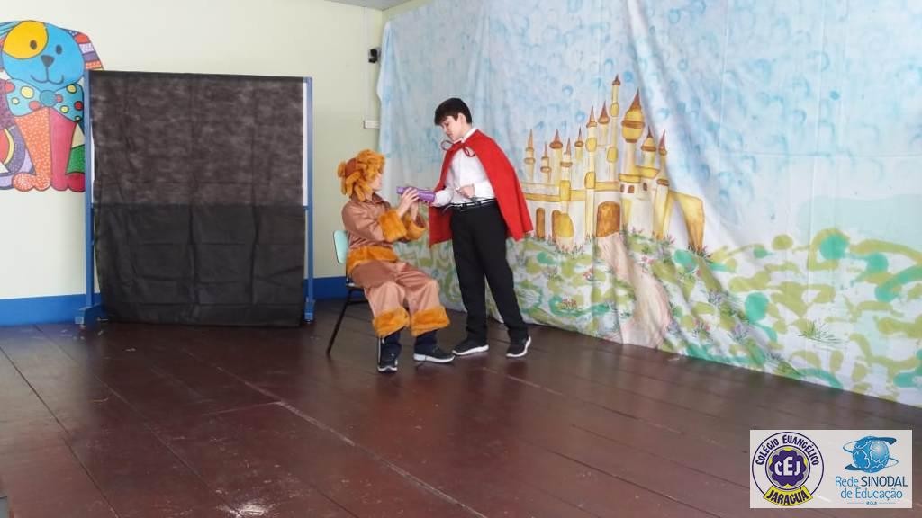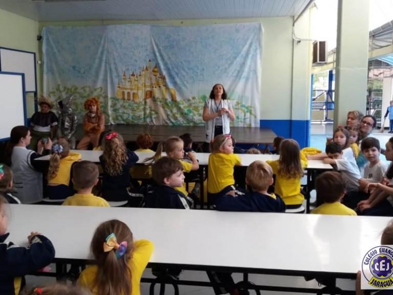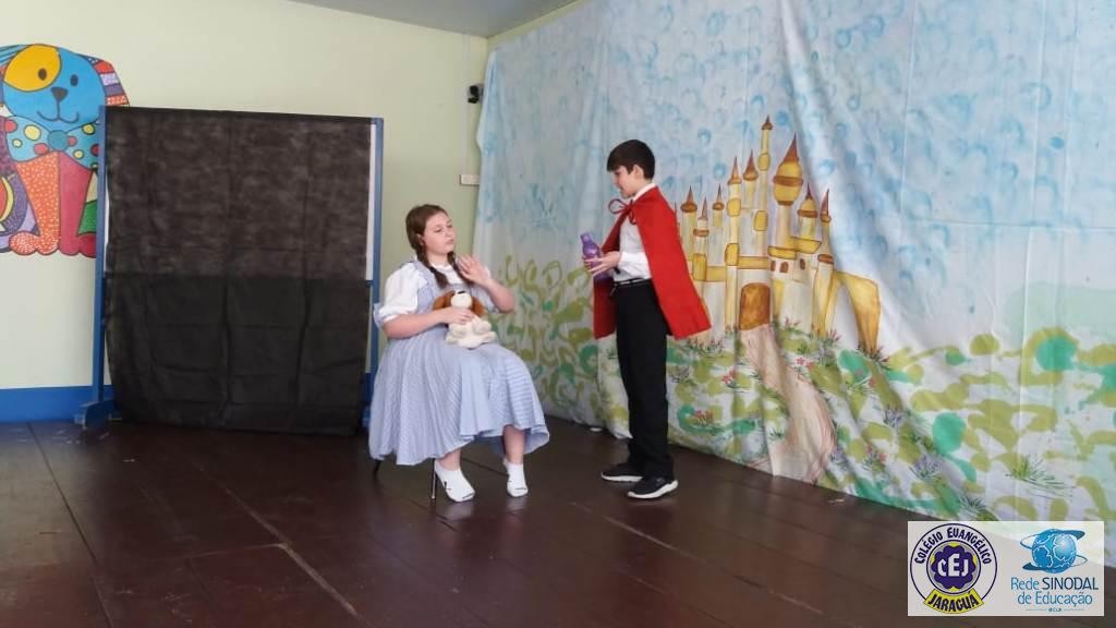 Mais notíciasAs turmas dos 6º anos, na disciplina de Língua Portuguesa apresentaram as dramatizações do livro “O mágico de Oz”, como parte do projeto de leitura. Os grupos exibiram fragmentos da obra de forma alegre e criativa. Após apresentação para a turma os grupos mostraram o seu talento para os alunos do Infantil II até o Infantil V.