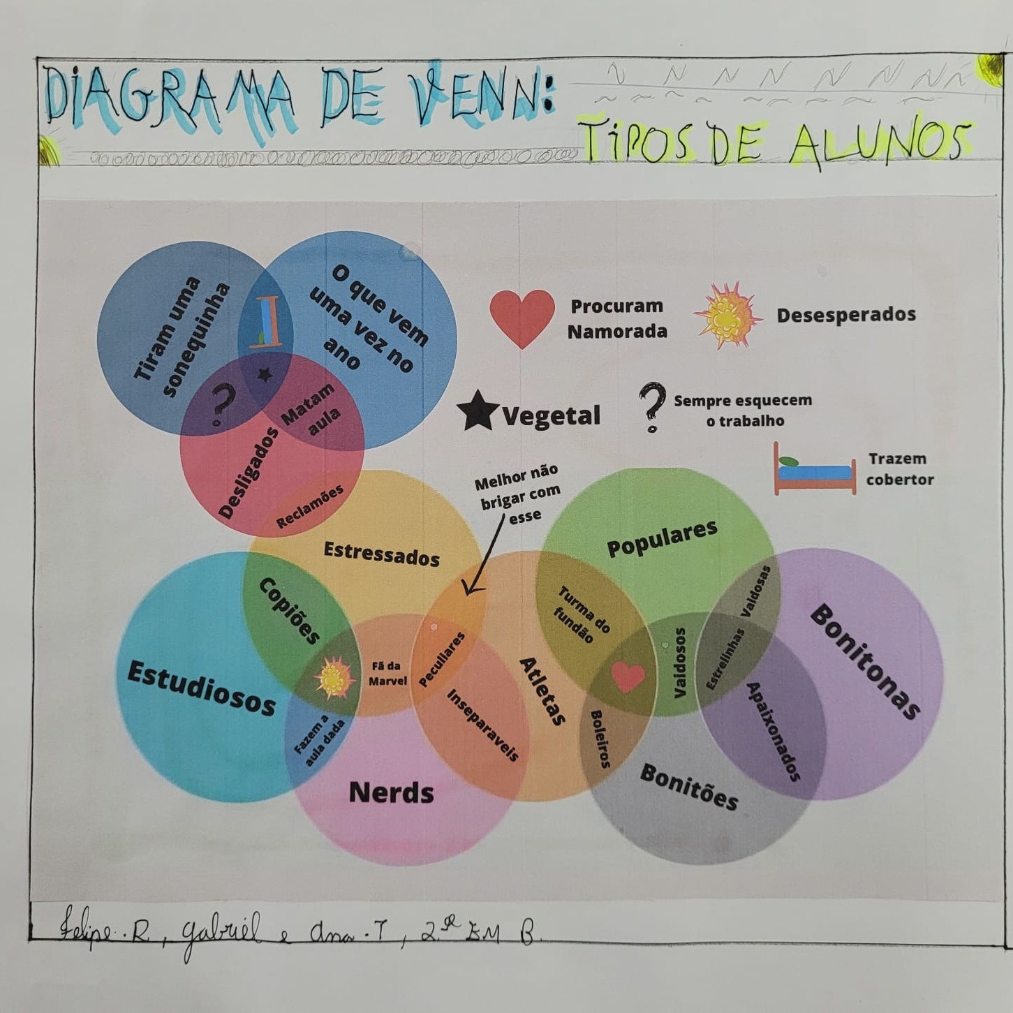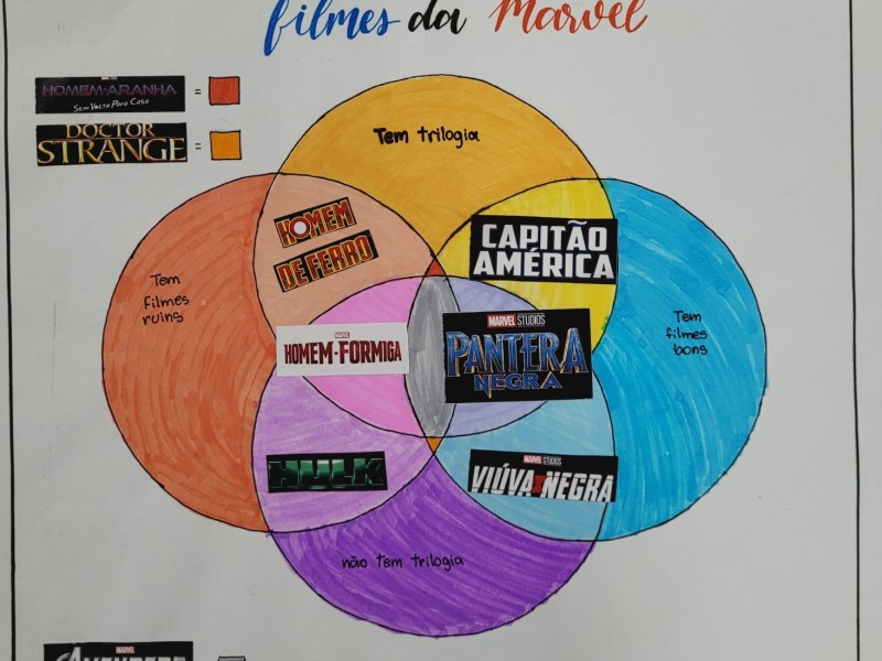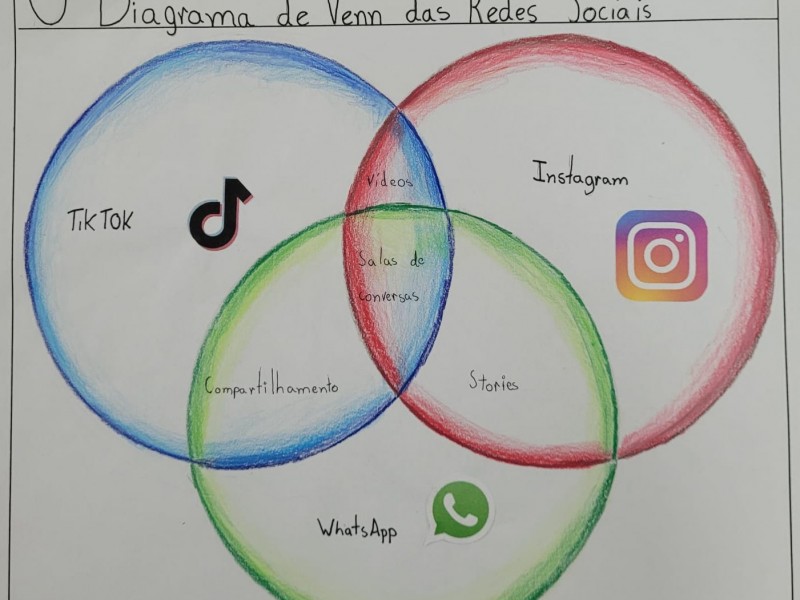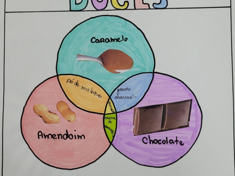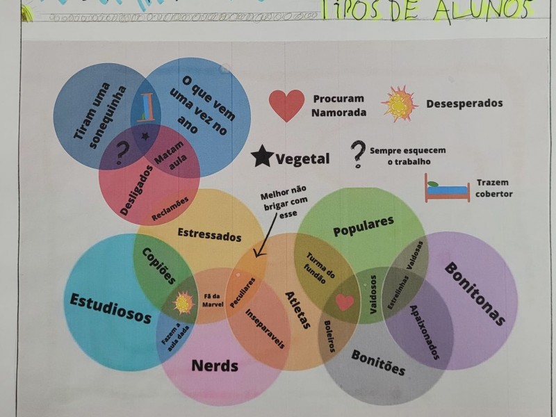 Em grupos, usando de conhecimento e criatividade, os alunos criaram vários diagramas de Venn.