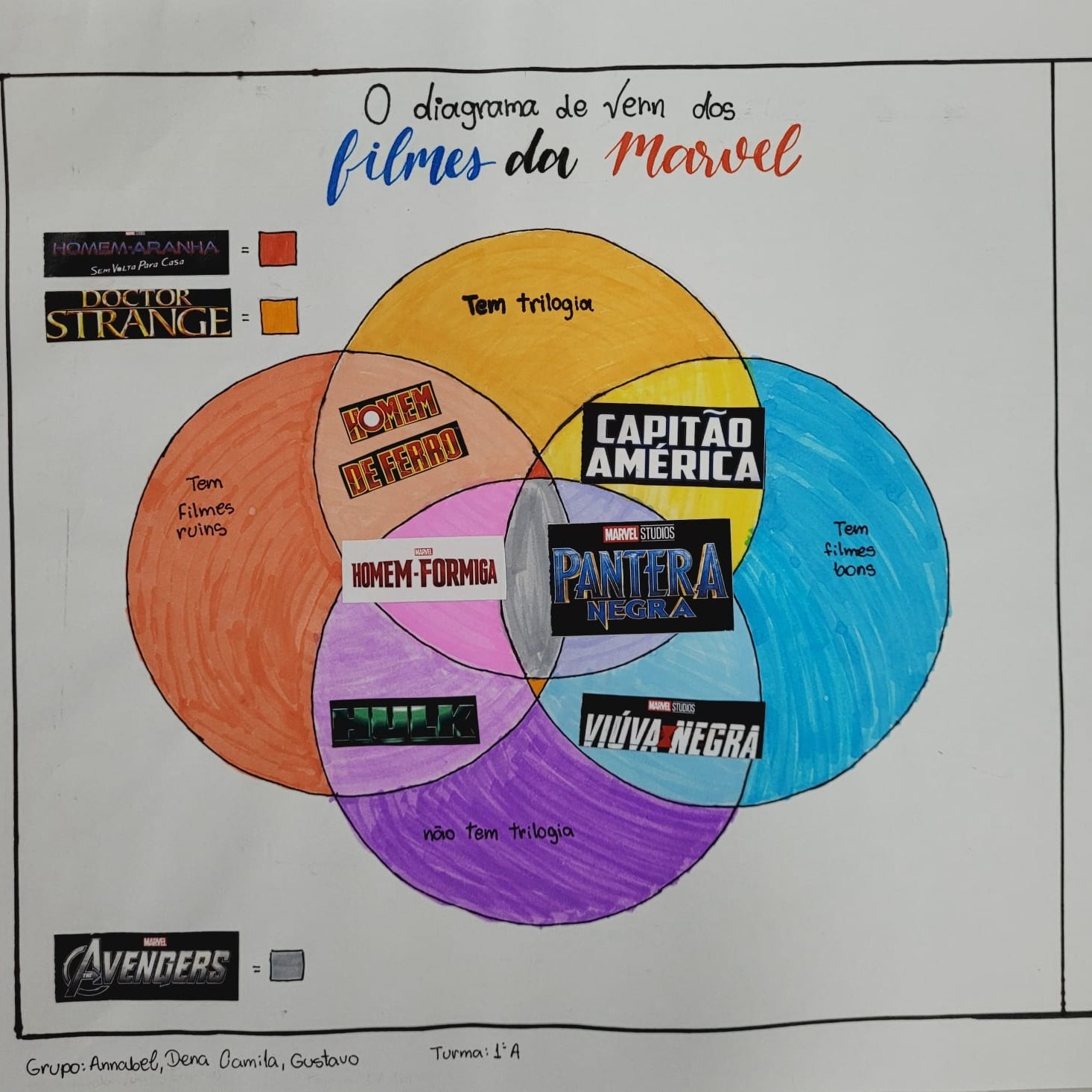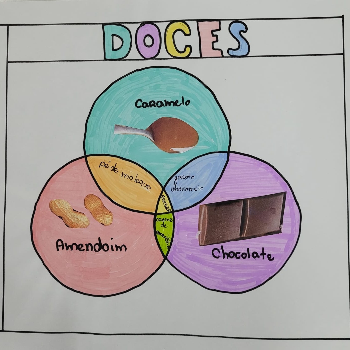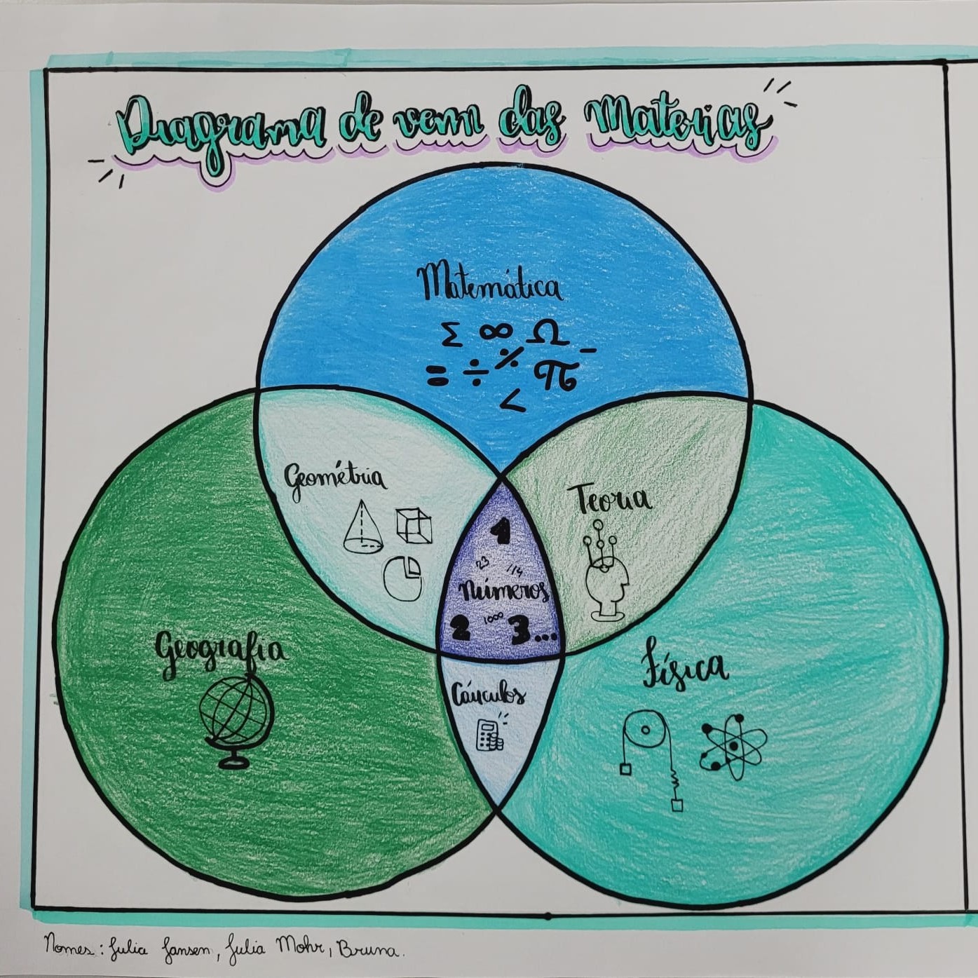Em grupos, usando de conhecimento e criatividade, os alunos criaram vários diagramas de Venn.
