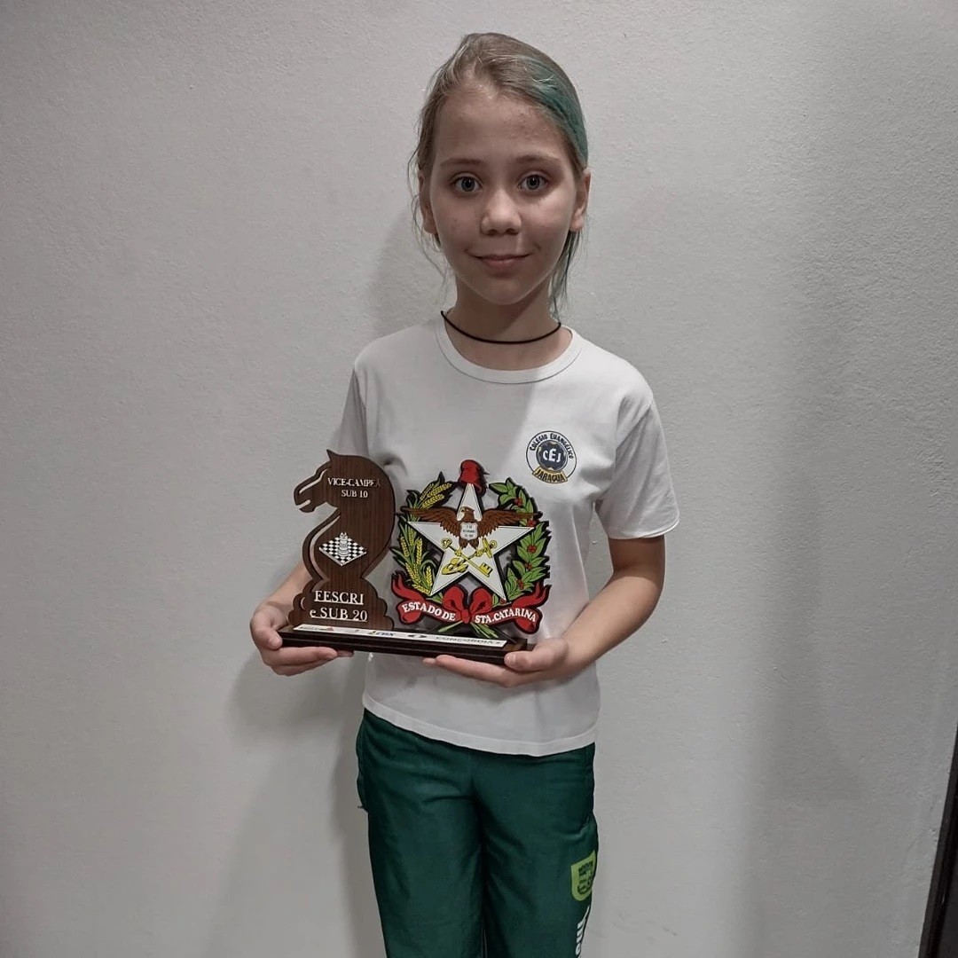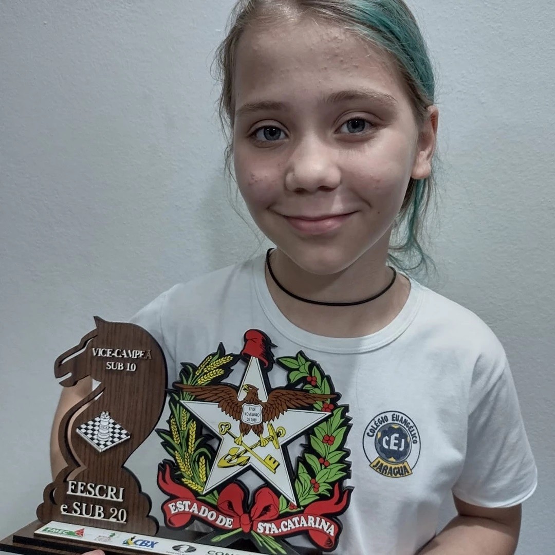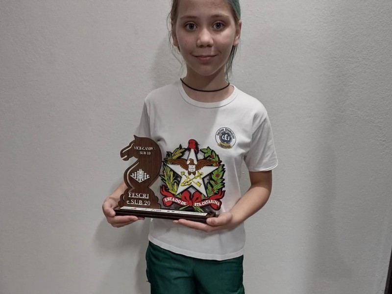 Mais notíciasA aluna Nicole Nunes conquistou o 2° lugar no Festival Catarinense da Criança - Fescri, campeonato que classifica os melhores enxadristas de cada estado para o campeonato brasileiro da categoria sub 10 anos.