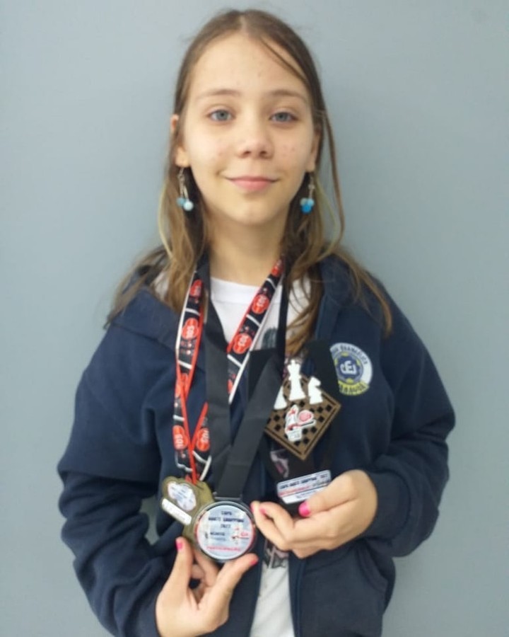 Mais notíciasNo dia 31/07/2022 a aluna Nicole Nunes após voltar da Olesc com 3 medalhas na bagagem, participou da etapa final do Circuito dos Reis na cidade de Blumenau e conquistou a medalha de 1° lugar e na somatória de pontos das 4 etapas ficou com o troféu de 3° lugar na categoria 11 anos.