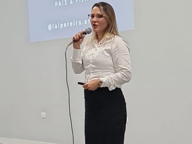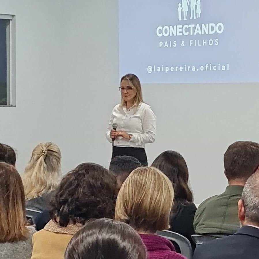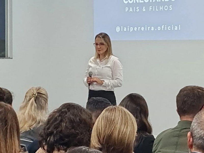 A palestra foi conduzida pela palestrante e escritora Lai Pereira, que abordou o tema: “Conectando pais e filhos”.