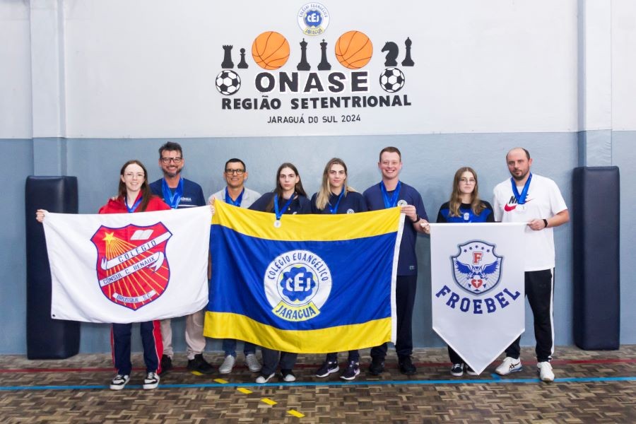 Mais notíciasAs modalidades foram Futsal Masculino categoria sub 13 e sub 15, Basquete Feminino categoria sub 15, Xadrez masculino e feminino categoria sub 13, sub 15 e sub 18. Participaram as escolas: Colégio Bonja de Joinville, Colégio Cônsul Carlos Renaux de Brusque, Colégio Doutor Blumenau de Pomerode, Colégio Froebel de São Bento do Sul, Escola Barão do Rio Branco de Blumenau, Colégio Ruy Barbosa de Rio do Sul, e o anfitrião Colégio Evangélico Jaraguá.
