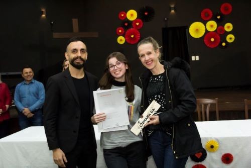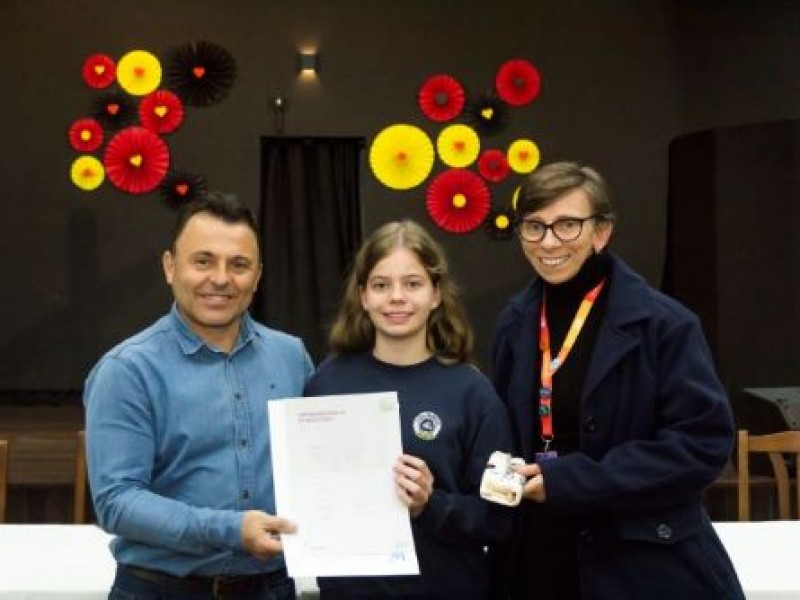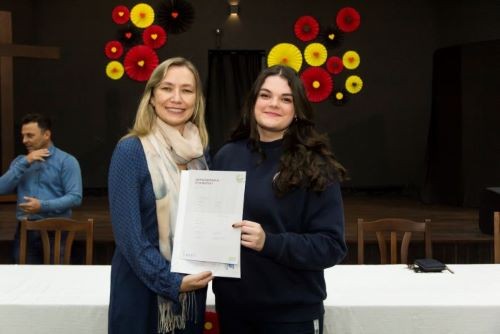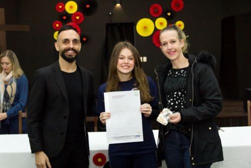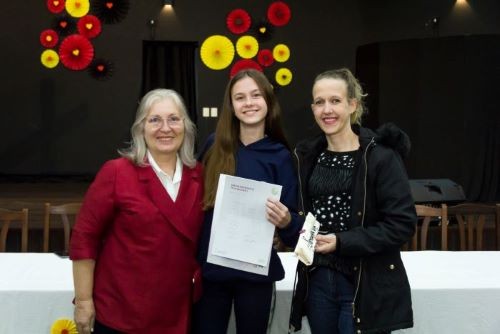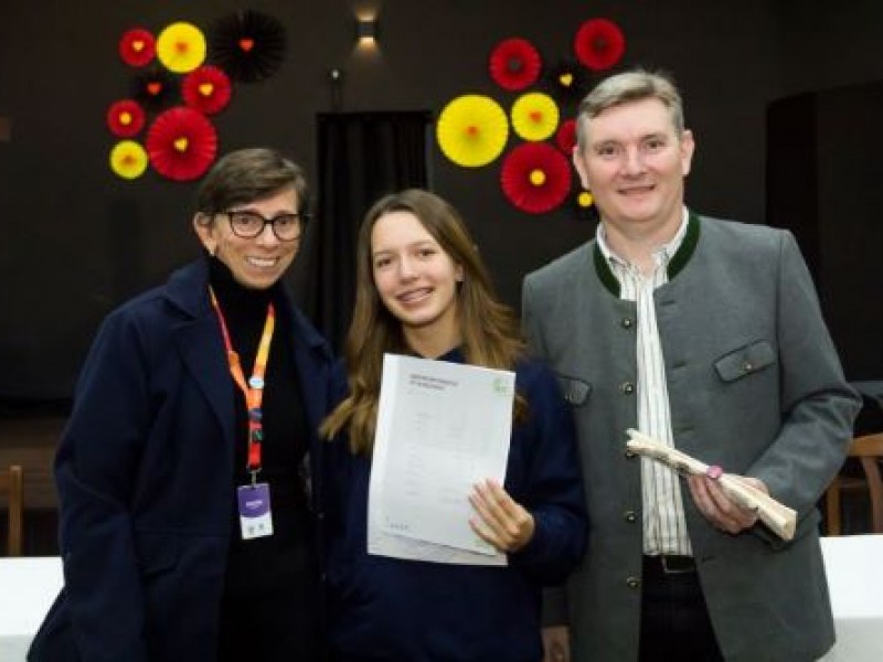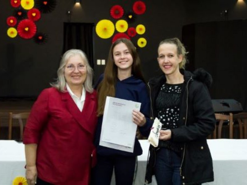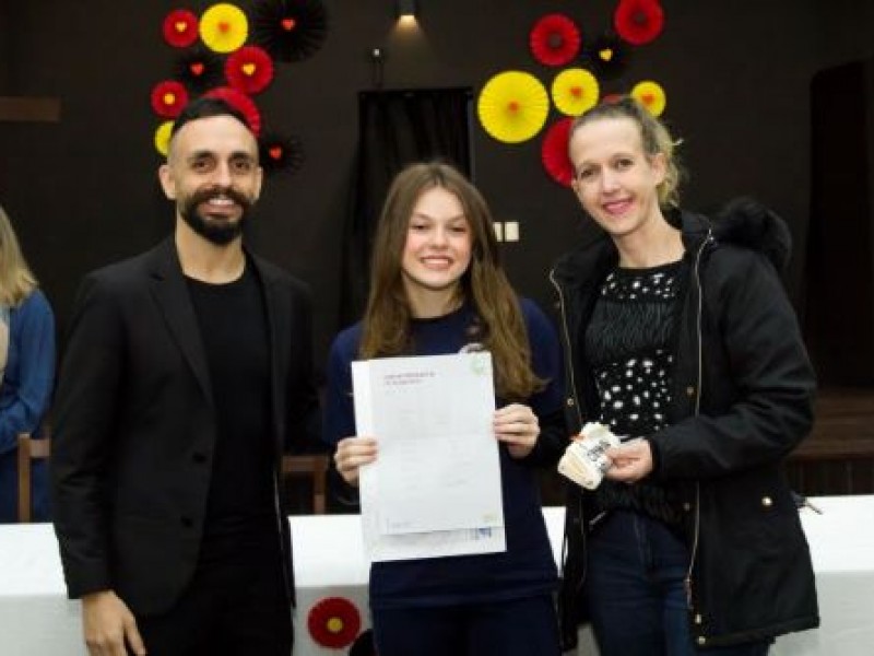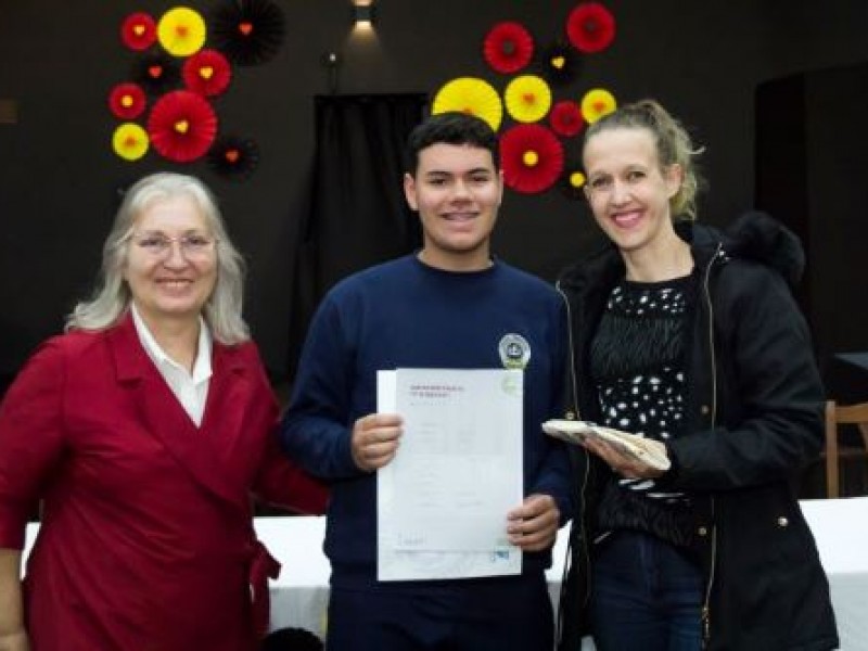 Além das certificações, o evento foi animado por um grupo de cantores e pelos alunos do 4º ano do Fundamental I, tornando a noite ainda mais especial. Ex-alunos compartilharam suas experiências e trajetórias profissionais, enquanto as intercambistas Julia Decker e Letícia Bartel contaram sobre seu aprimoramento na Alemanha em 2023.