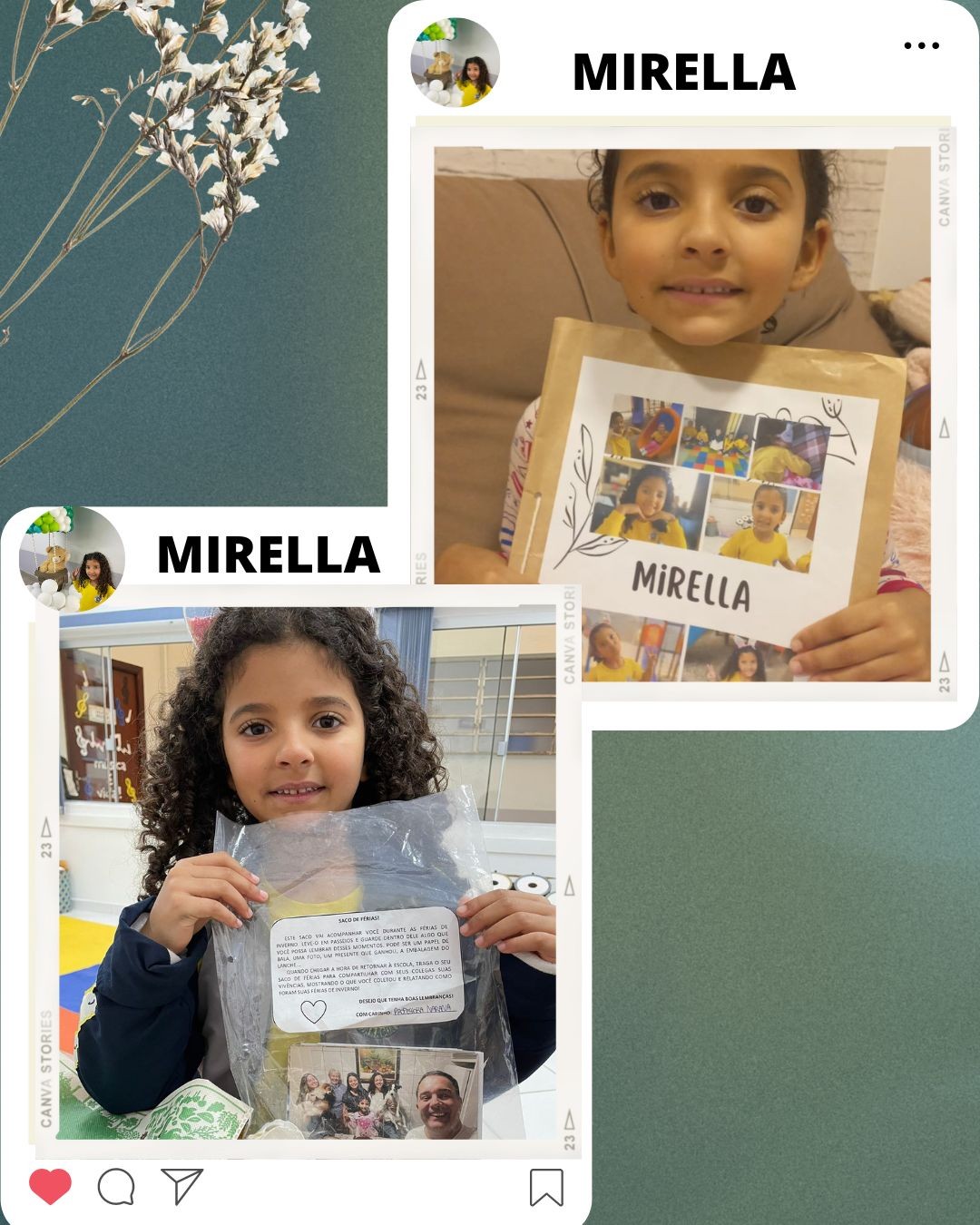 Mais notíciasDentro da mesma havia um ‘’saco de férias’’ com o objetivo de acompanhar as crianças nas férias de inverno, a fim de guardar neste saco fotos, embalagens e objetos dos momentos mais significativos.