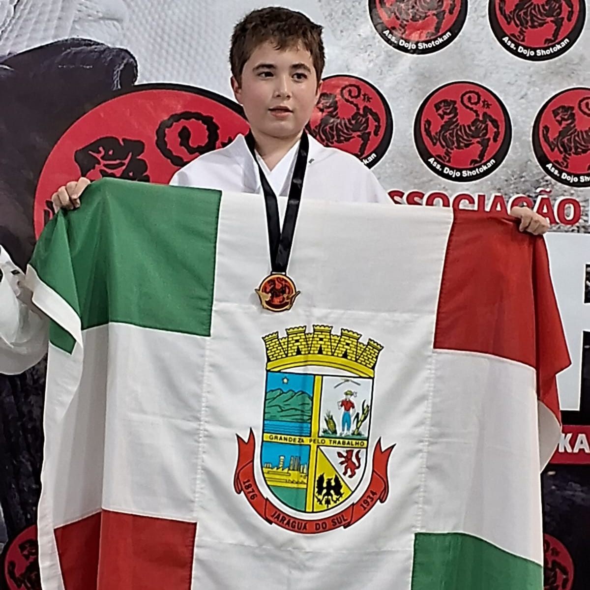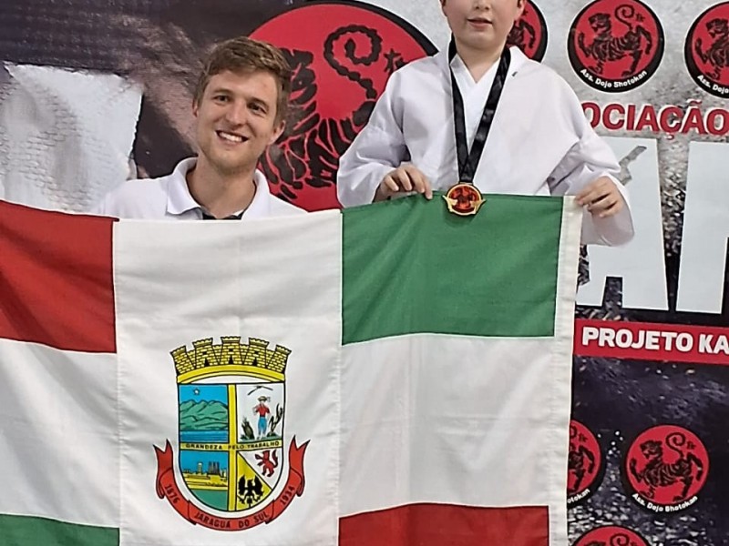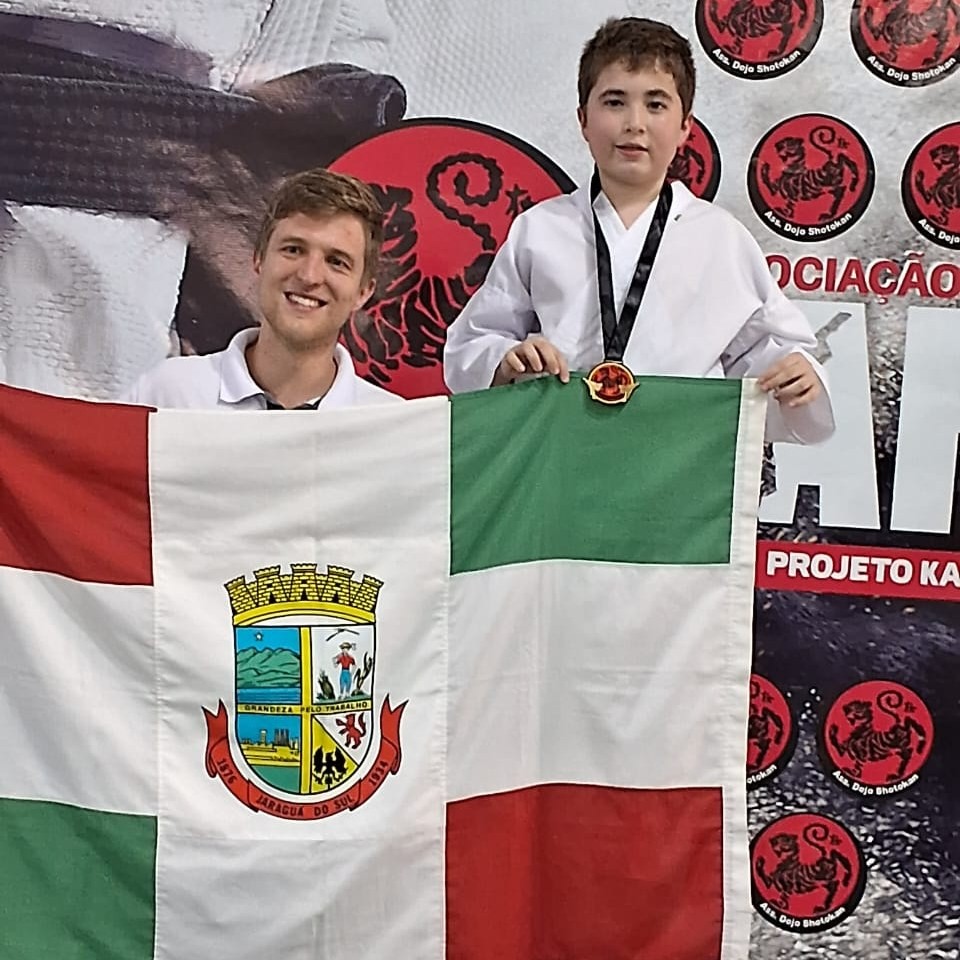 O aluno atleta Marcos Leandro de Sousa Odwazny do 6° ano C, representou a cidade de Jaraguá do Sul no 11° Festival da Associação Dojo Shotokan em Guaramirim